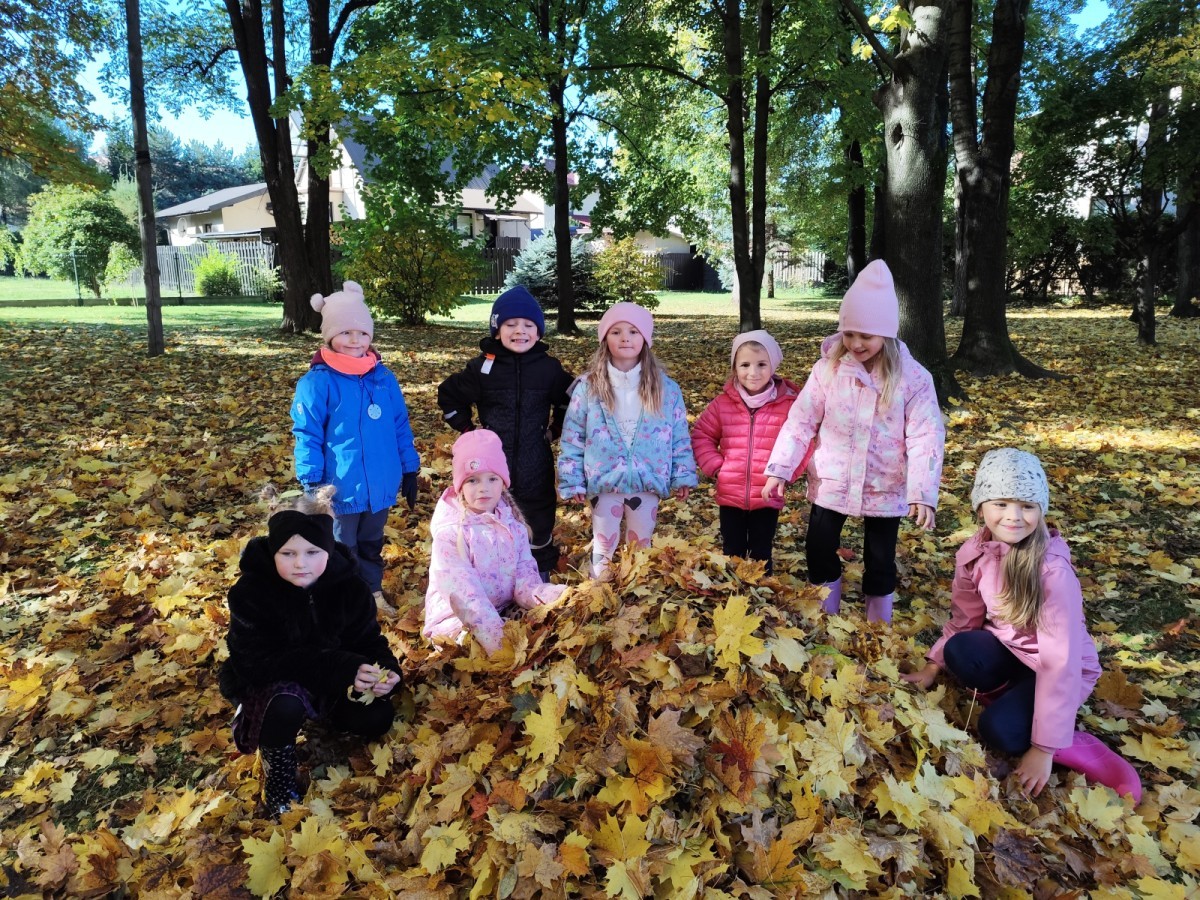 W październiku w naszym przedszkolu wiele się działo. Do naszego ogrodu zawitała piękna, kolorowa jesień, więc była to doskonała okazja do zabaw w opadających liściach.
