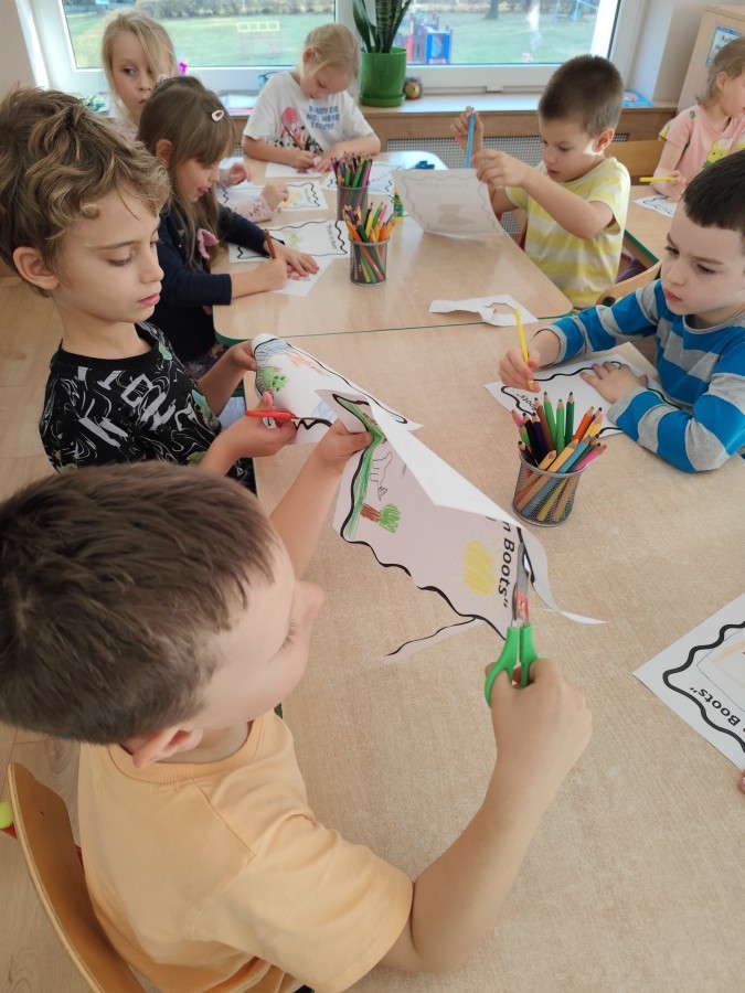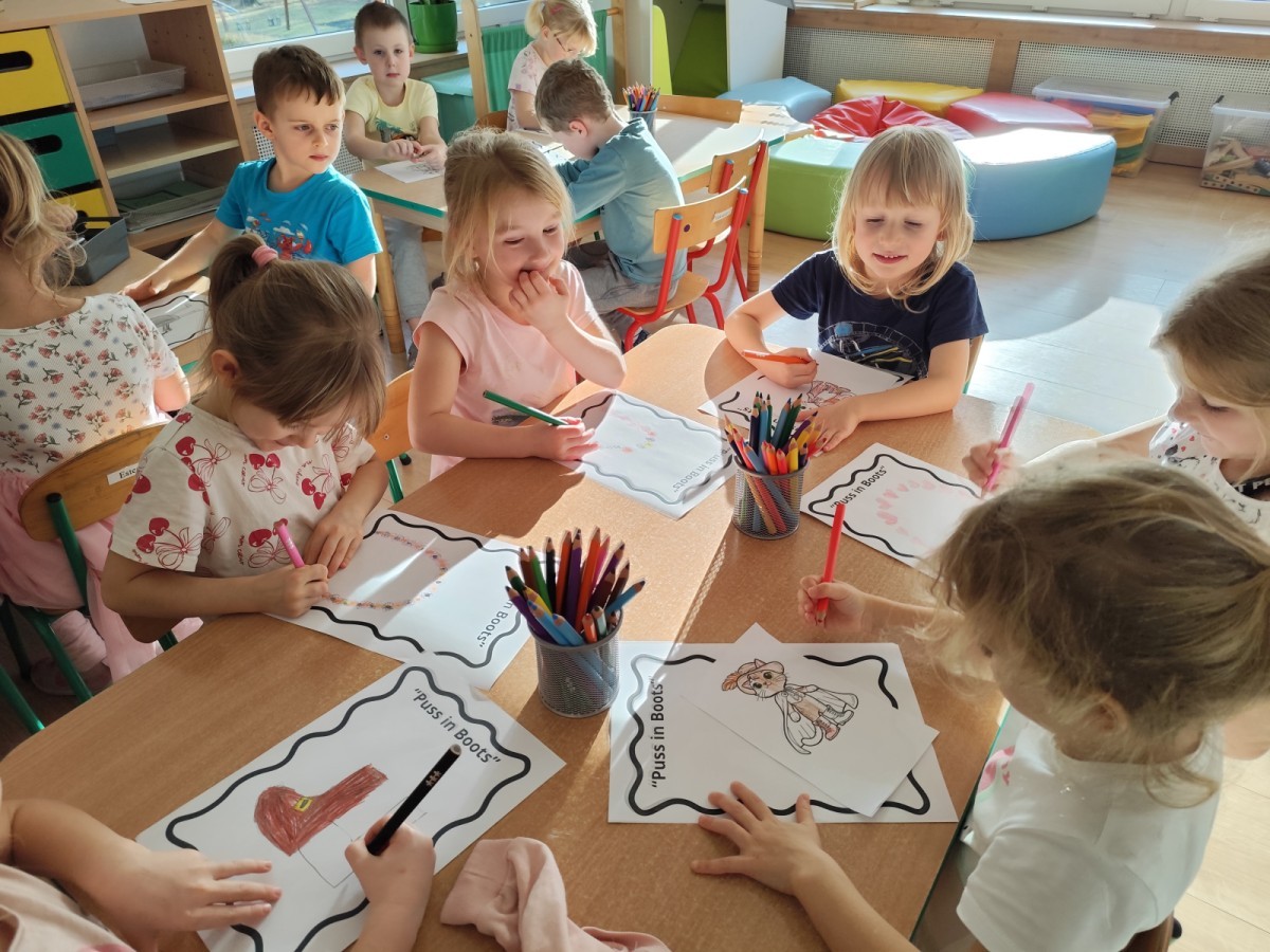 W środę, 5 listopada, dzieci z Grupy IIIB zrealizowały kolejne zadanie z Ogólnopolskiego Projektu Edukacyjnego "Angielski jest FUN-tastyczny". Przy okazji tematu tygodniowego dotyczącego bajek, dzieci obejrzały bajkę "Kot w butach" w języku angielskim. Następnie namalowały piękne ilustracje do obejrzanej bajki. Zapraszamy do fotorelacji!