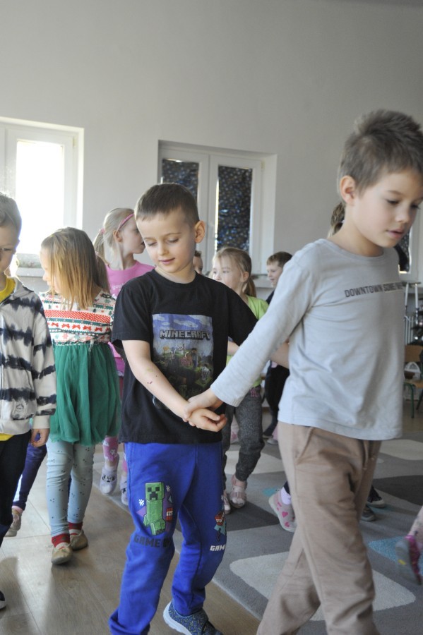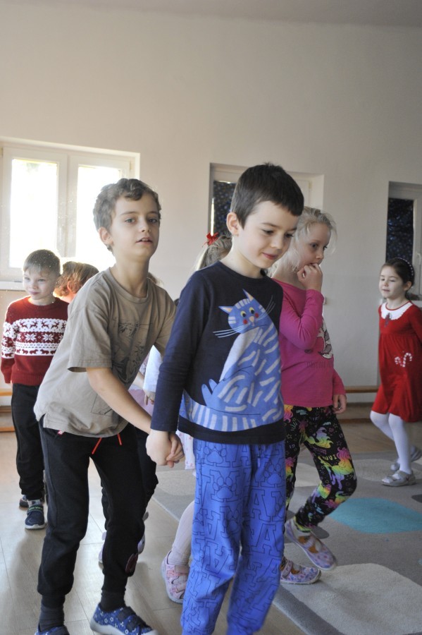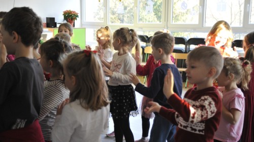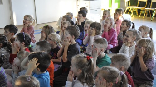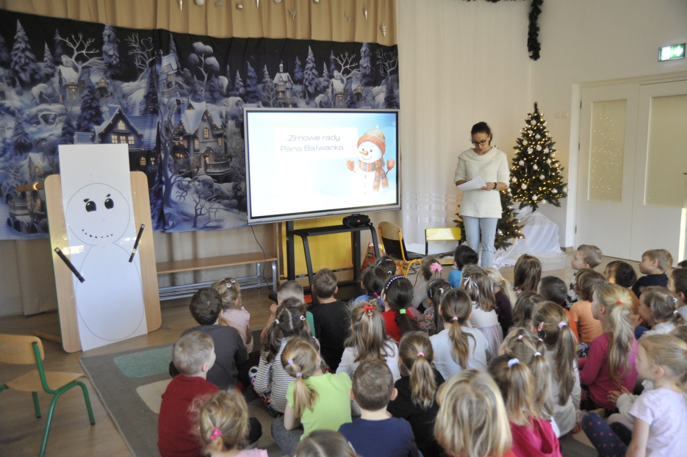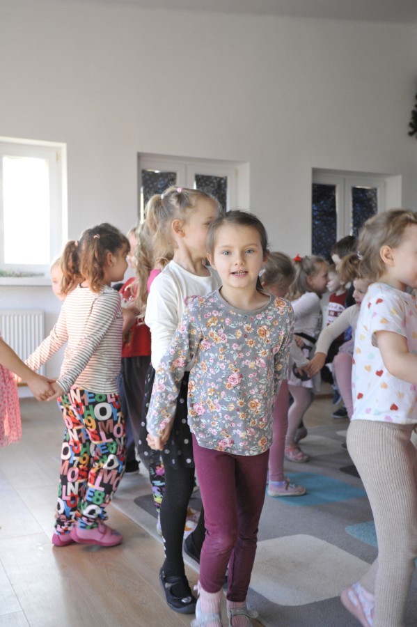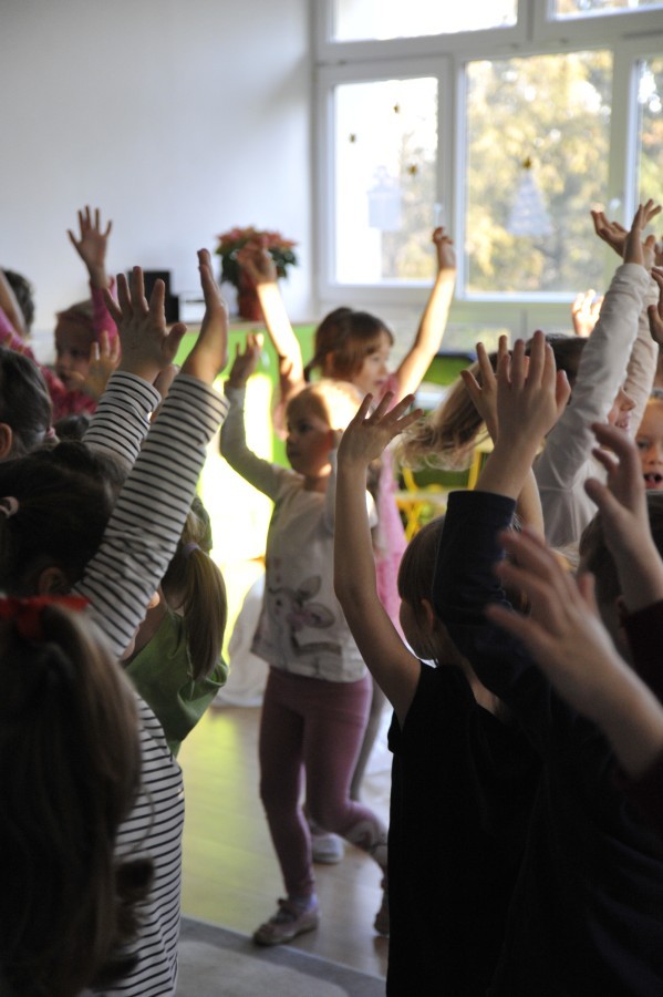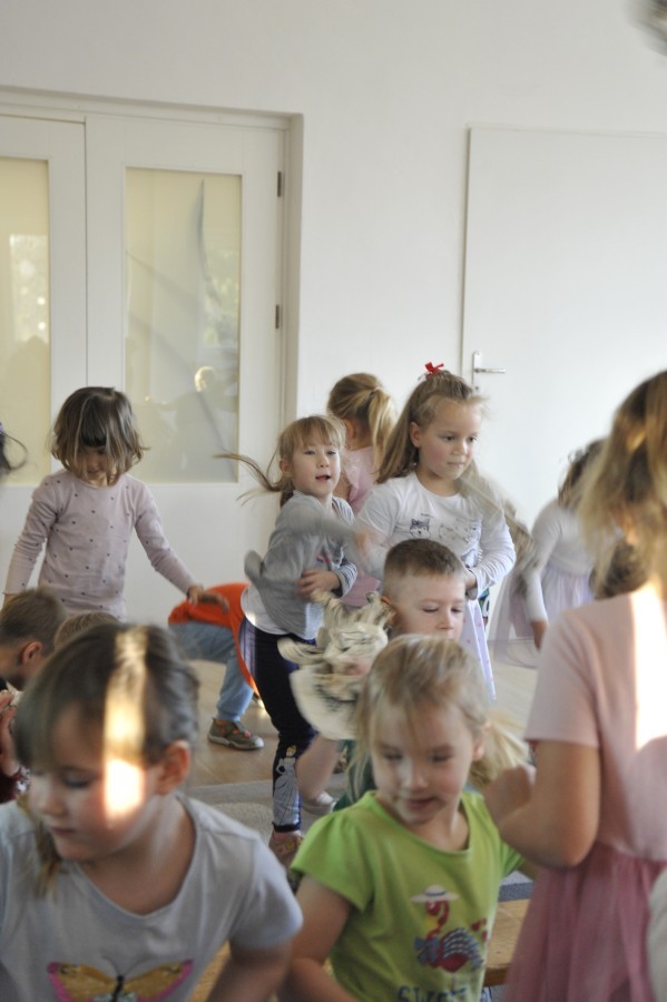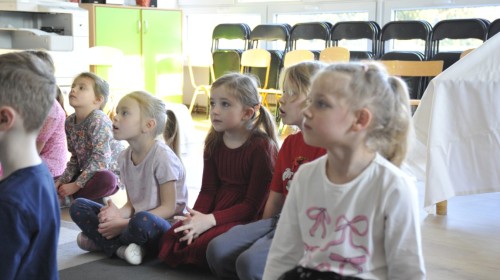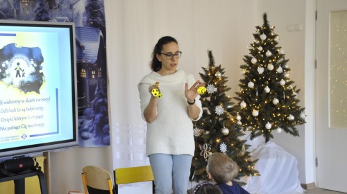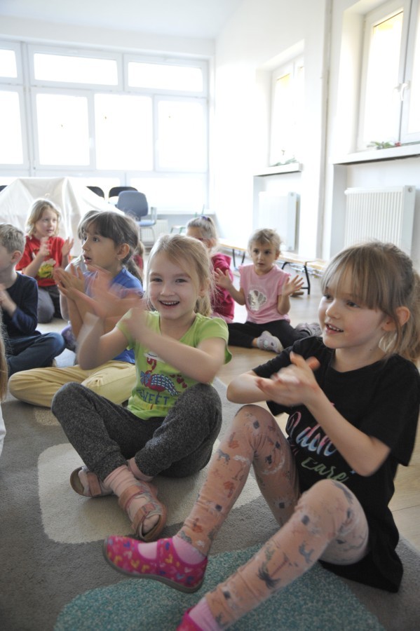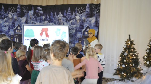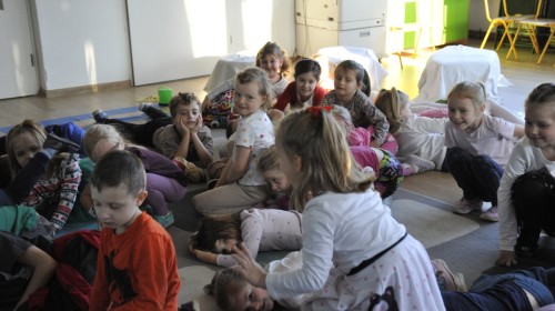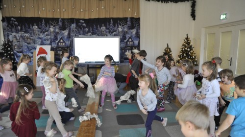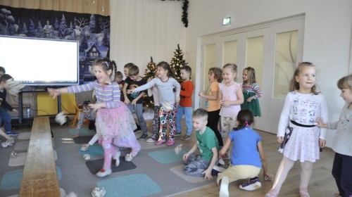 Dzięki radom Pana Bałwanka dowiedziały się jak należy ubierać się zimą, jak bezpiecznie zjeżdżać na sankach, jak wygląda bezpieczny kulig, bezpieczne zabawy na lodzie i na co należy uważać zimą, aby nie zrobić sobie krzywdy podczas zimowych zabaw i spacerów. Były też piosenki i zabawy ruchowe po polsku i po angielsku, zimowy tor przeszkód a na koniec bitwa papierowymi śnieżkami, której towarzyszyło mnóstwo radości i dziecięcych śmiechów!:)