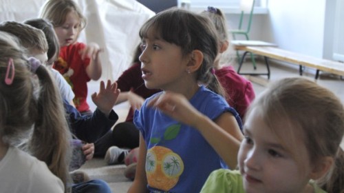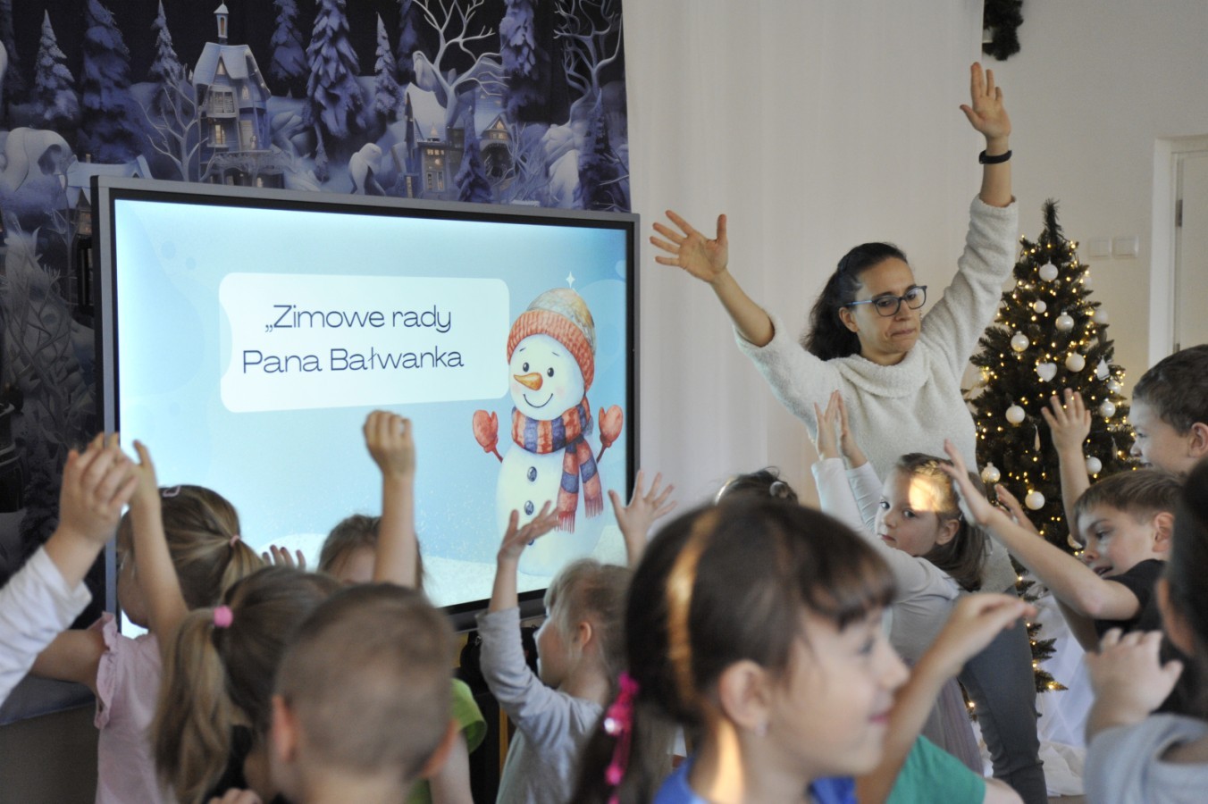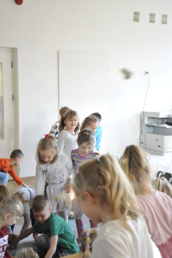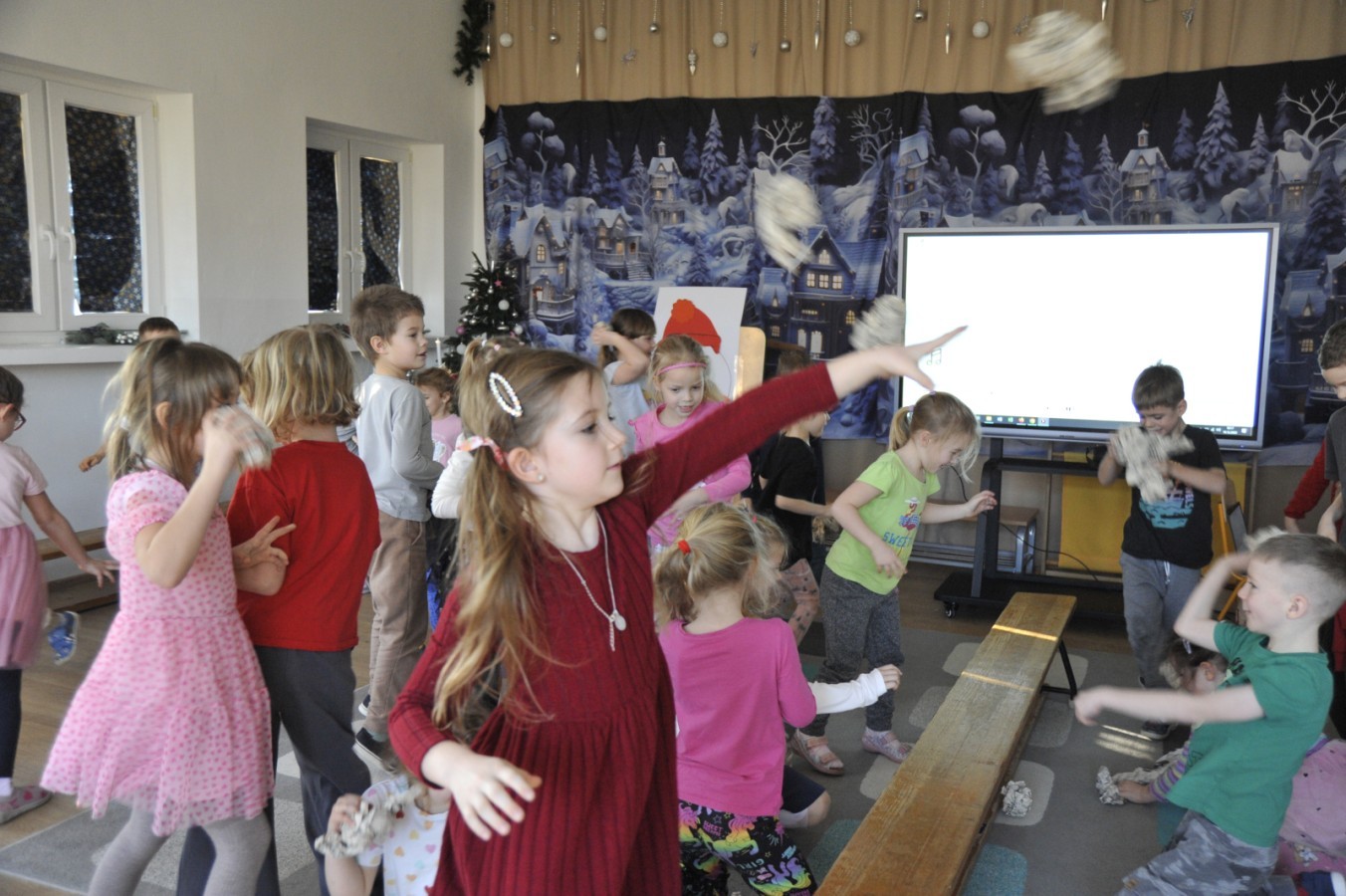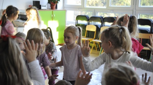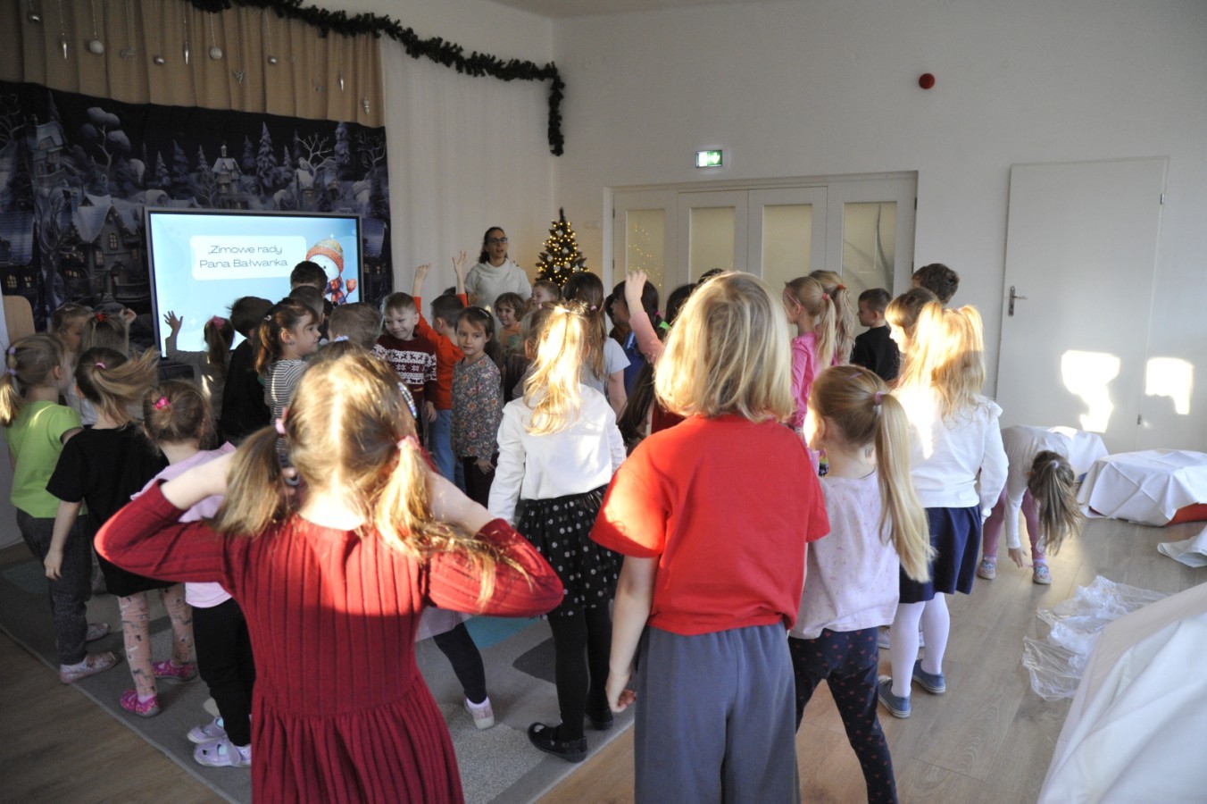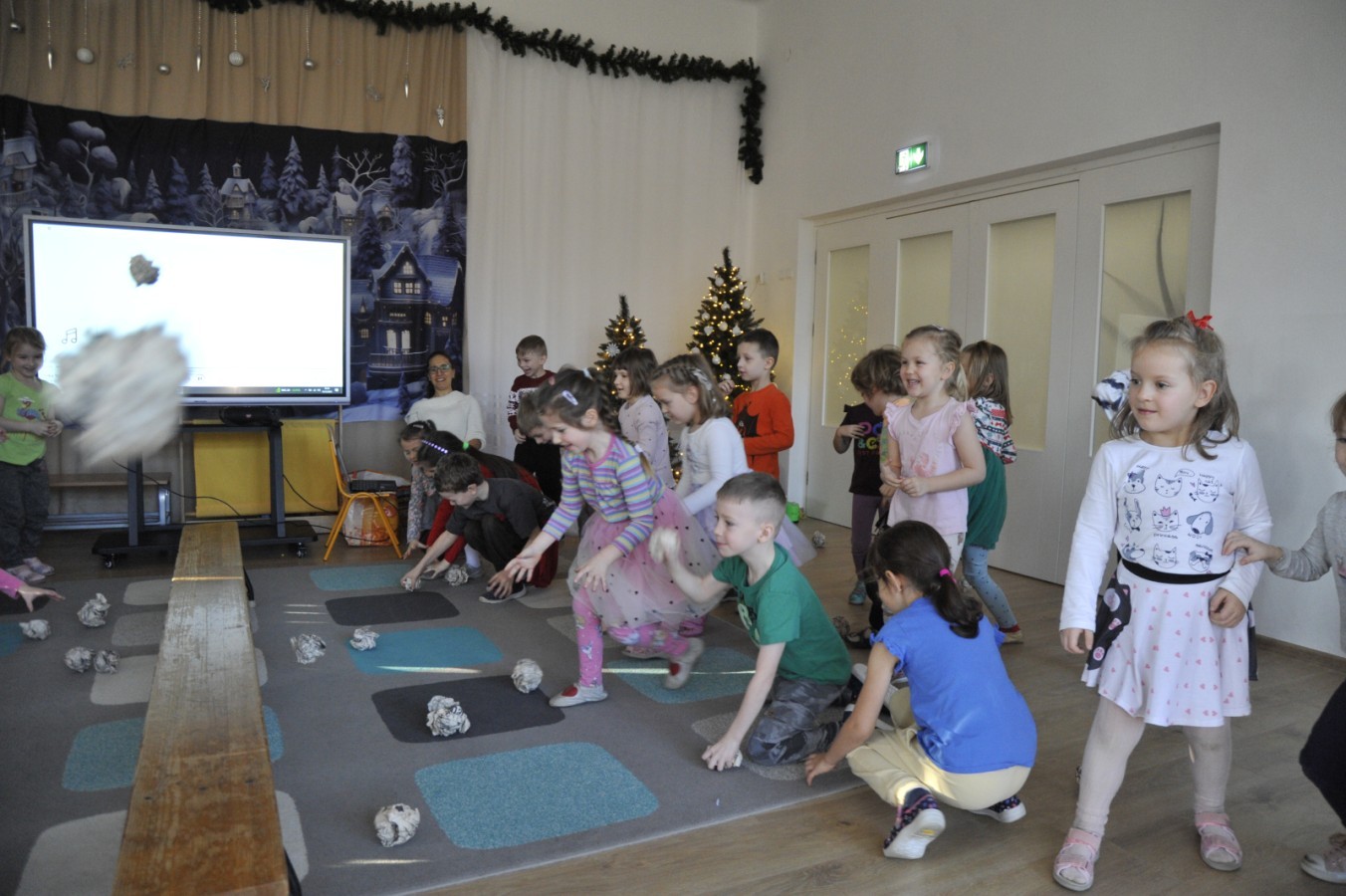 Dzięki radom Pana Bałwanka dowiedziały się jak należy ubierać się zimą, jak bezpiecznie zjeżdżać na sankach, jak wygląda bezpieczny kulig, bezpieczne zabawy na lodzie i na co należy uważać zimą, aby nie zrobić sobie krzywdy podczas zimowych zabaw i spacerów. Były też piosenki i zabawy ruchowe po polsku i po angielsku, zimowy tor przeszkód a na koniec bitwa papierowymi śnieżkami, której towarzyszyło mnóstwo radości i dziecięcych śmiechów!:)