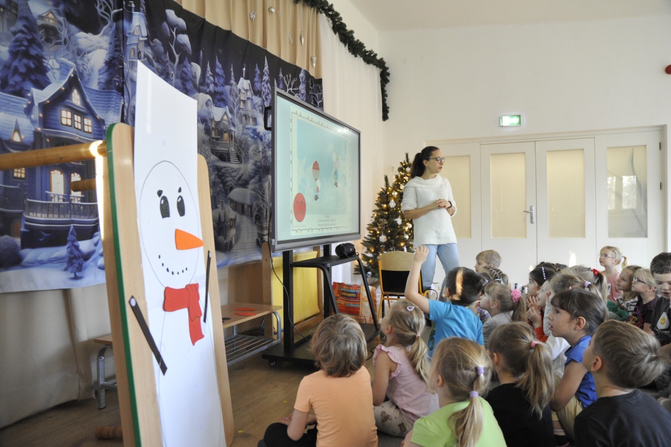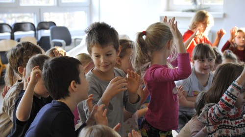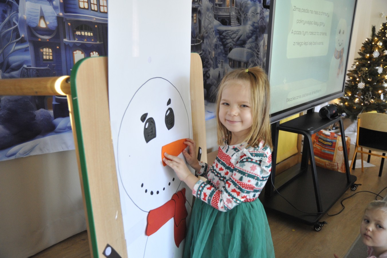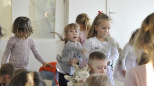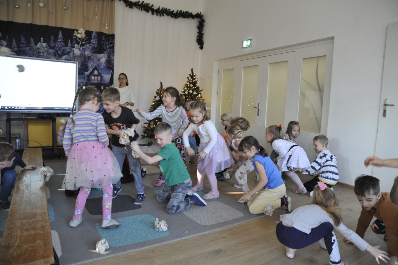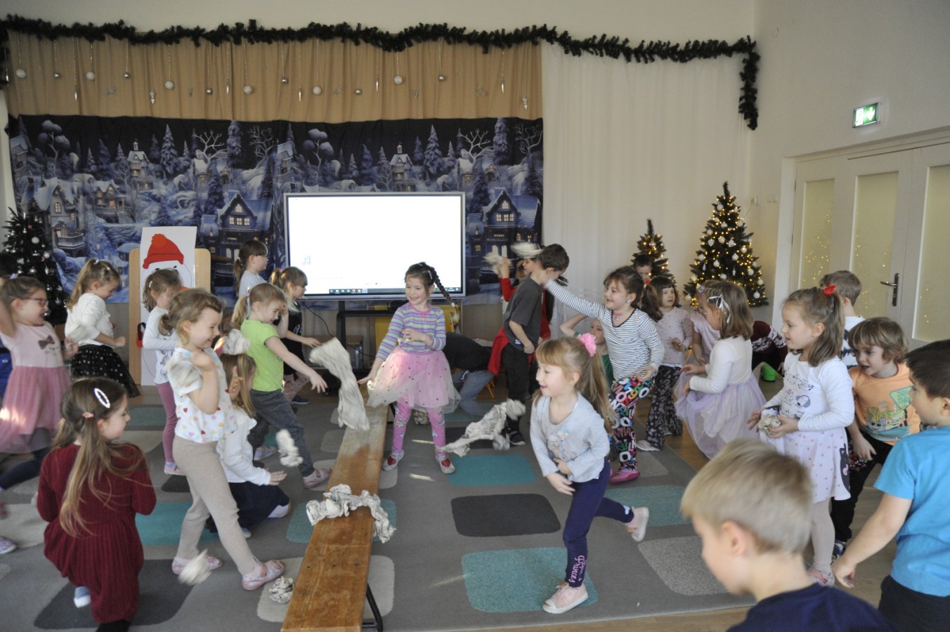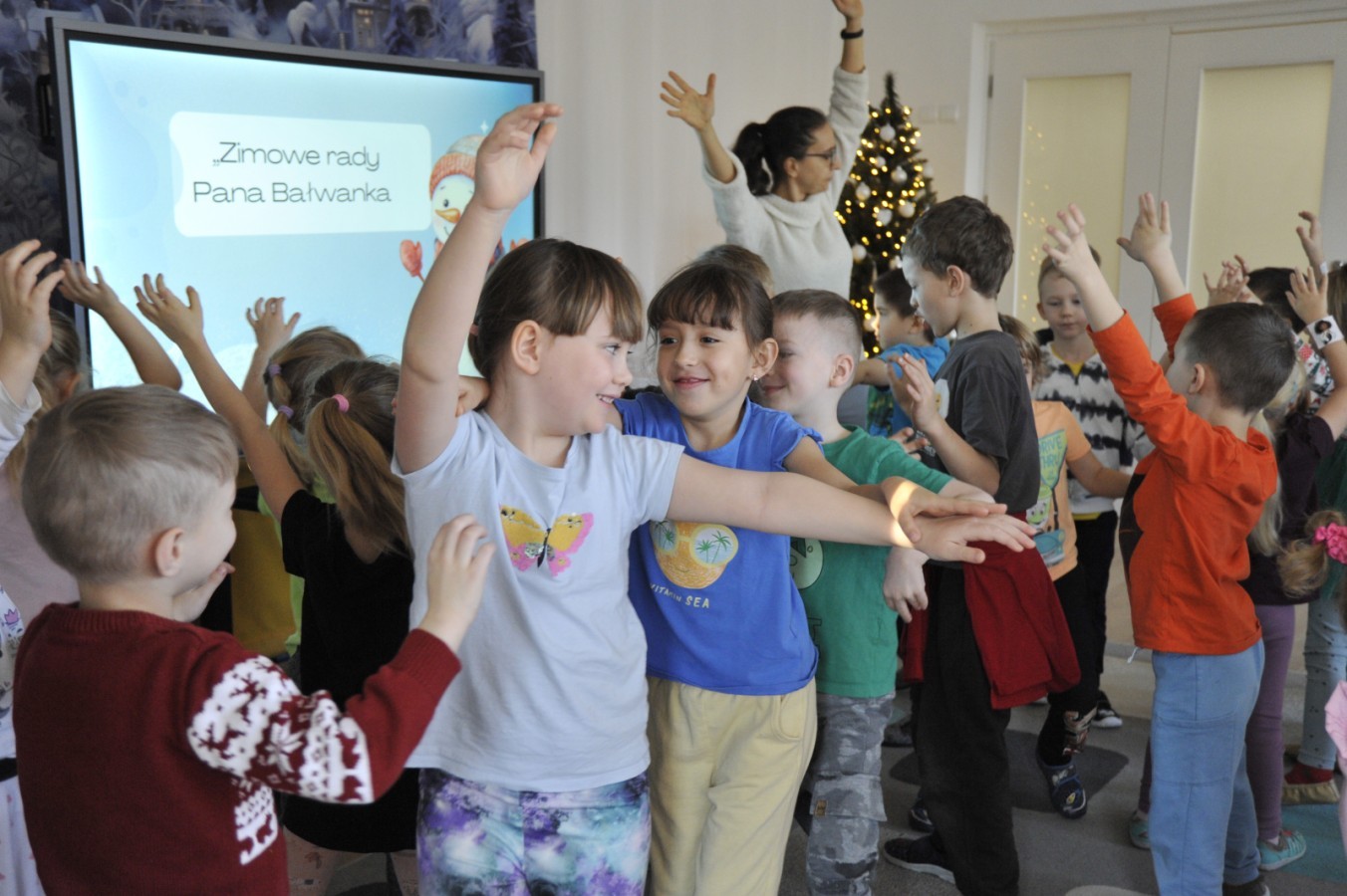 Dzięki radom Pana Bałwanka dowiedziały się jak należy ubierać się zimą, jak bezpiecznie zjeżdżać na sankach, jak wygląda bezpieczny kulig, bezpieczne zabawy na lodzie i na co należy uważać zimą, aby nie zrobić sobie krzywdy podczas zimowych zabaw i spacerów. Były też piosenki i zabawy ruchowe po polsku i po angielsku, zimowy tor przeszkód a na koniec bitwa papierowymi śnieżkami, której towarzyszyło mnóstwo radości i dziecięcych śmiechów!:)