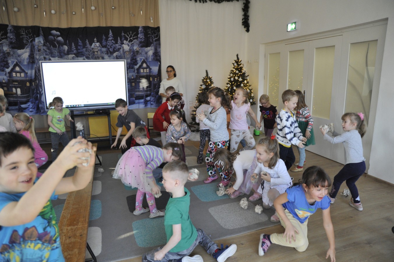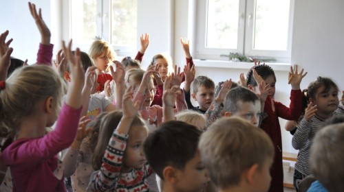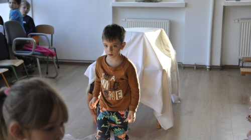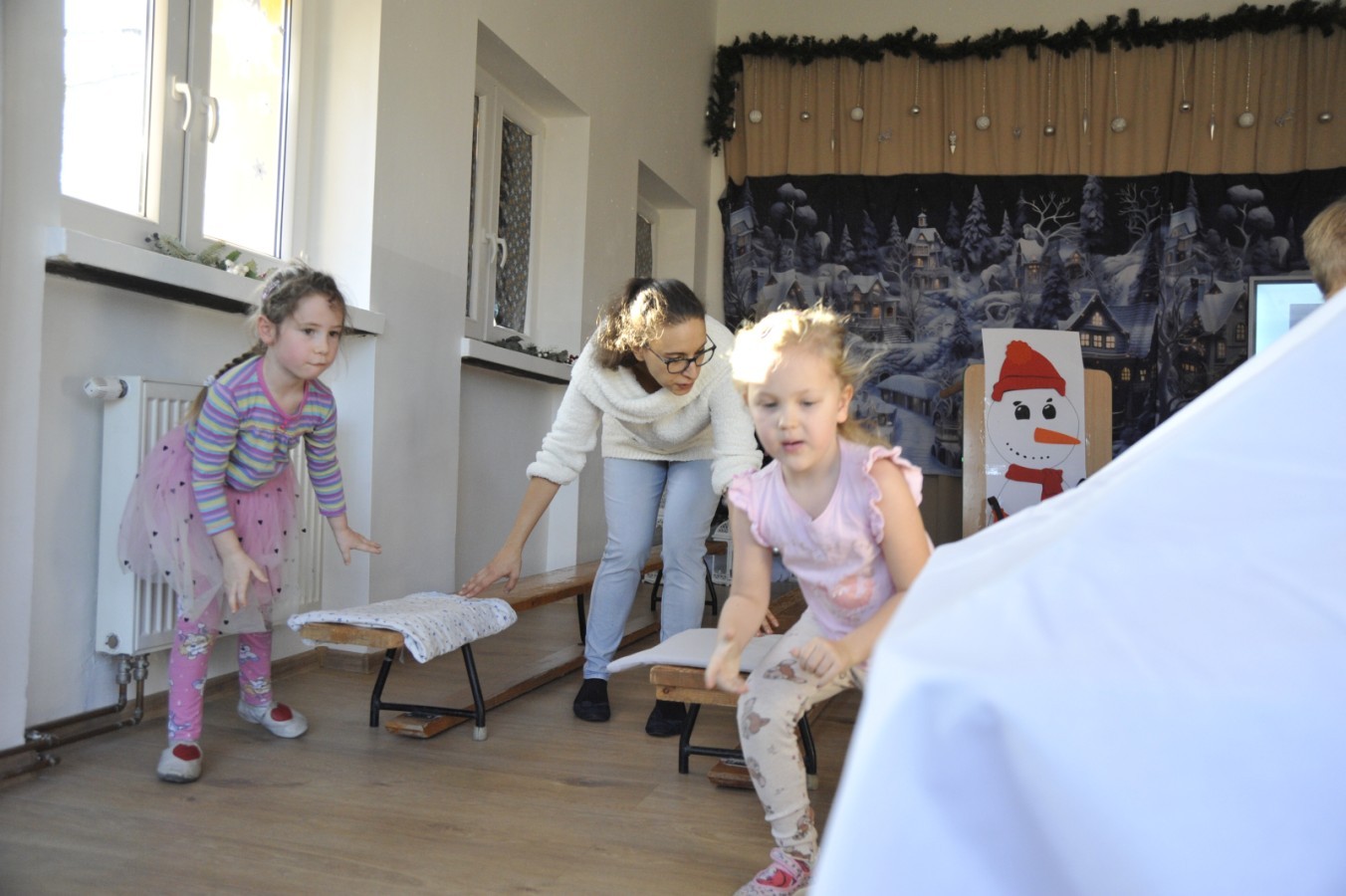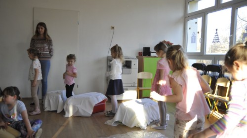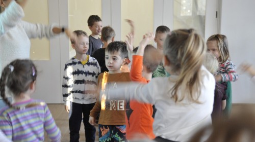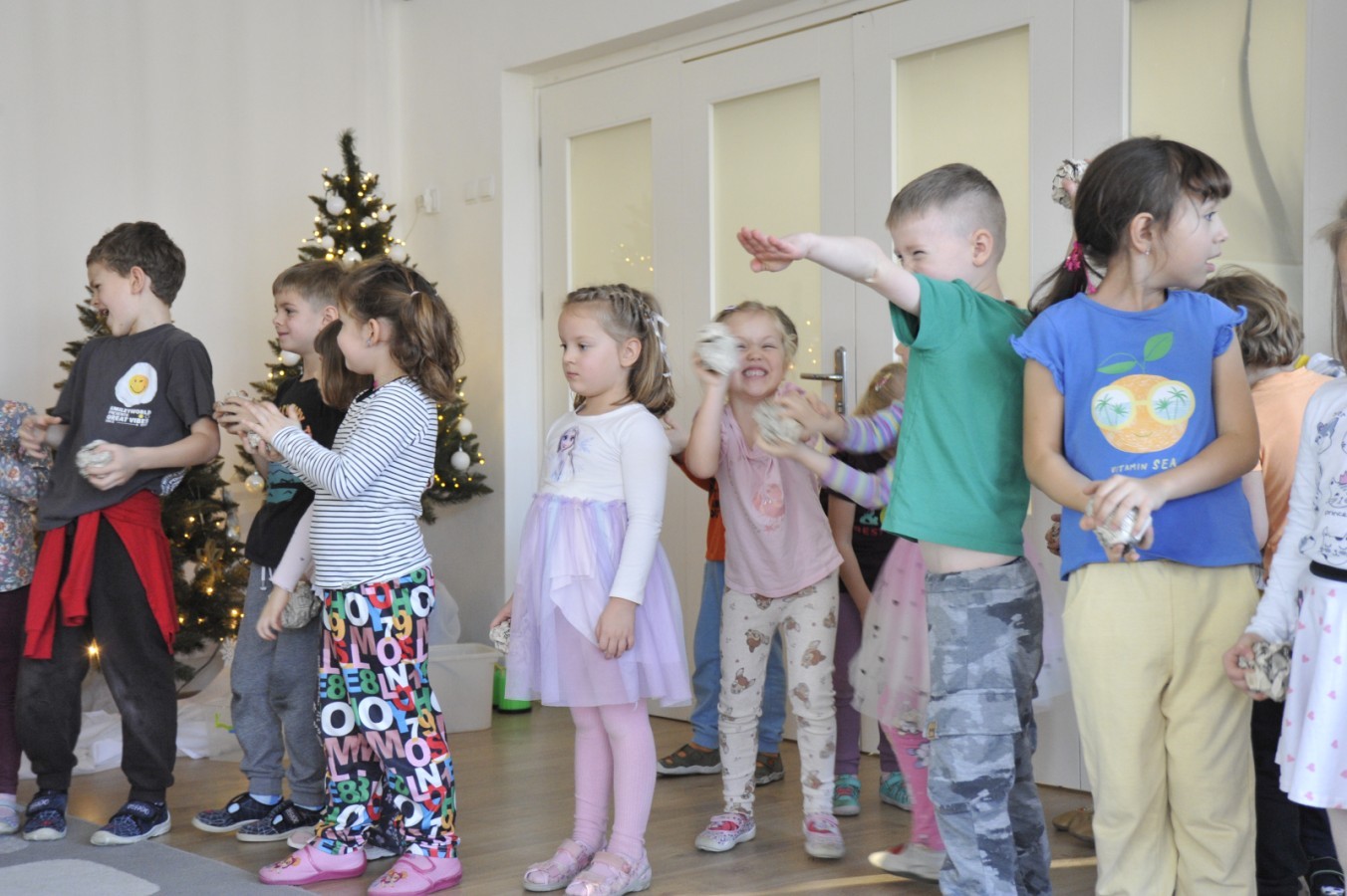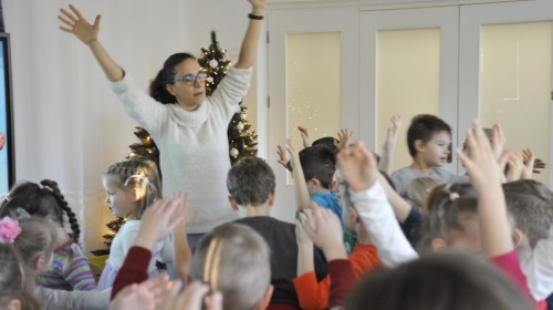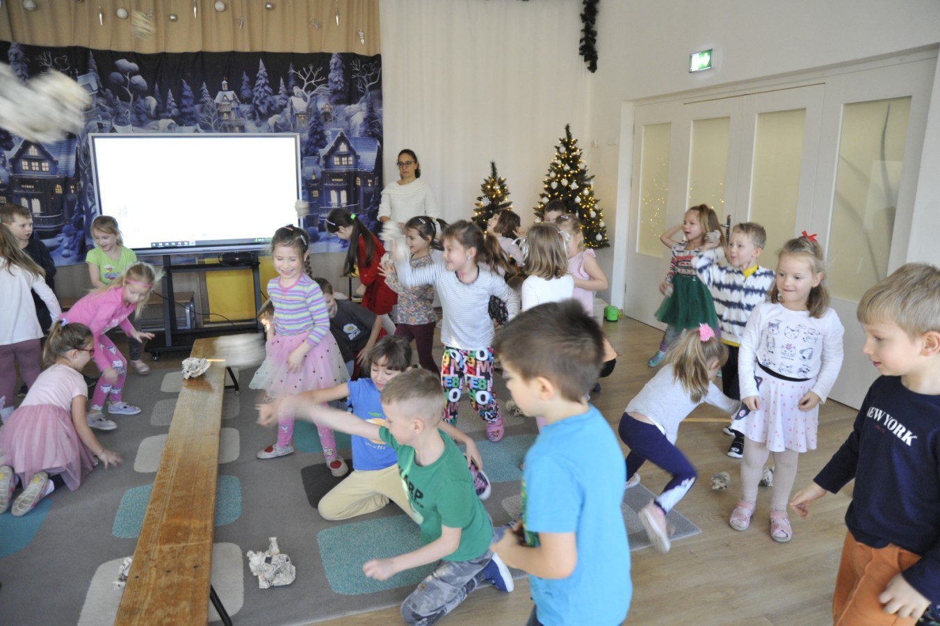 Dzięki radom Pana Bałwanka dowiedziały się jak należy ubierać się zimą, jak bezpiecznie zjeżdżać na sankach, jak wygląda bezpieczny kulig, bezpieczne zabawy na lodzie i na co należy uważać zimą, aby nie zrobić sobie krzywdy podczas zimowych zabaw i spacerów. Były też piosenki i zabawy ruchowe po polsku i po angielsku, zimowy tor przeszkód a na koniec bitwa papierowymi śnieżkami, której towarzyszyło mnóstwo radości i dziecięcych śmiechów!:)