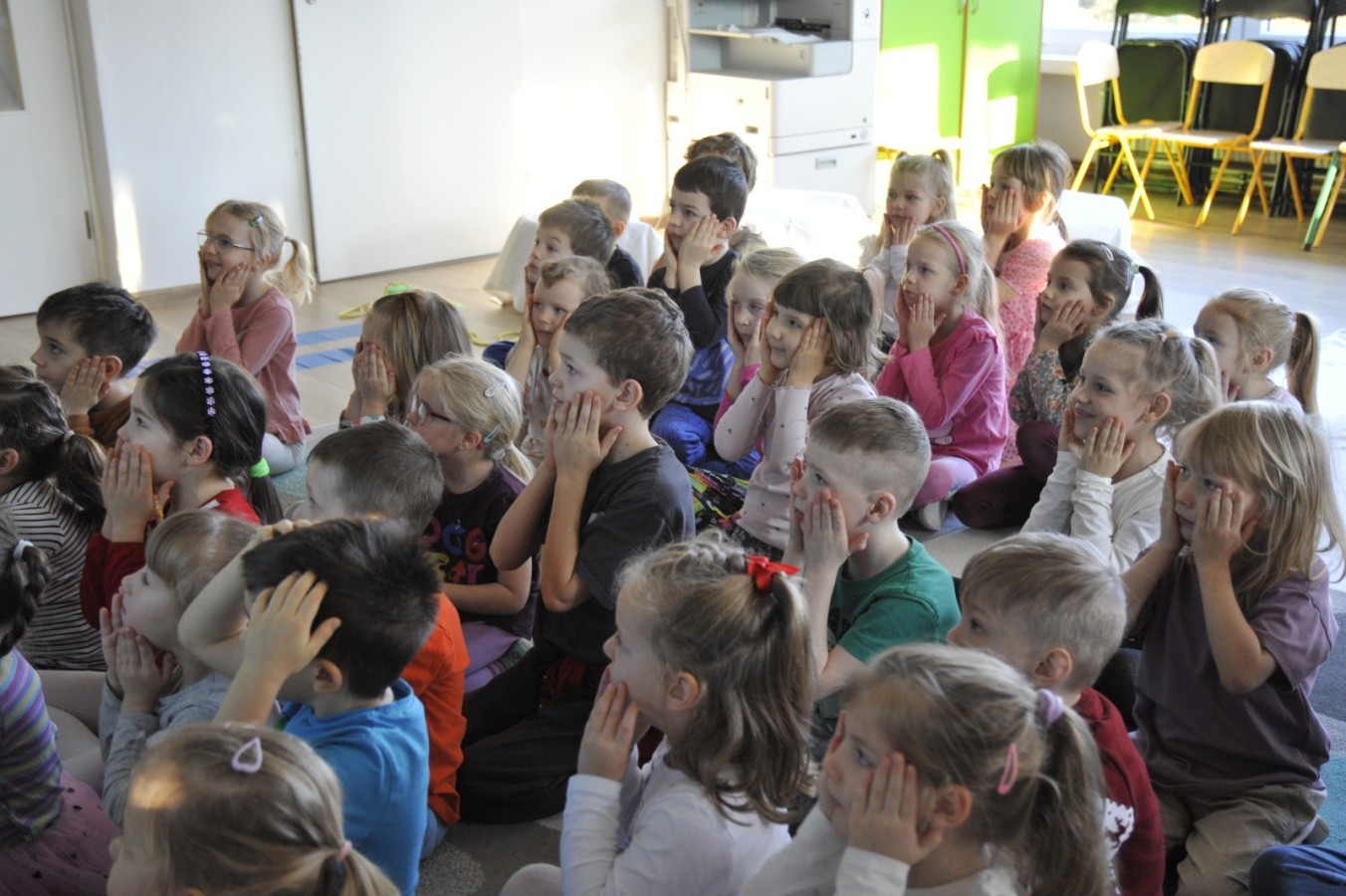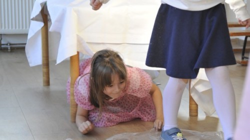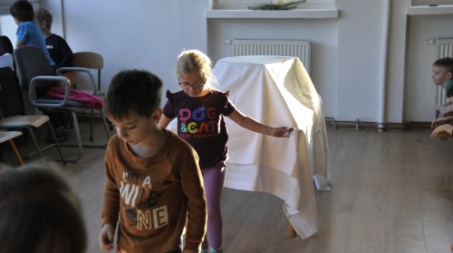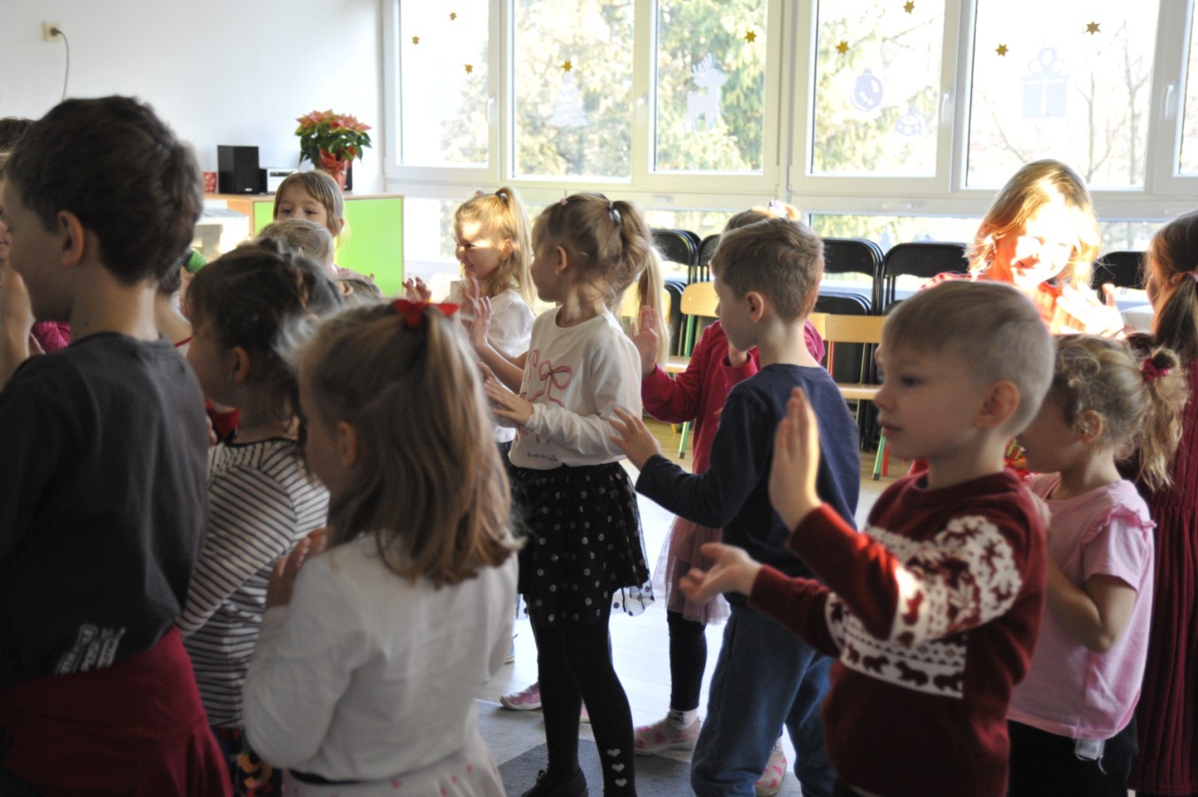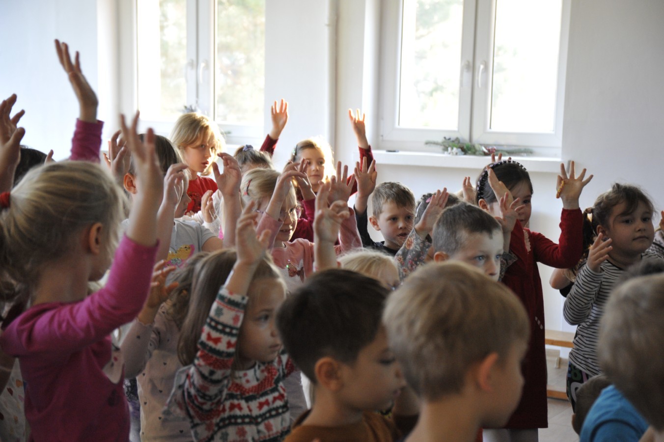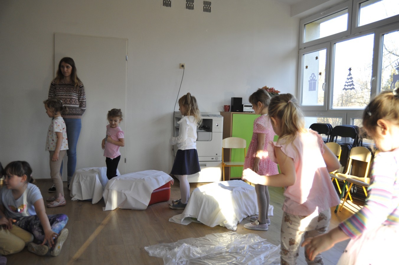 Dzięki radom Pana Bałwanka dowiedziały się jak należy ubierać się zimą, jak bezpiecznie zjeżdżać na sankach, jak wygląda bezpieczny kulig, bezpieczne zabawy na lodzie i na co należy uważać zimą, aby nie zrobić sobie krzywdy podczas zimowych zabaw i spacerów. Były też piosenki i zabawy ruchowe po polsku i po angielsku, zimowy tor przeszkód a na koniec bitwa papierowymi śnieżkami, której towarzyszyło mnóstwo radości i dziecięcych śmiechów!:)