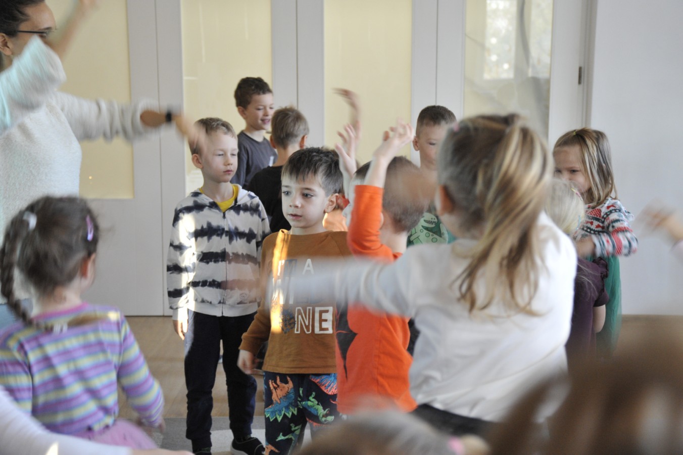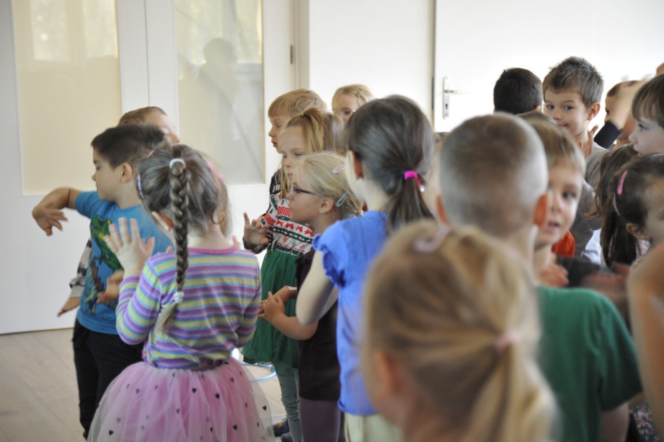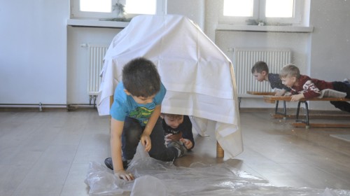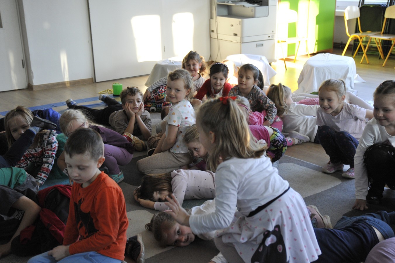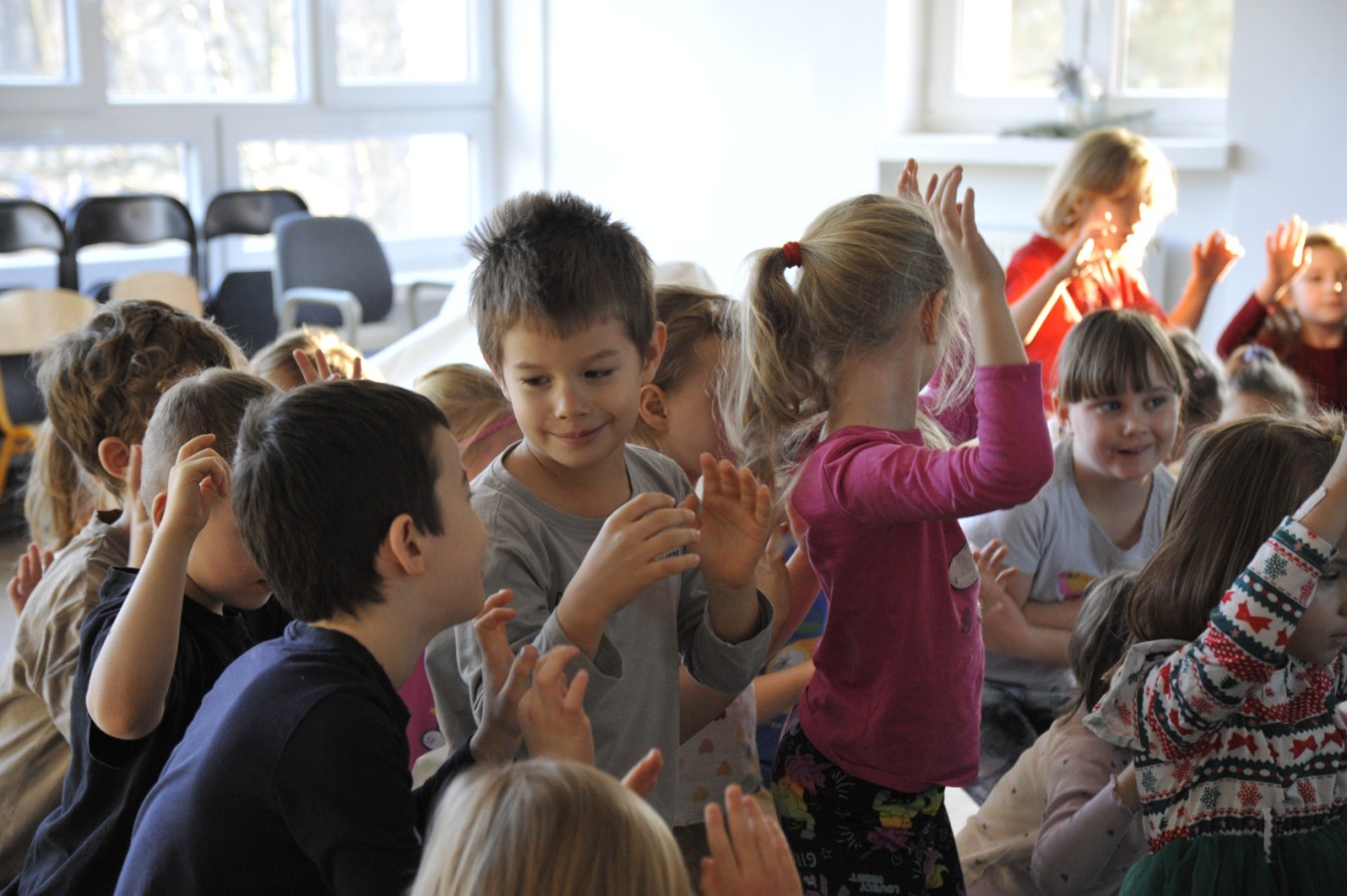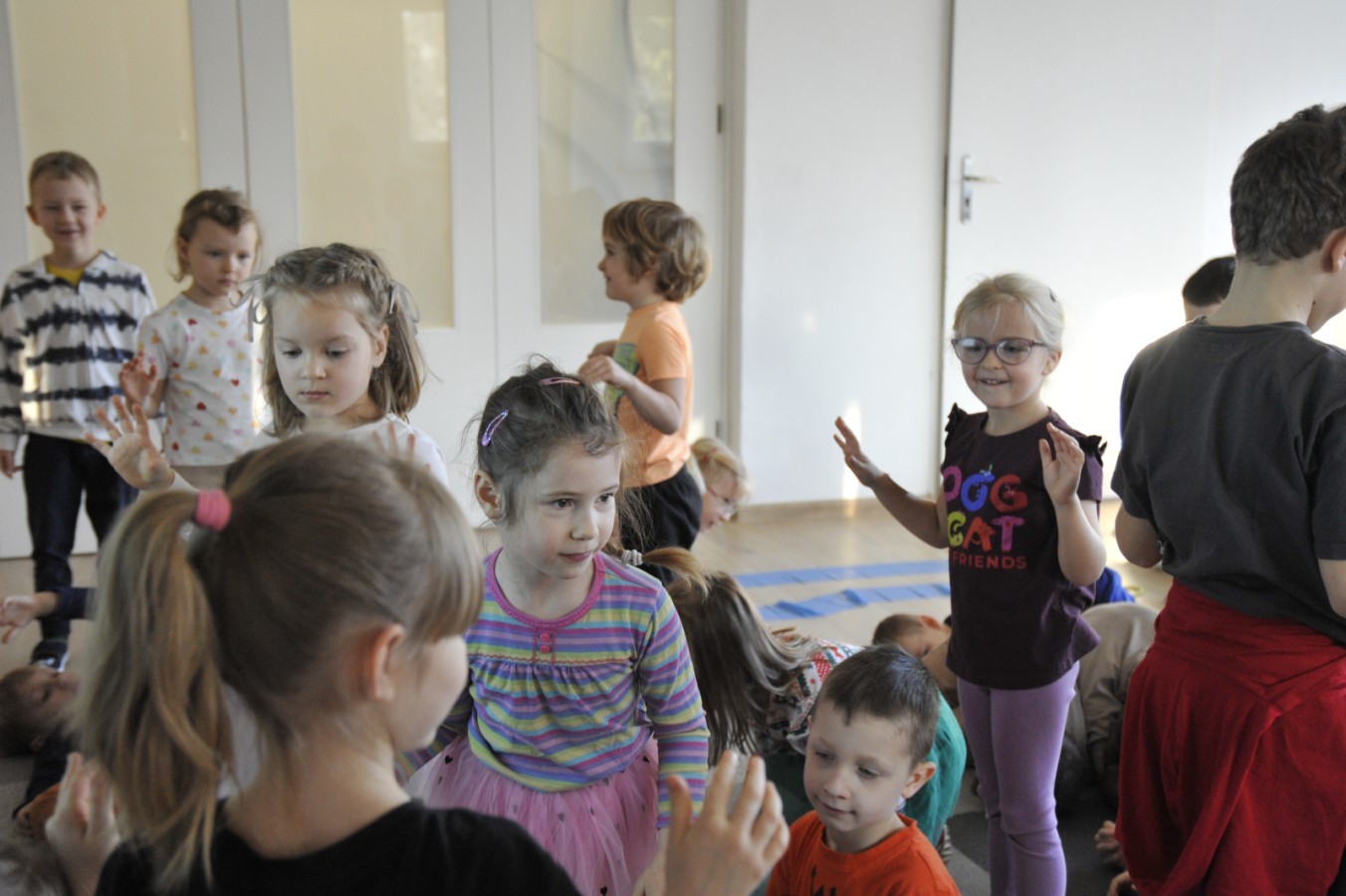 Dzięki radom Pana Bałwanka dowiedziały się jak należy ubierać się zimą, jak bezpiecznie zjeżdżać na sankach, jak wygląda bezpieczny kulig, bezpieczne zabawy na lodzie i na co należy uważać zimą, aby nie zrobić sobie krzywdy podczas zimowych zabaw i spacerów. Były też piosenki i zabawy ruchowe po polsku i po angielsku, zimowy tor przeszkód a na koniec bitwa papierowymi śnieżkami, której towarzyszyło mnóstwo radości i dziecięcych śmiechów!:)