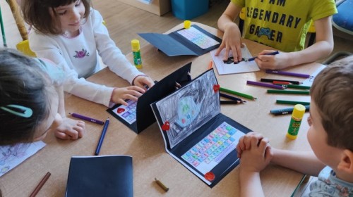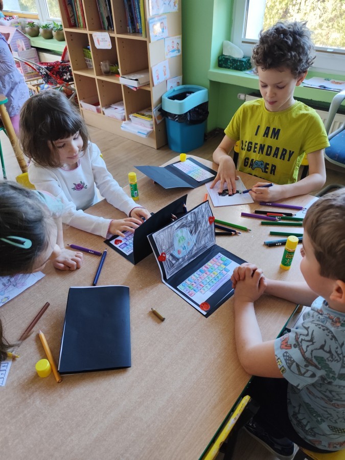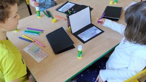 Dzieci dowiedziały się, jakie zagrożenia czyhają na nich w Internecie i co zrobić, żeby korzystanie z niego było bezpieczne. Poznały też zasady "higieny cyfrowej". Na koniec każdy wykonał papierowy laptop, w którym narysował, jak bezpiecznie można spędzać czas w Internecie.