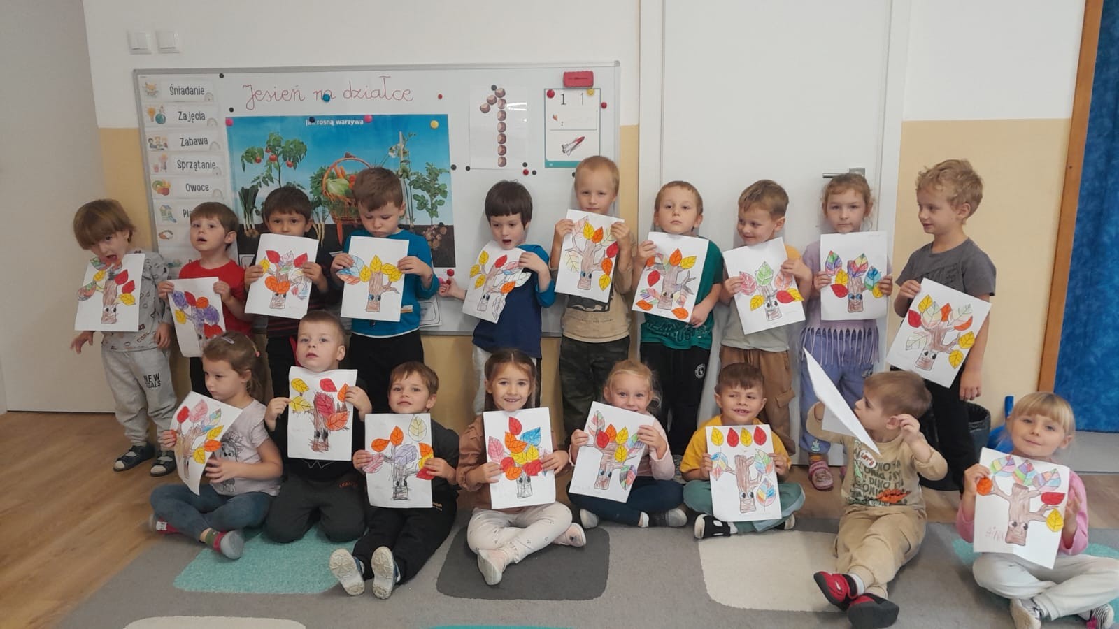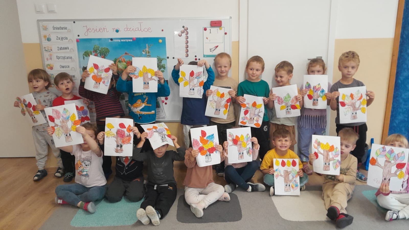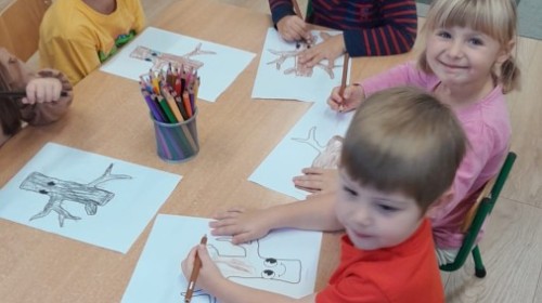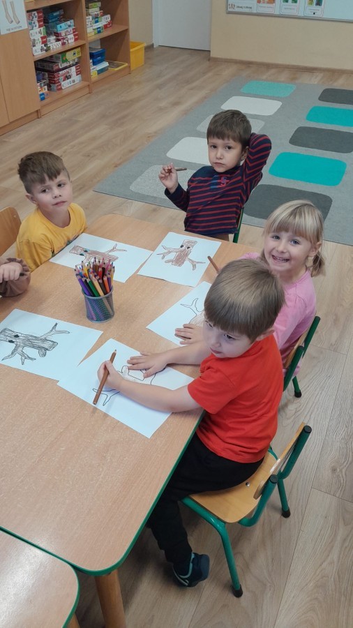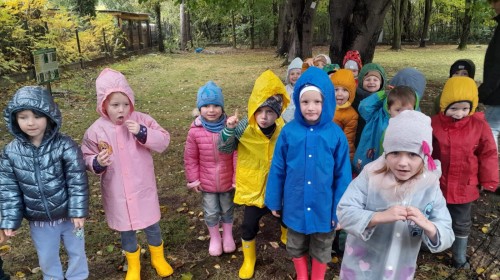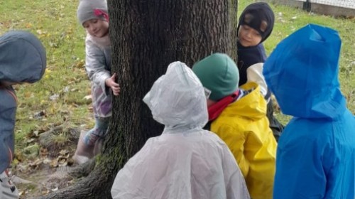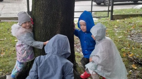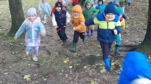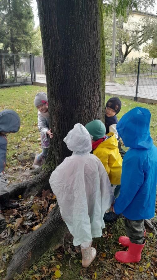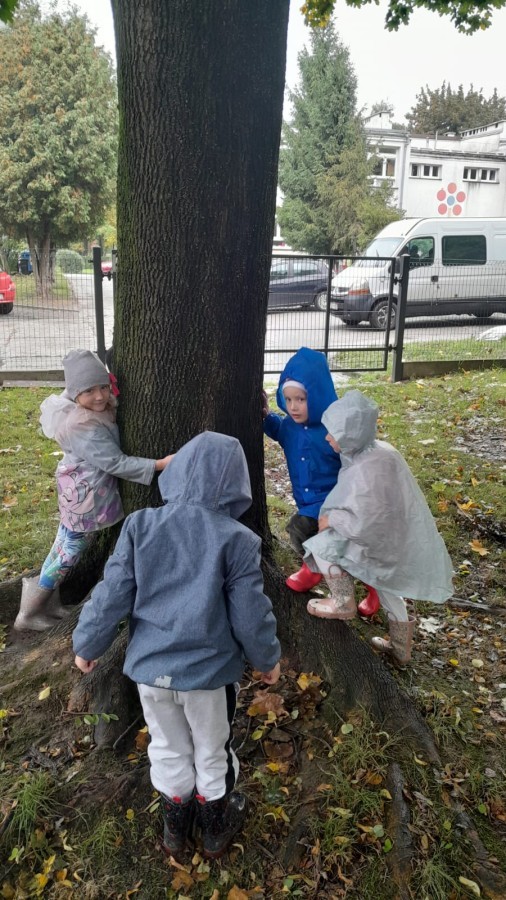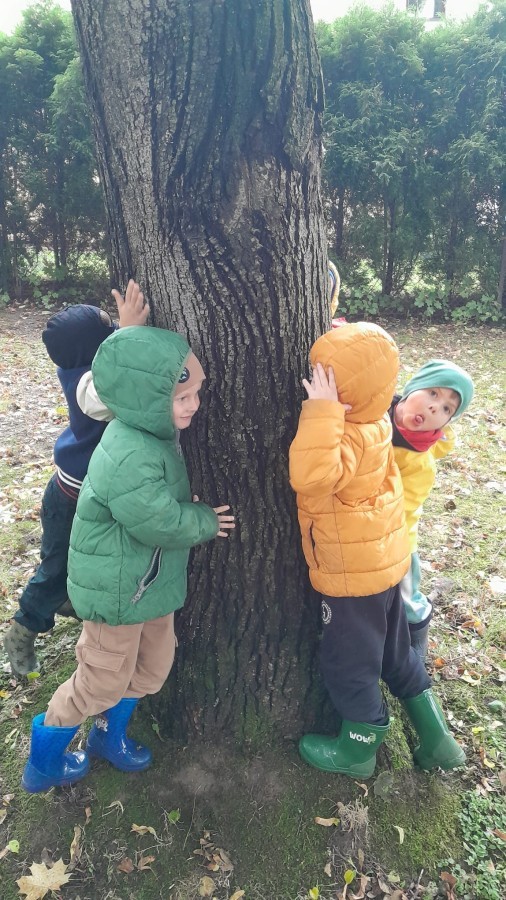 Dzieci z Grupy II świętowały Dzień Drzewa. Najpierw wykonały piękne jesienne drzewko, a następnie bawiły się między drzewami w naszym ogrodzie przedszkolnym.