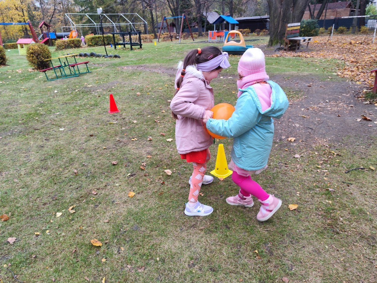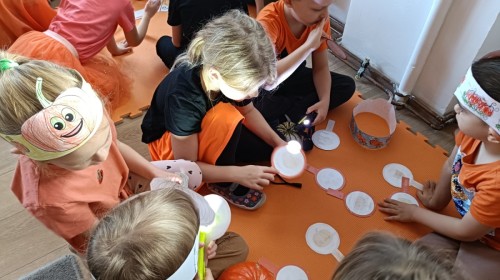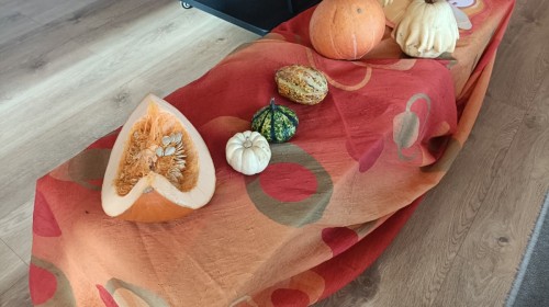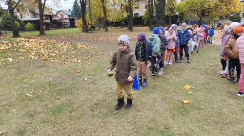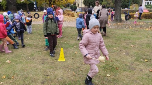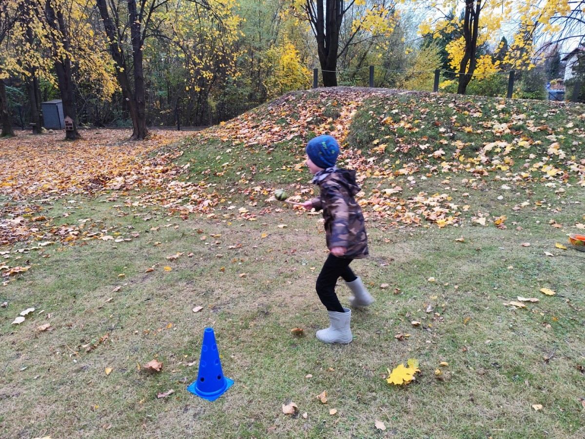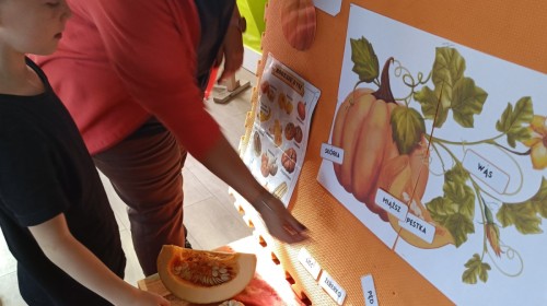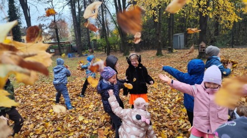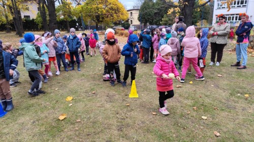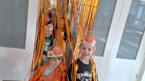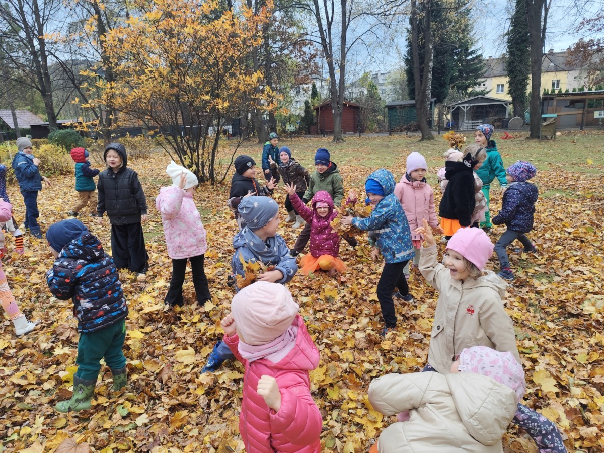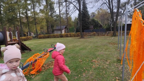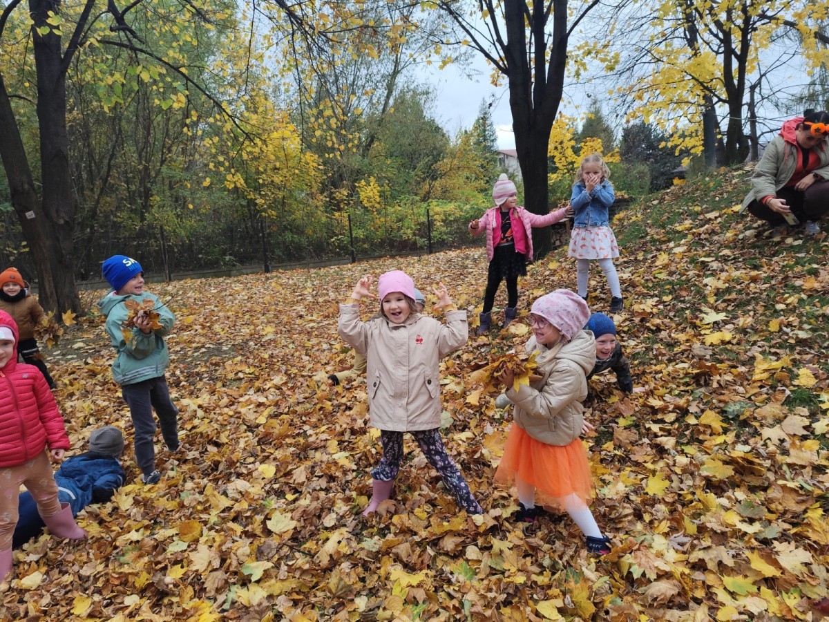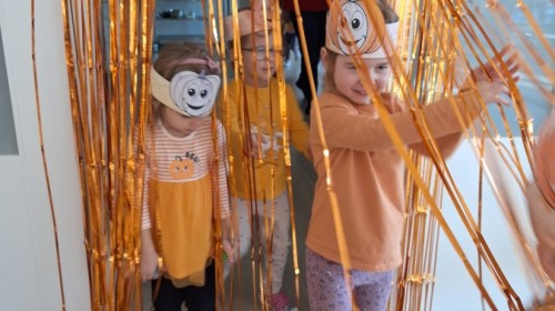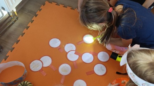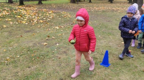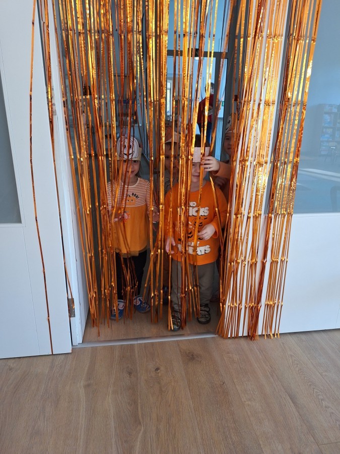 Dzieci z wszystkich grup poznały ciekawostki o dyniach, poznały budowę dyni, dowiedziały się jakie są rodzaje i odmiany dyni. Nie zabrakło zabaw muzyczno-ruchowych po polsku i po angielsku, tańców i zabaw matematycznych. Dzieci odszukiwały cienie, układały rytmy z dyń, wyszukiwały dynie w pudełku sensorycznym a także odkrywały ukryte przetwory z dyni przy pomocy latarek. Na koniec była gra terenowa oraz zabawy z dyniami i pomarańczowymi balonami w ogrodzie przedszkolnym zakończone tańcem na liściach do piosenki po angielsku "Fall freeze". Zabawa trwała dopóki z ogrodu nie przegonił nas jesienny deszcz. Wtedy przyszedł czas na obiad i pyszną zupkę dyniową!:)