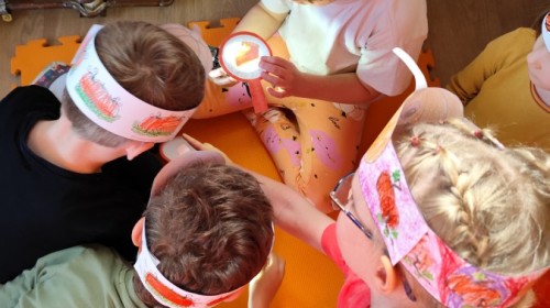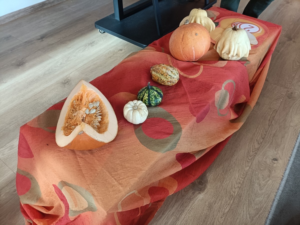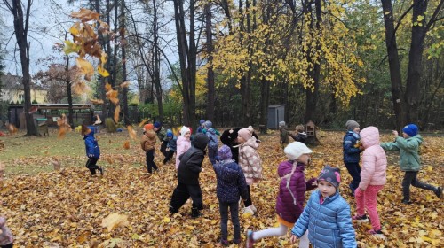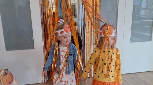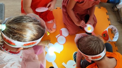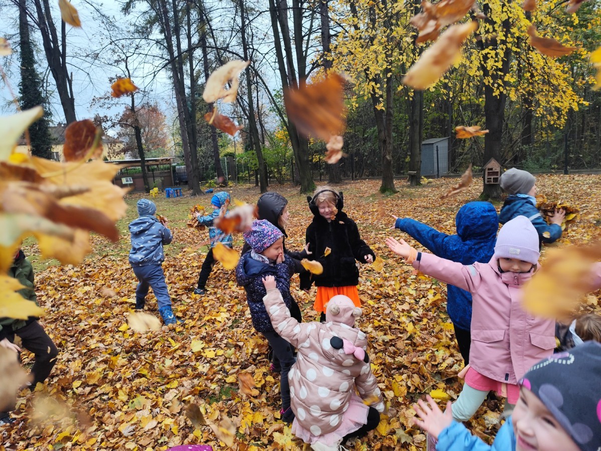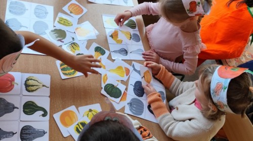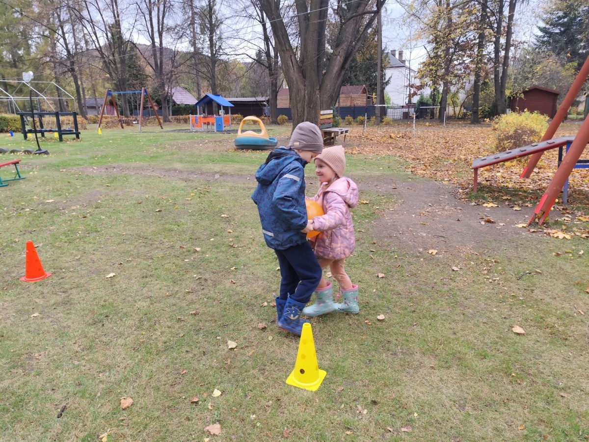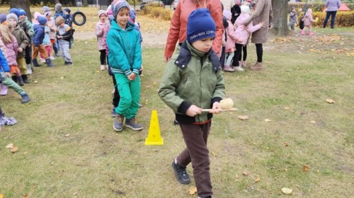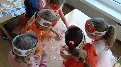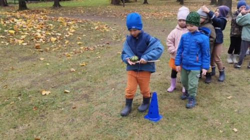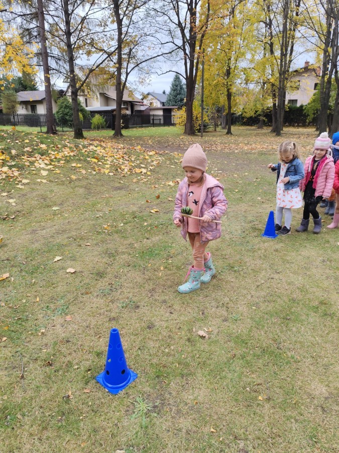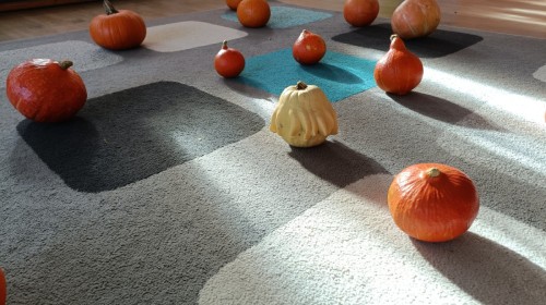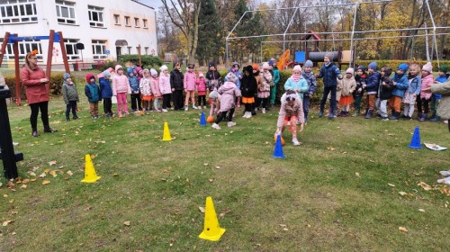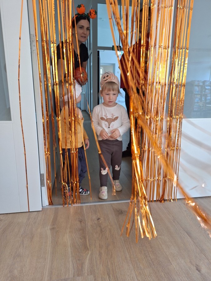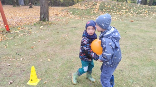 Dzieci z wszystkich grup poznały ciekawostki o dyniach, poznały budowę dyni, dowiedziały się jakie są rodzaje i odmiany dyni. Nie zabrakło zabaw muzyczno-ruchowych po polsku i po angielsku, tańców i zabaw matematycznych. Dzieci odszukiwały cienie, układały rytmy z dyń, wyszukiwały dynie w pudełku sensorycznym a także odkrywały ukryte przetwory z dyni przy pomocy latarek. Na koniec była gra terenowa oraz zabawy z dyniami i pomarańczowymi balonami w ogrodzie przedszkolnym zakończone tańcem na liściach do piosenki po angielsku "Fall freeze". Zabawa trwała dopóki z ogrodu nie przegonił nas jesienny deszcz. Wtedy przyszedł czas na obiad i pyszną zupkę dyniową!:)