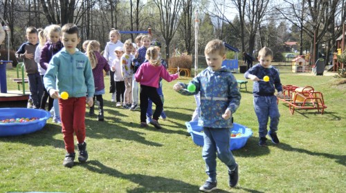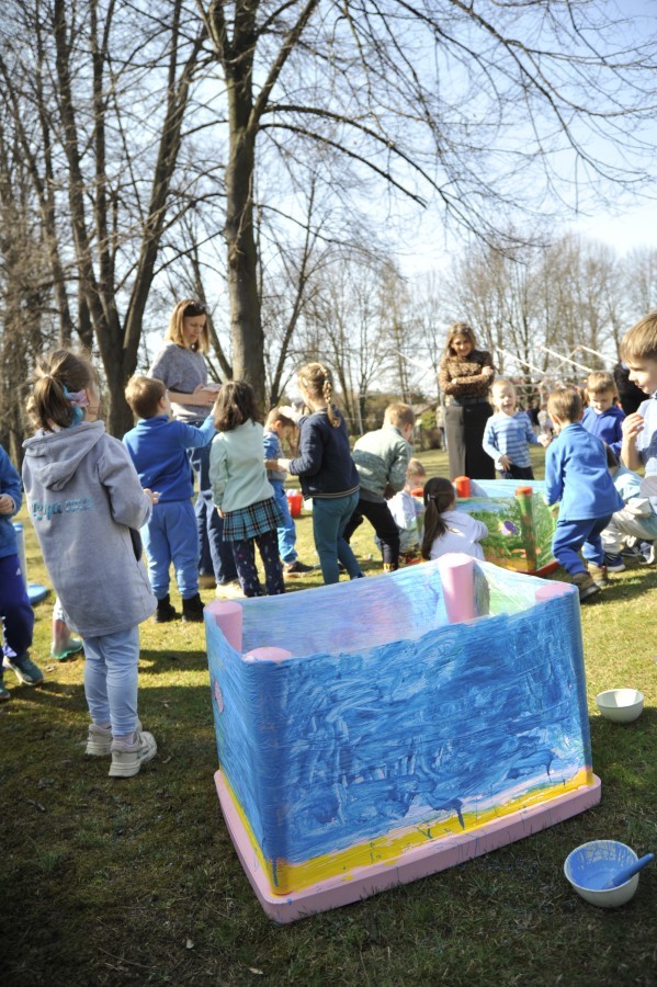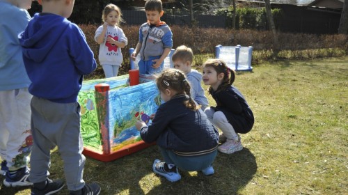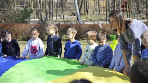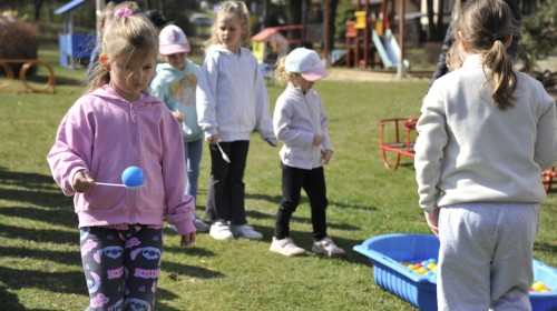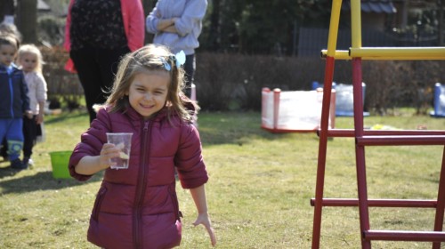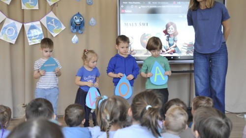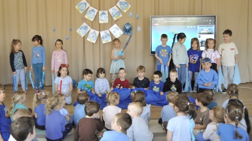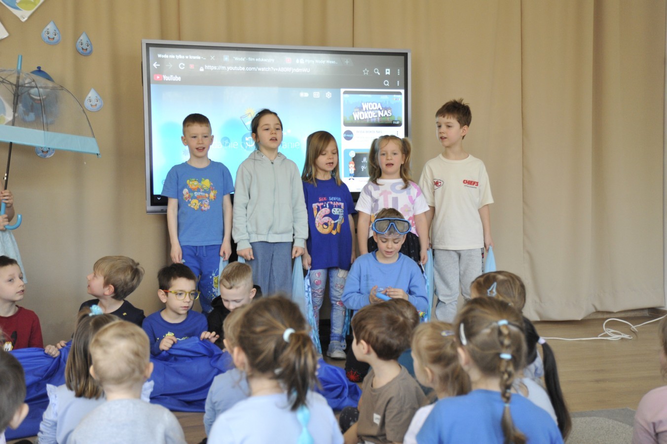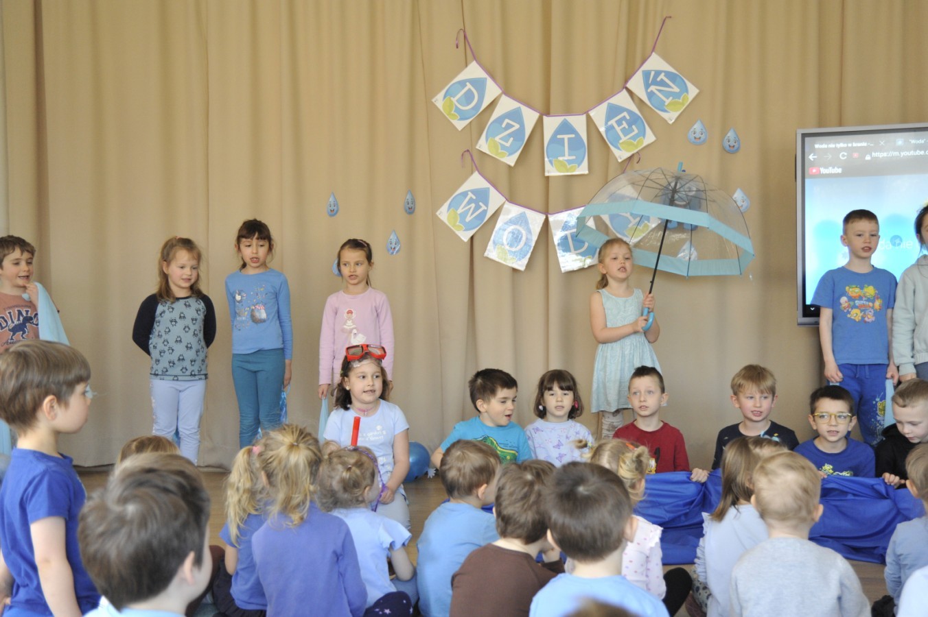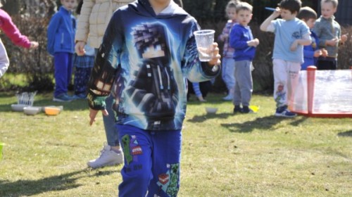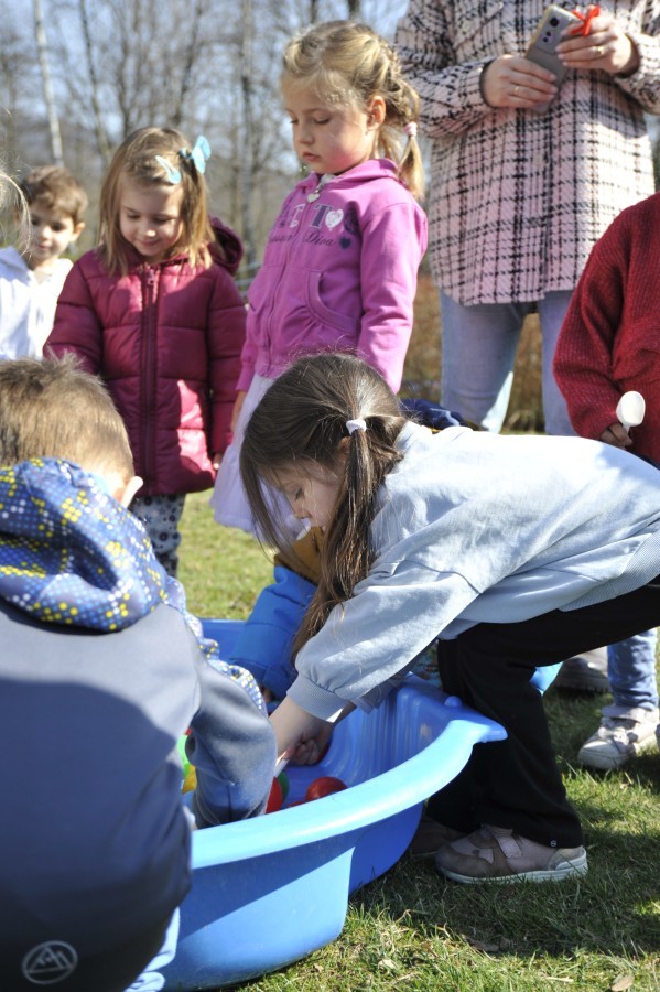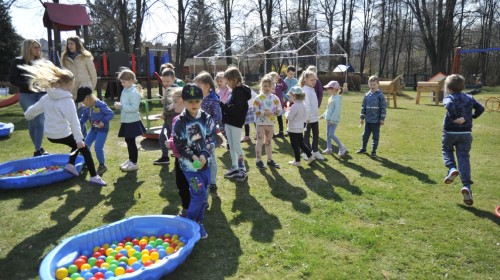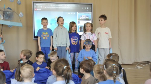Ważnym punktem wydarzenia był również występ dzieci z grupy 3A, które zaprezentowały piękną piosenkę o wodzie we wspaniałej aranżacji. Nie zabrakło także aktywności na świeżym powietrzu. W ogrodzie przedszkolnym dzieci uczestniczyły w zabawach z wodą oraz bawiły się z chustą animacyjną. Podczas ekologicznego zadania przedszkolaki miały również za zadanie posegregować śmieci do odpowiednich pudeł, ucząc się w praktyce, jak prawidłowo dbać o środowisko. Dzieci rozwijały także swoją kreatywność podczas malowania na stretchowej folii.