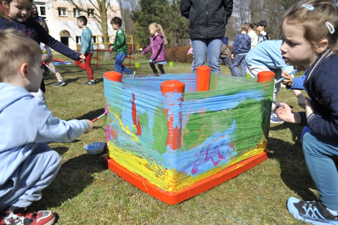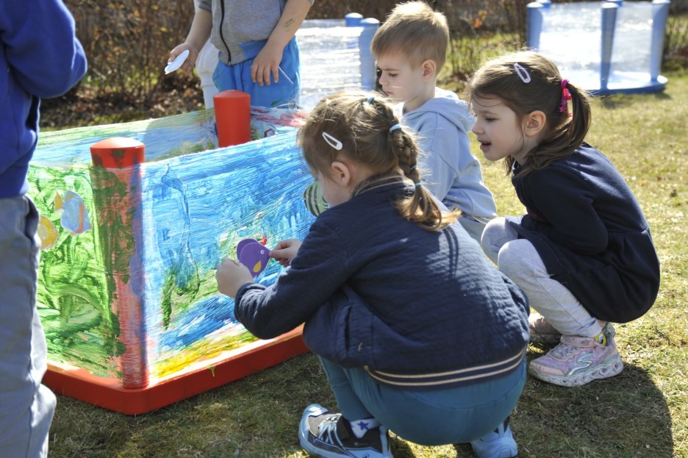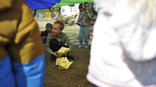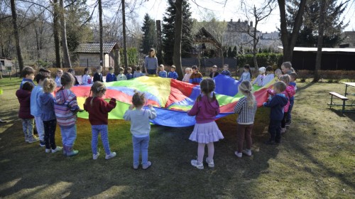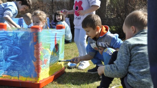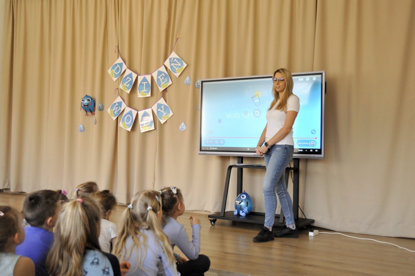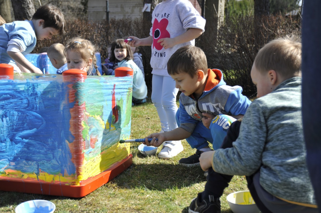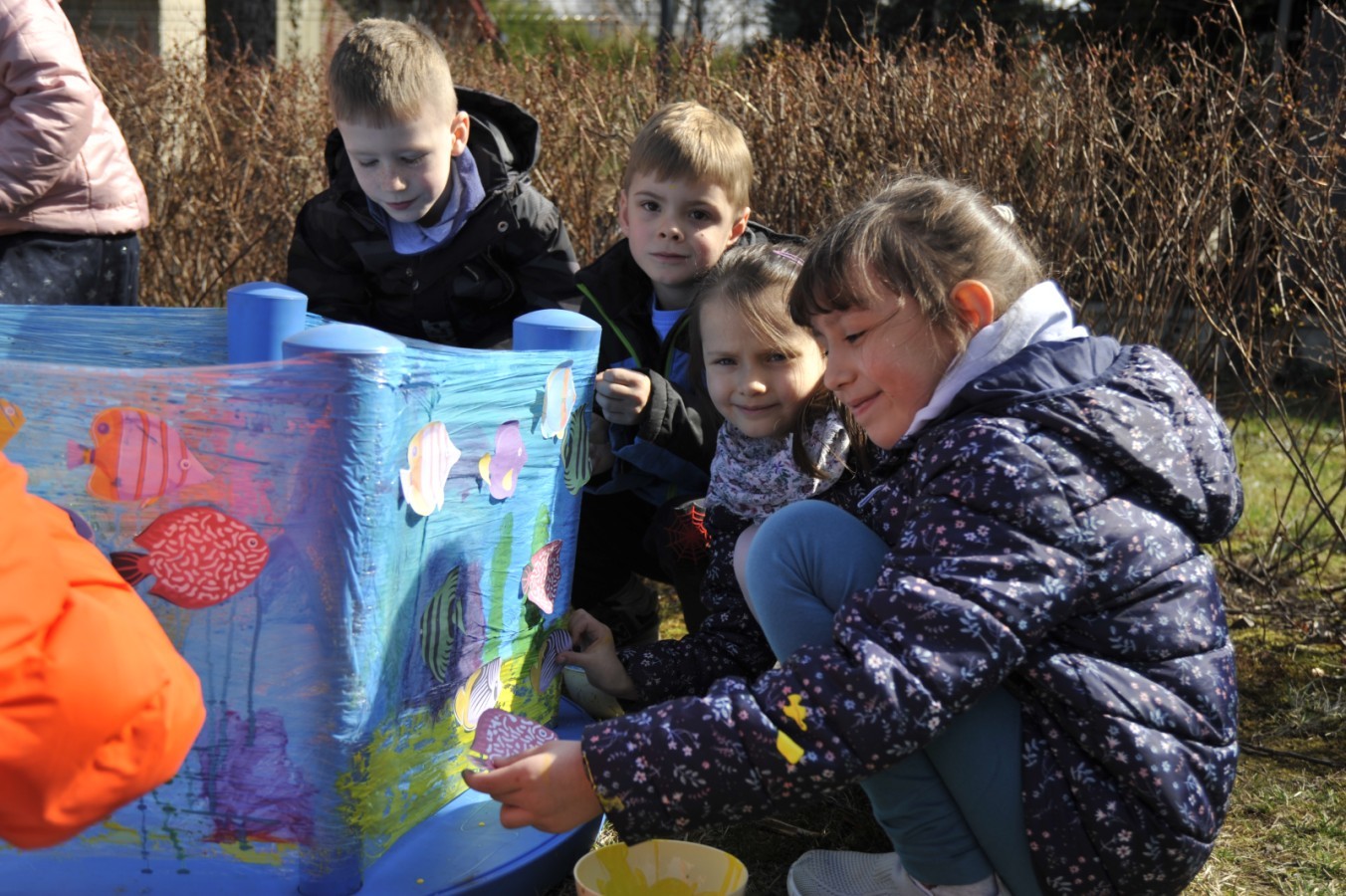 Ważnym punktem wydarzenia był również występ dzieci z grupy 3A, które zaprezentowały piękną piosenkę o wodzie we wspaniałej aranżacji. Nie zabrakło także aktywności na świeżym powietrzu. W ogrodzie przedszkolnym dzieci uczestniczyły w zabawach z wodą oraz bawiły się z chustą animacyjną. Podczas ekologicznego zadania przedszkolaki miały również za zadanie posegregować śmieci do odpowiednich pudeł, ucząc się w praktyce, jak prawidłowo dbać o środowisko. Dzieci rozwijały także swoją kreatywność podczas malowania na stretchowej folii.