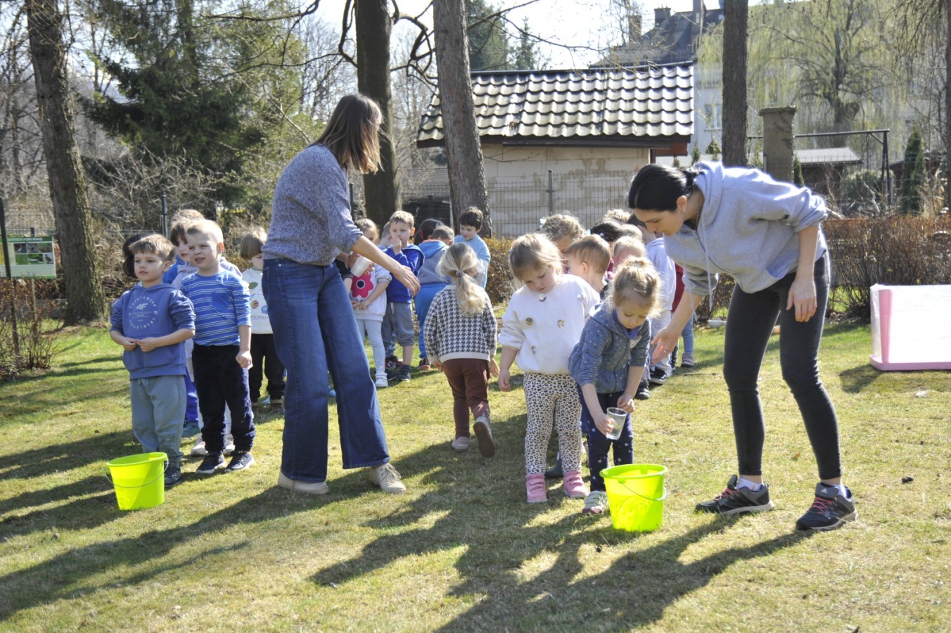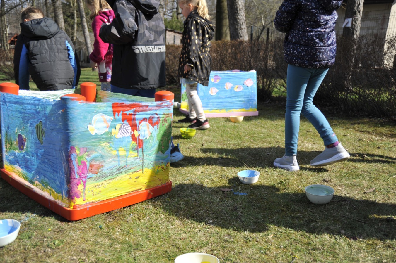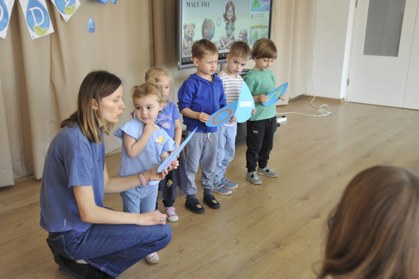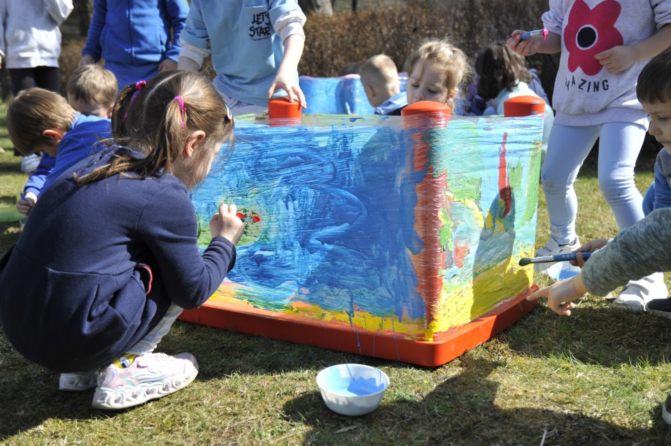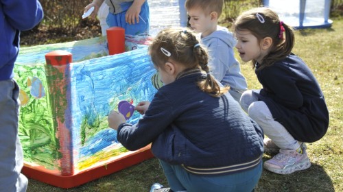 Ważnym punktem wydarzenia był również występ dzieci z grupy 3A, które zaprezentowały piękną piosenkę o wodzie we wspaniałej aranżacji. Nie zabrakło także aktywności na świeżym powietrzu. W ogrodzie przedszkolnym dzieci uczestniczyły w zabawach z wodą oraz bawiły się z chustą animacyjną. Podczas ekologicznego zadania przedszkolaki miały również za zadanie posegregować śmieci do odpowiednich pudeł, ucząc się w praktyce, jak prawidłowo dbać o środowisko. Dzieci rozwijały także swoją kreatywność podczas malowania na stretchowej folii.