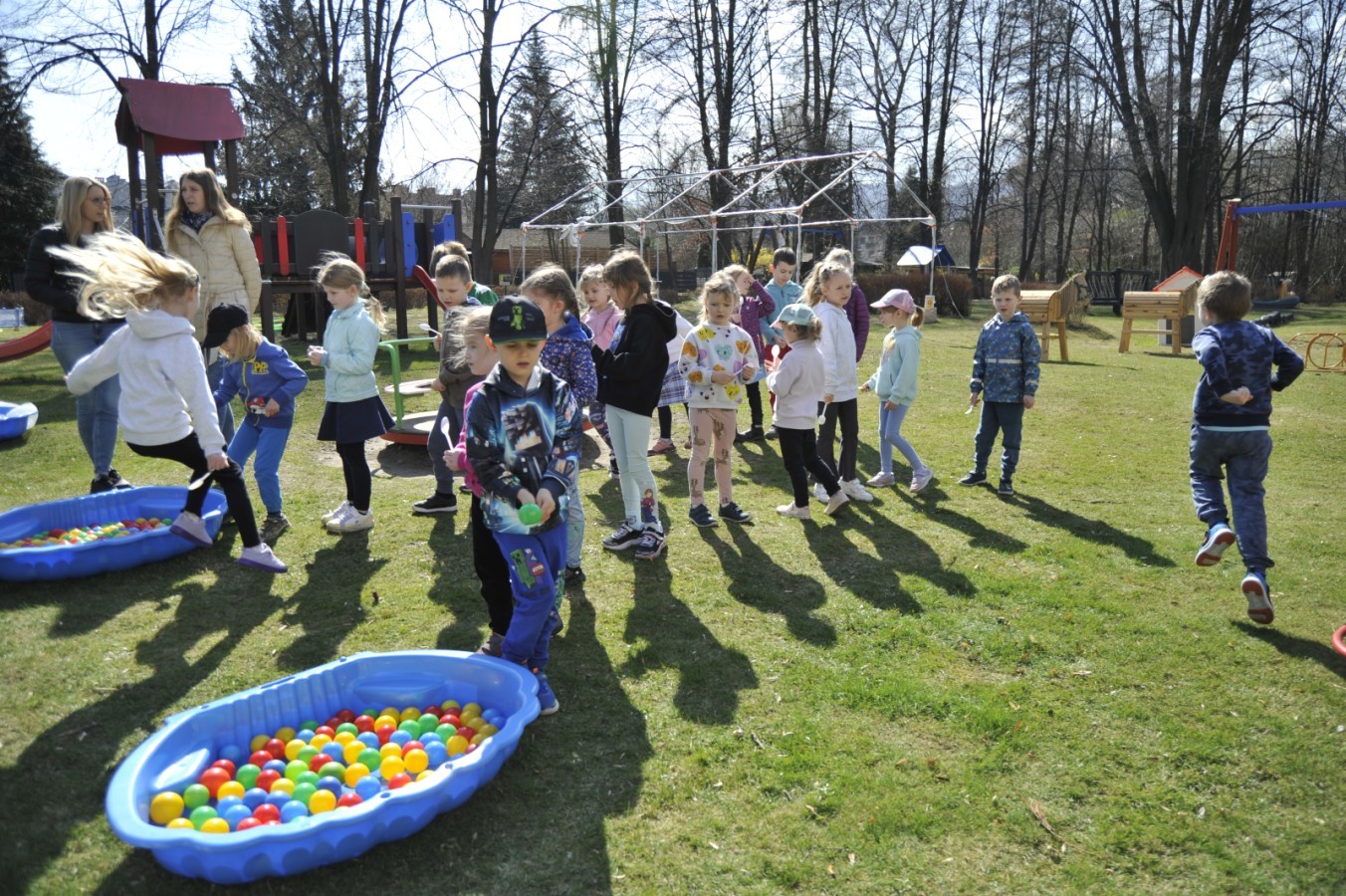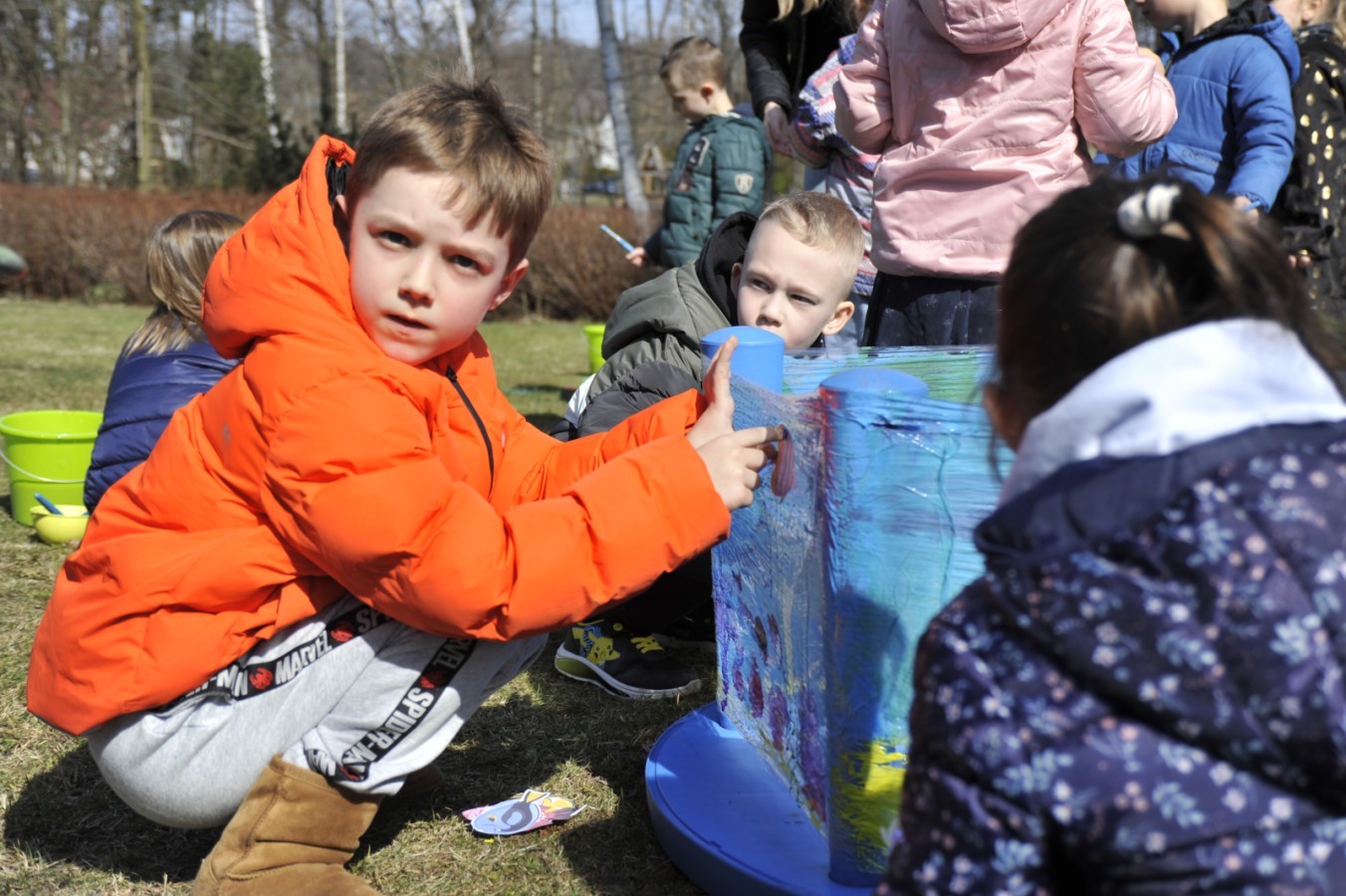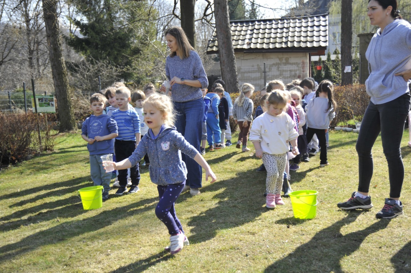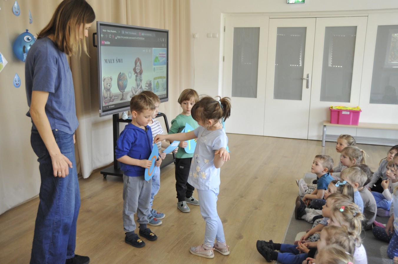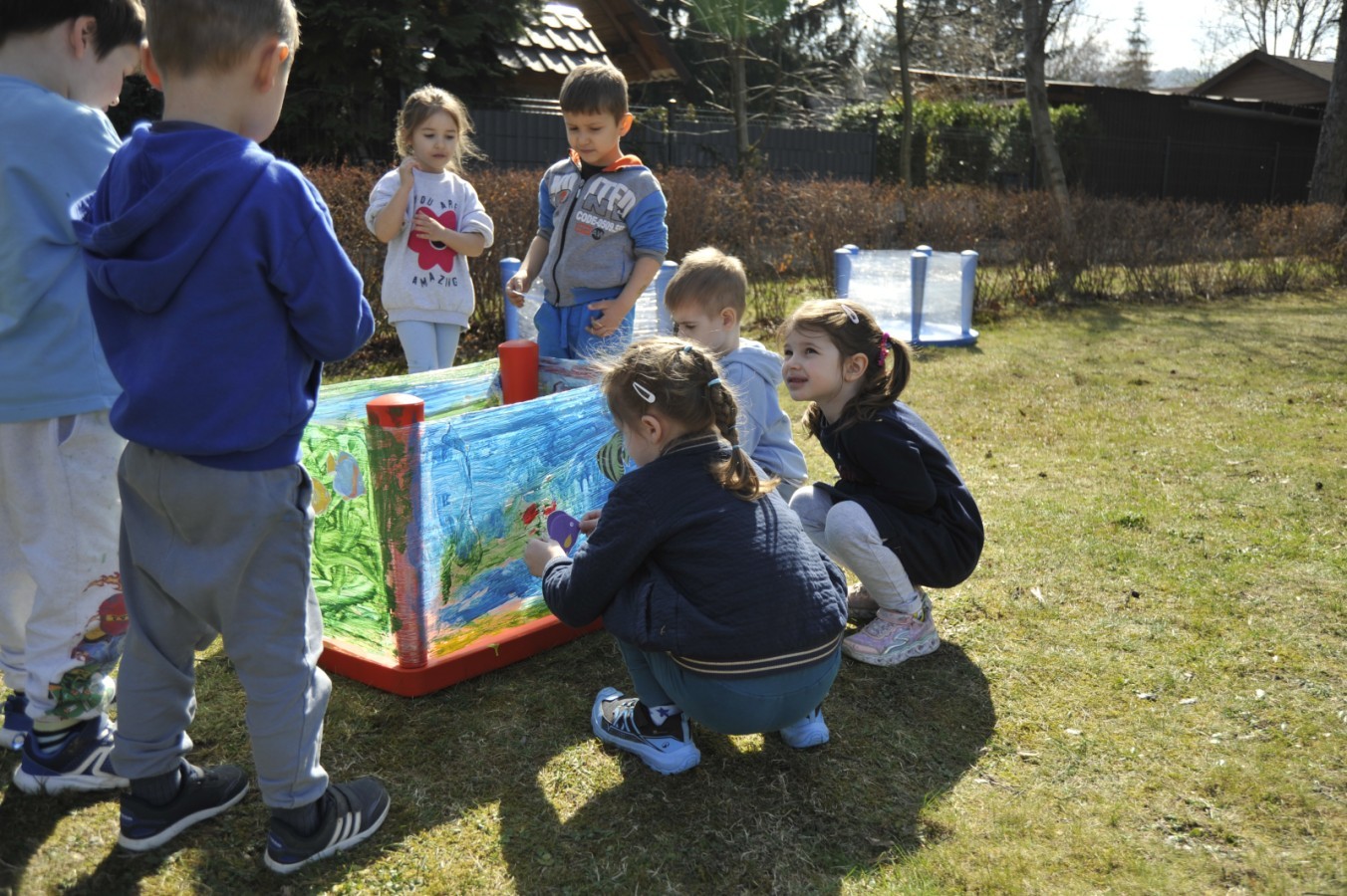 Ważnym punktem wydarzenia był również występ dzieci z grupy 3A, które zaprezentowały piękną piosenkę o wodzie we wspaniałej aranżacji. Nie zabrakło także aktywności na świeżym powietrzu. W ogrodzie przedszkolnym dzieci uczestniczyły w zabawach z wodą oraz bawiły się z chustą animacyjną. Podczas ekologicznego zadania przedszkolaki miały również za zadanie posegregować śmieci do odpowiednich pudeł, ucząc się w praktyce, jak prawidłowo dbać o środowisko. Dzieci rozwijały także swoją kreatywność podczas malowania na stretchowej folii.