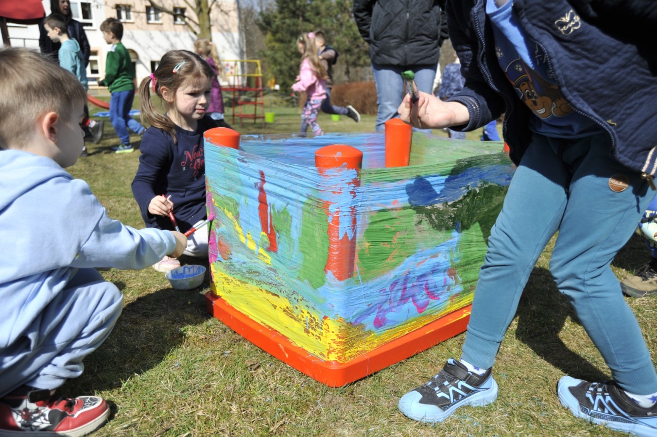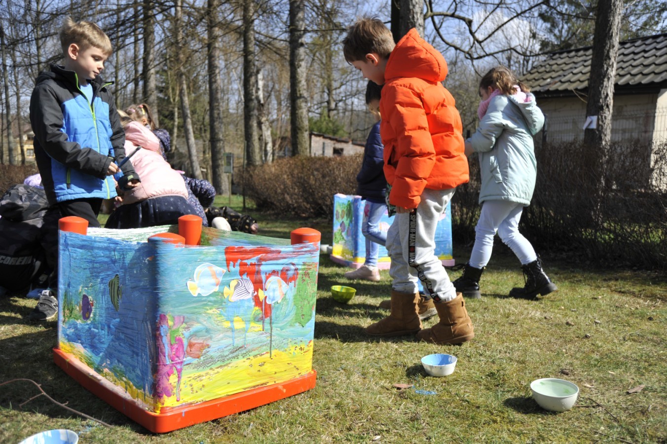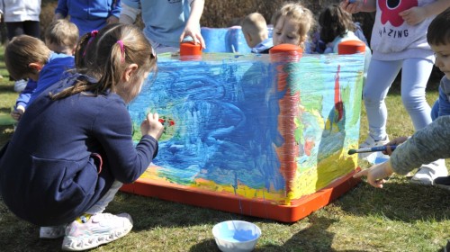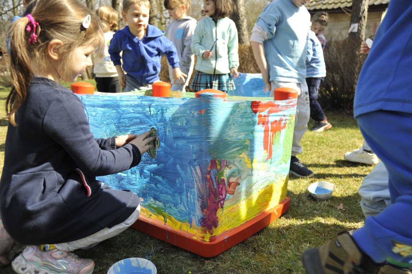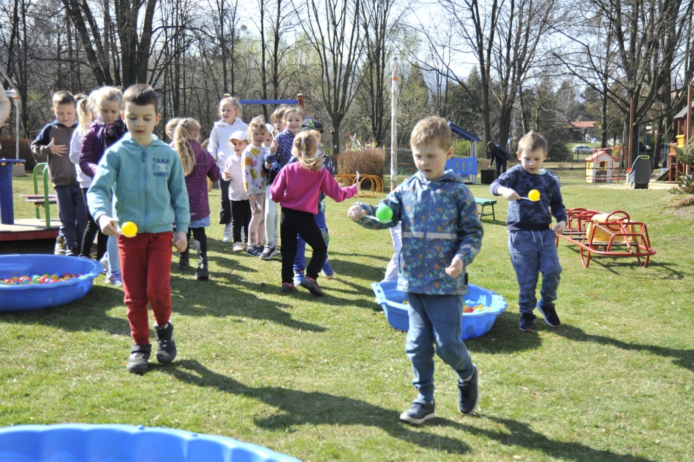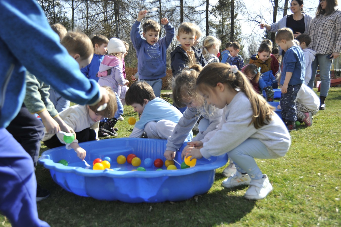 Ważnym punktem wydarzenia był również występ dzieci z grupy 3A, które zaprezentowały piękną piosenkę o wodzie we wspaniałej aranżacji. Nie zabrakło także aktywności na świeżym powietrzu. W ogrodzie przedszkolnym dzieci uczestniczyły w zabawach z wodą oraz bawiły się z chustą animacyjną. Podczas ekologicznego zadania przedszkolaki miały również za zadanie posegregować śmieci do odpowiednich pudeł, ucząc się w praktyce, jak prawidłowo dbać o środowisko. Dzieci rozwijały także swoją kreatywność podczas malowania na stretchowej folii.