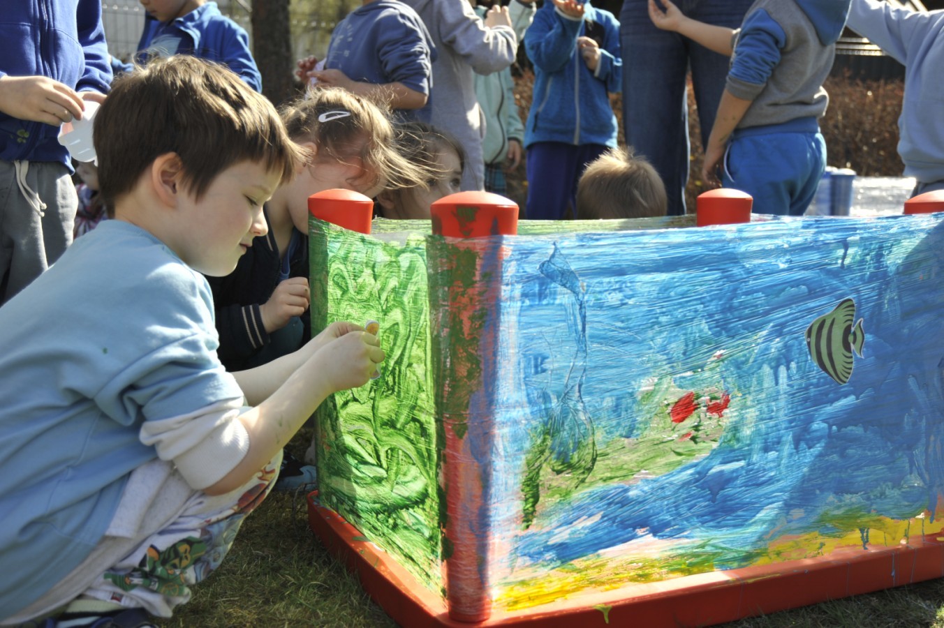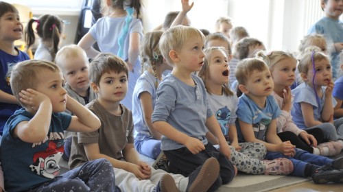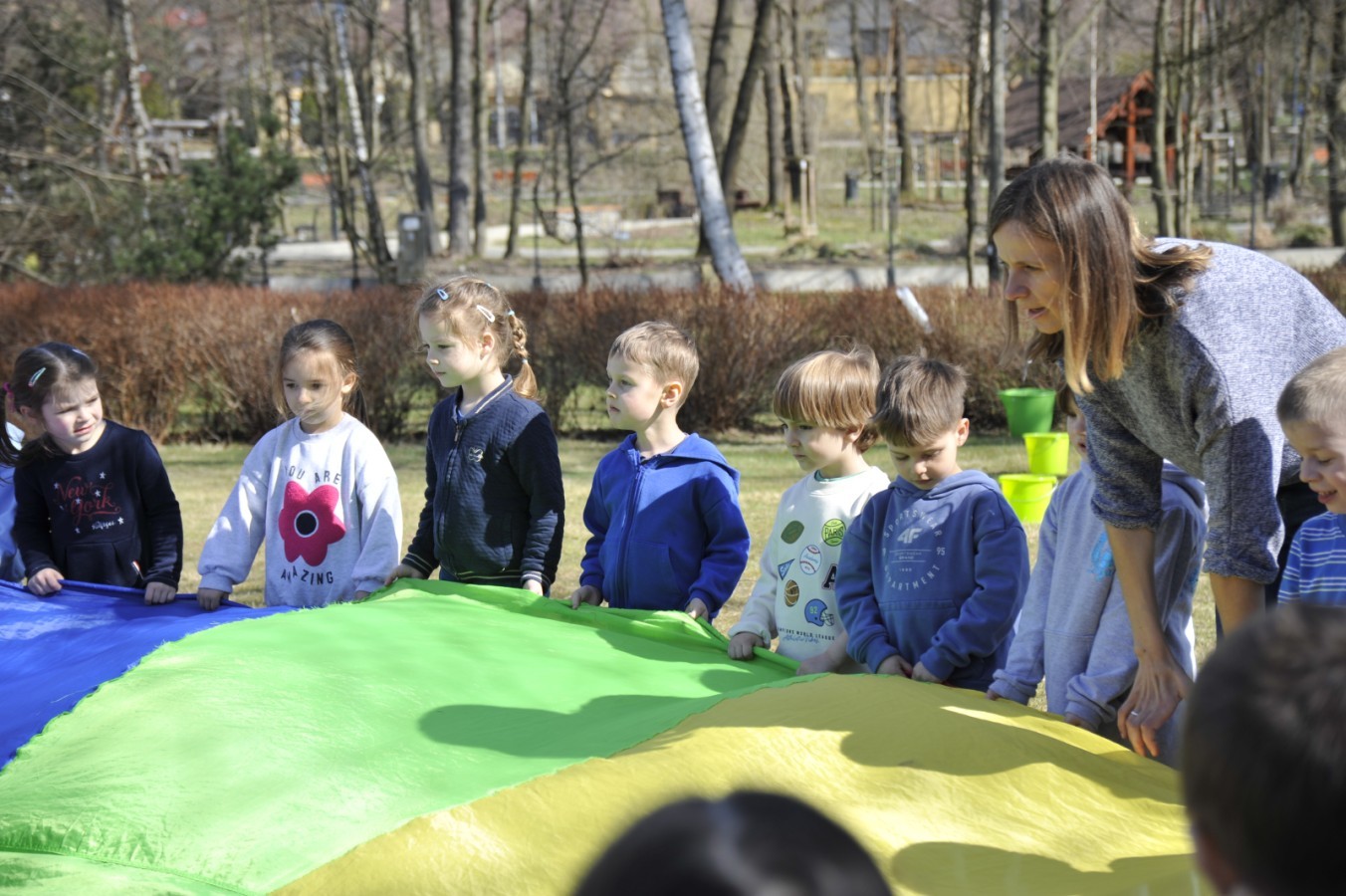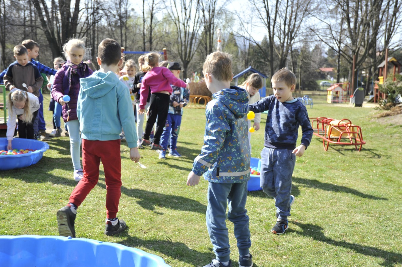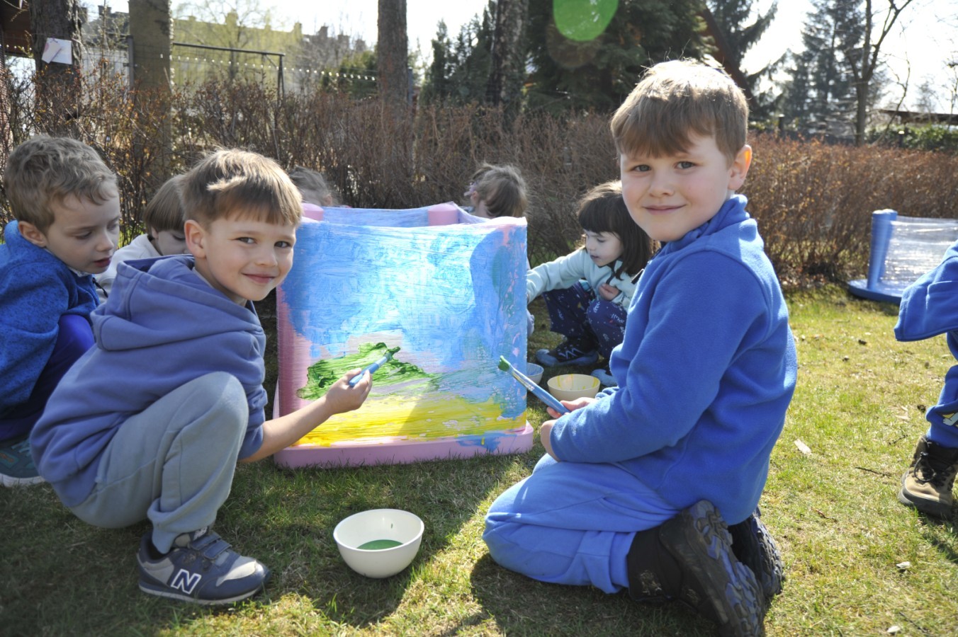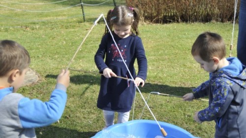Ważnym punktem wydarzenia był również występ dzieci z grupy 3A, które zaprezentowały piękną piosenkę o wodzie we wspaniałej aranżacji. Nie zabrakło także aktywności na świeżym powietrzu. W ogrodzie przedszkolnym dzieci uczestniczyły w zabawach z wodą oraz bawiły się z chustą animacyjną. Podczas ekologicznego zadania przedszkolaki miały również za zadanie posegregować śmieci do odpowiednich pudeł, ucząc się w praktyce, jak prawidłowo dbać o środowisko. Dzieci rozwijały także swoją kreatywność podczas malowania na stretchowej folii.