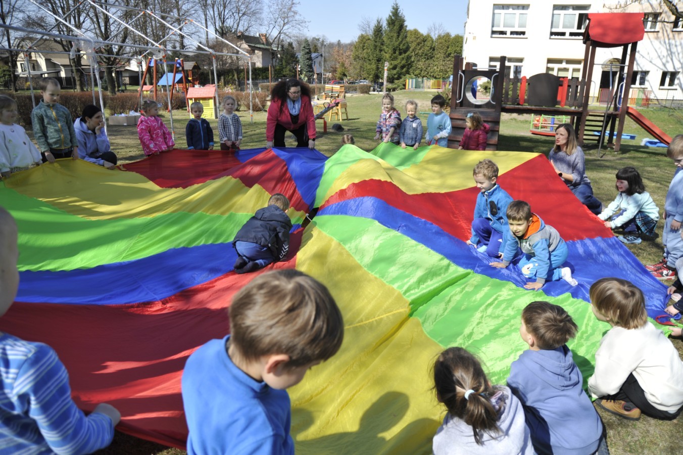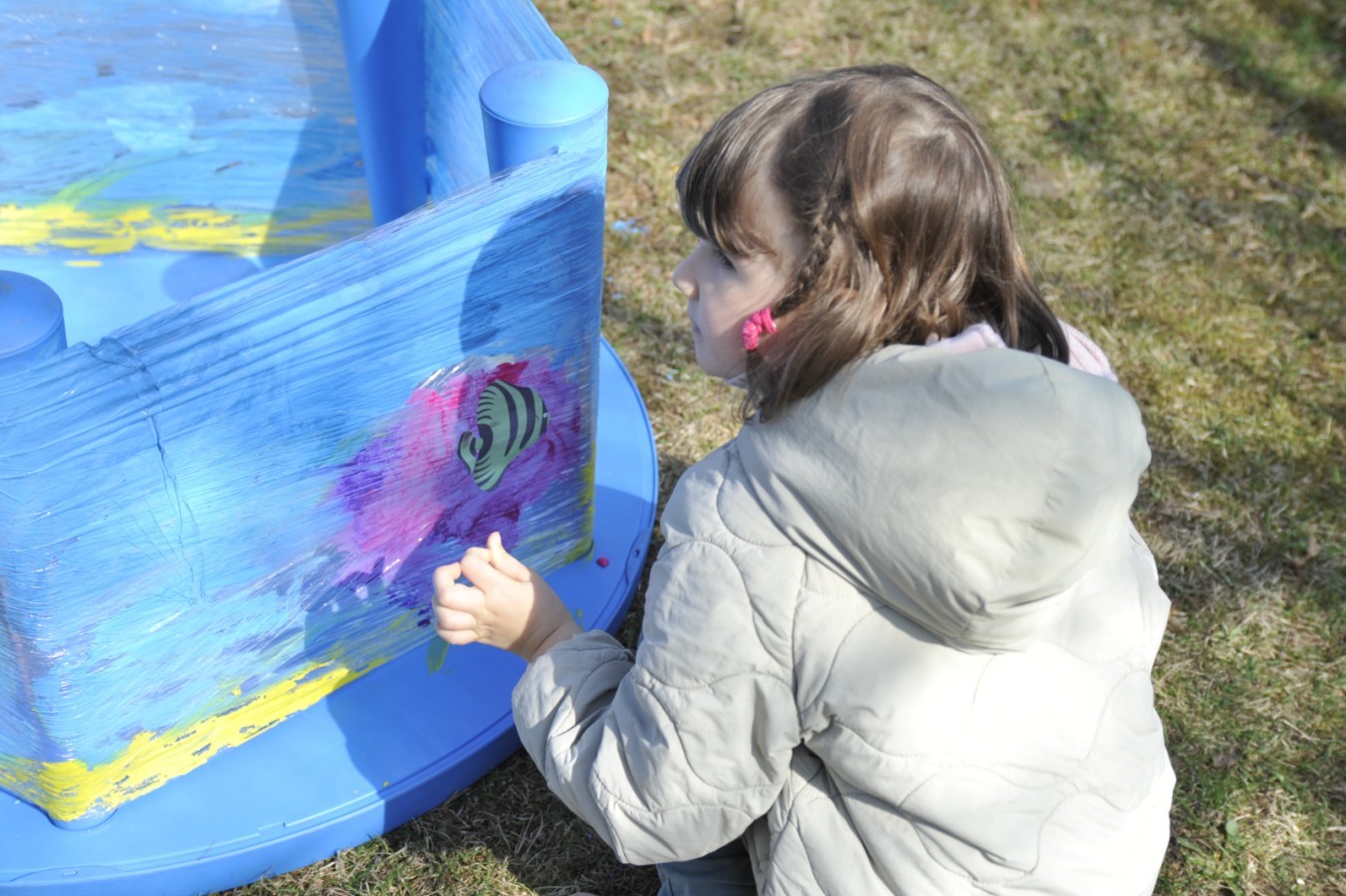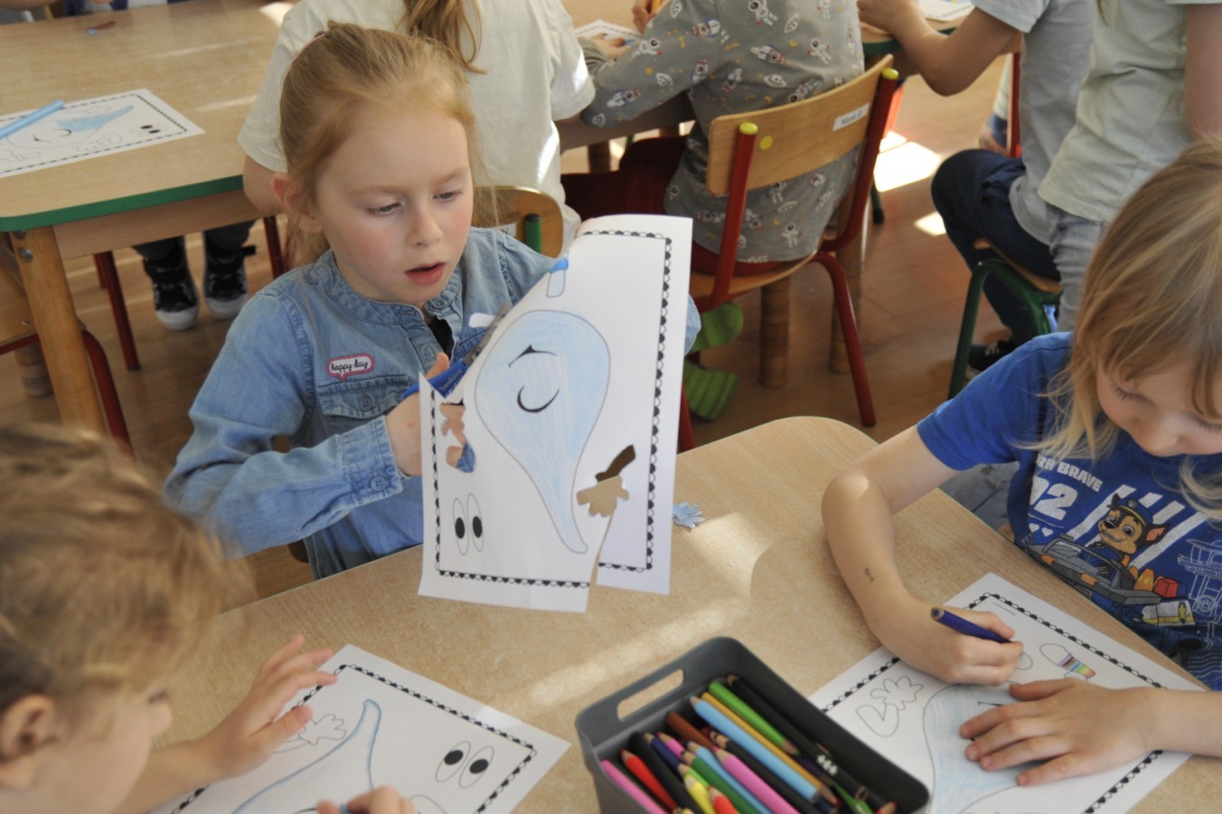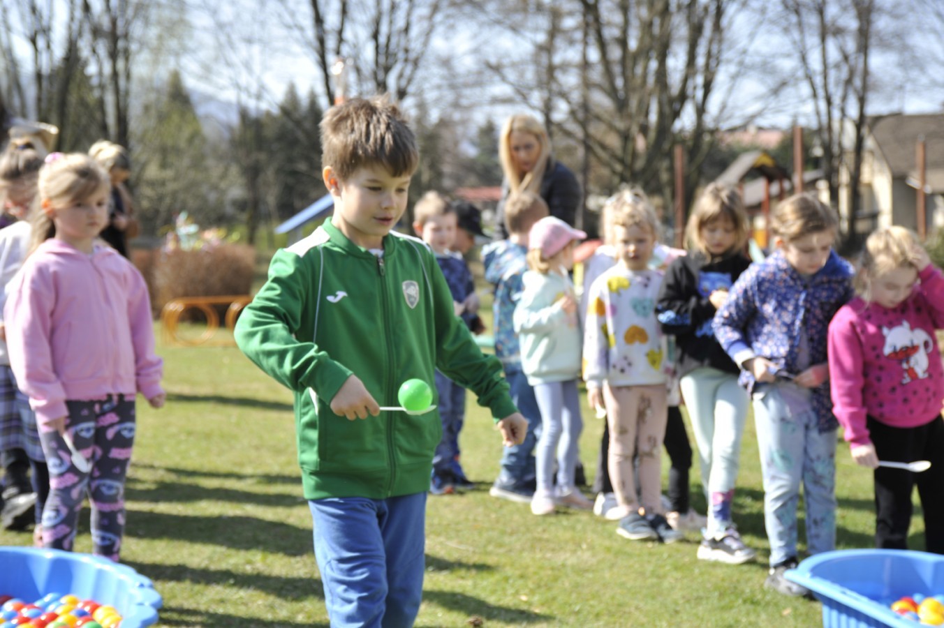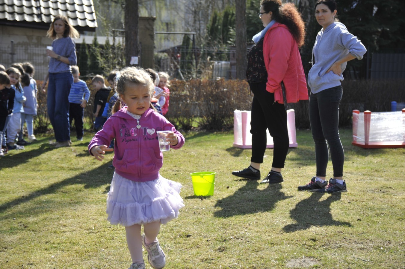 Ważnym punktem wydarzenia był również występ dzieci z grupy 3A, które zaprezentowały piękną piosenkę o wodzie we wspaniałej aranżacji. Nie zabrakło także aktywności na świeżym powietrzu. W ogrodzie przedszkolnym dzieci uczestniczyły w zabawach z wodą oraz bawiły się z chustą animacyjną. Podczas ekologicznego zadania przedszkolaki miały również za zadanie posegregować śmieci do odpowiednich pudeł, ucząc się w praktyce, jak prawidłowo dbać o środowisko. Dzieci rozwijały także swoją kreatywność podczas malowania na stretchowej folii.