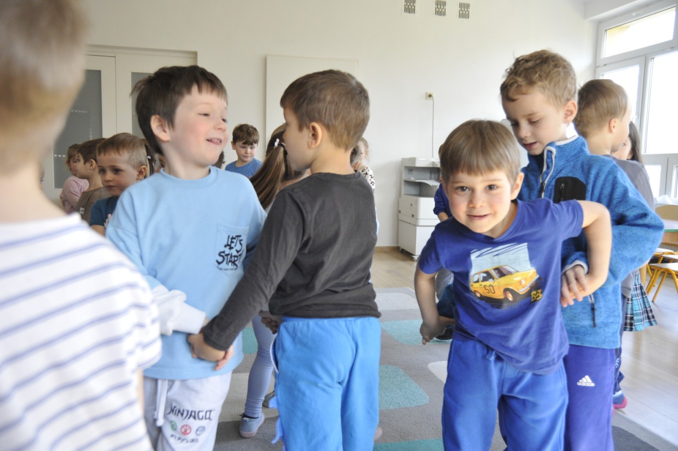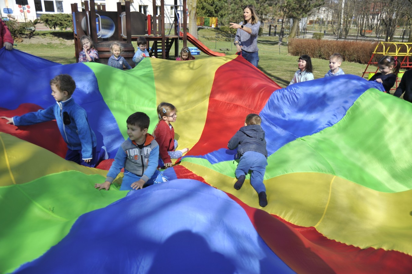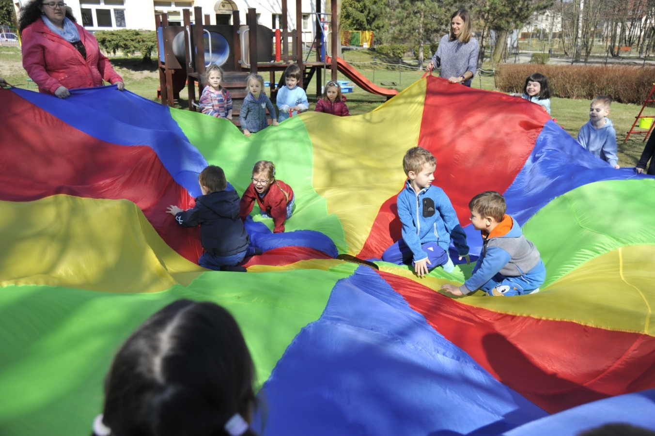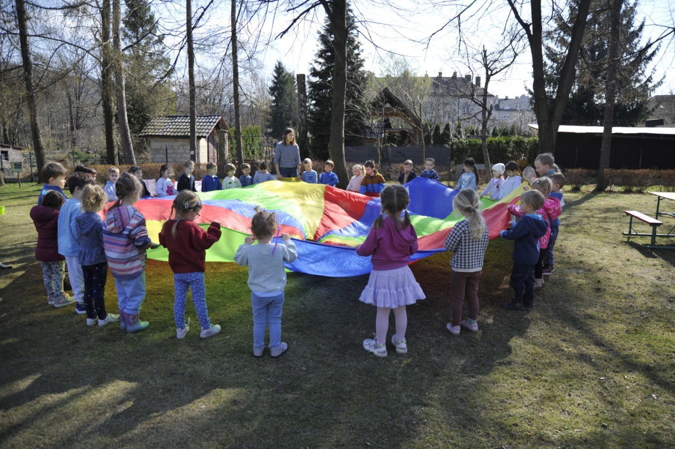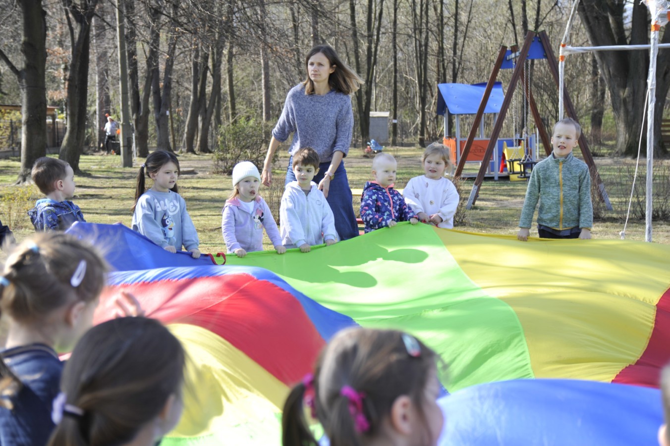Ważnym punktem wydarzenia był również występ dzieci z grupy 3A, które zaprezentowały piękną piosenkę o wodzie we wspaniałej aranżacji. Nie zabrakło także aktywności na świeżym powietrzu. W ogrodzie przedszkolnym dzieci uczestniczyły w zabawach z wodą oraz bawiły się z chustą animacyjną. Podczas ekologicznego zadania przedszkolaki miały również za zadanie posegregować śmieci do odpowiednich pudeł, ucząc się w praktyce, jak prawidłowo dbać o środowisko. Dzieci rozwijały także swoją kreatywność podczas malowania na stretchowej folii.