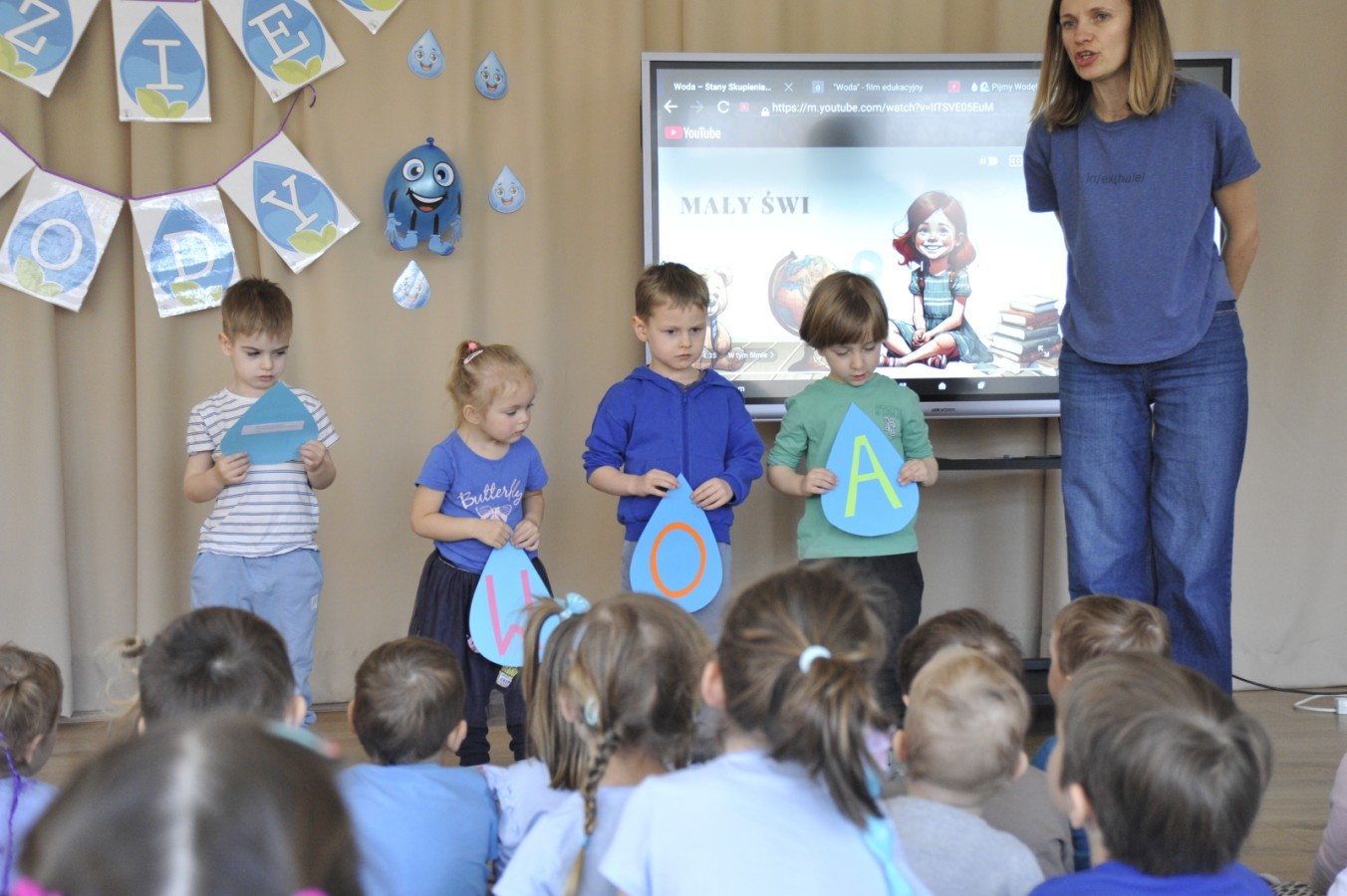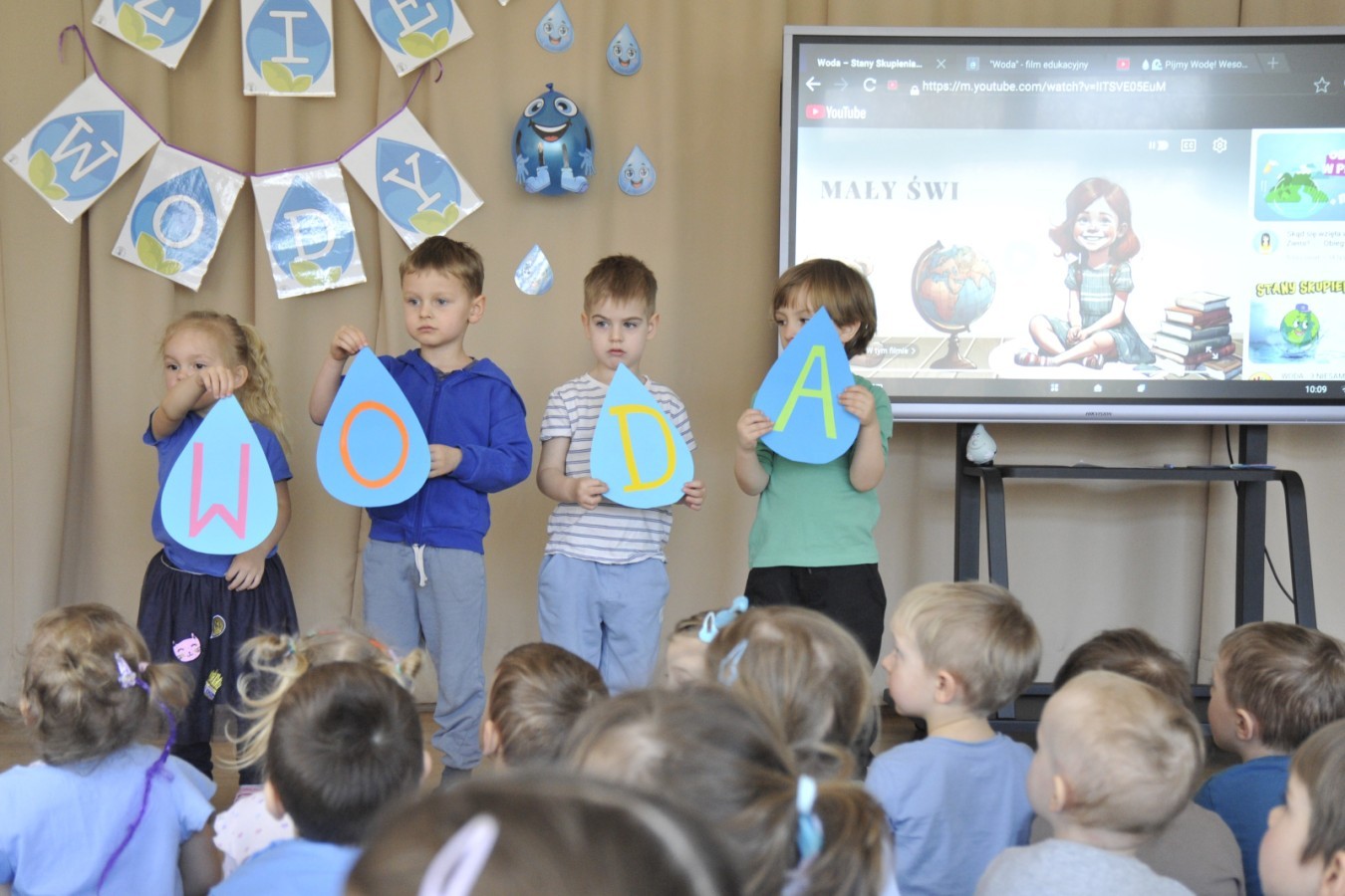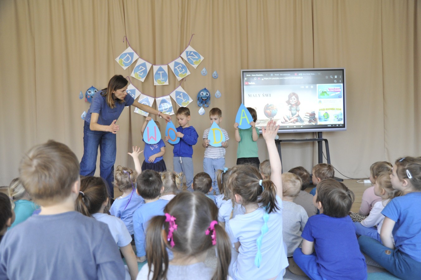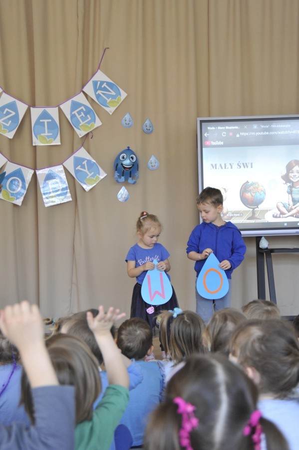 W naszym przedszkolu odbyło się wyjątkowe wydarzenie ekologiczne powiązane z obchodami Dnia Wody. Tego dnia dzieci rozmawiały o tym, jak ważna jest woda w naszym życiu oraz w jaki sposób możemy o nią dbać każdego dnia.