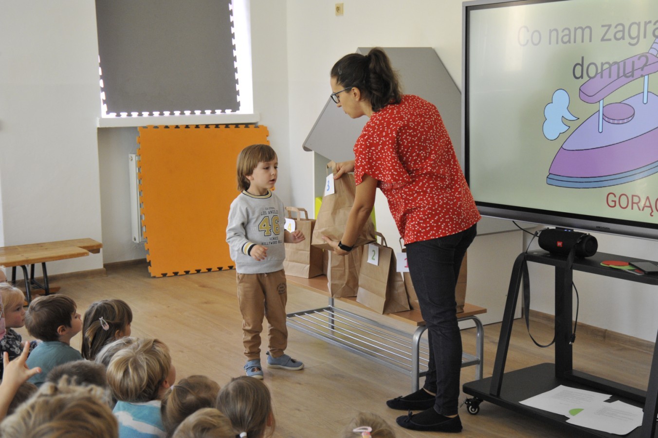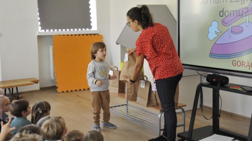 W październiku rozmawialiśmy o tym, jak być bezpiecznym w domu. Zwróciliśmy uwagę na przedmioty mogące stanowić zagrożenie dla dzieci w domu, takie jak żelazko, ostre przedmioty (nożyczki, noże), gorące naczynia, rozlana woda, detergenty. Przypomnieliśmy sobie również zasady bezpieczeństwa w przedszkolu, na placu zabaw, podczas wycieczek. Na koniec był bezpieczny tor przeszkód oraz quiz o bezpieczeństwie. Dzieciaki wiedzą jak dbać o bezpieczeństwo w domu i przedszkolu. Oby potrafiły zastosować poznane zasady w praktyce!:)
