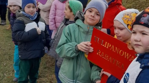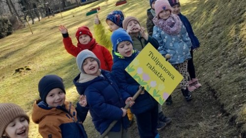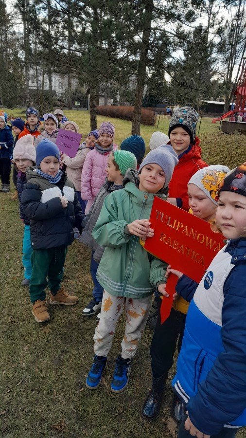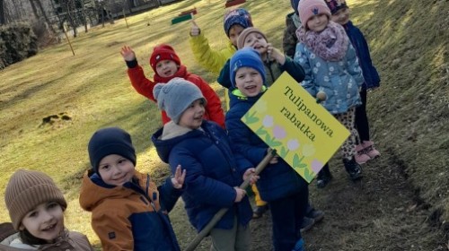 Serdecznie dziękujemy mamie Polka oraz tacie Alicji za przygotowanie pięknych tabliczek do naszego przedszkolnego ogrodu z nazwami naszego pola krokusowego i pola tulipanowego.