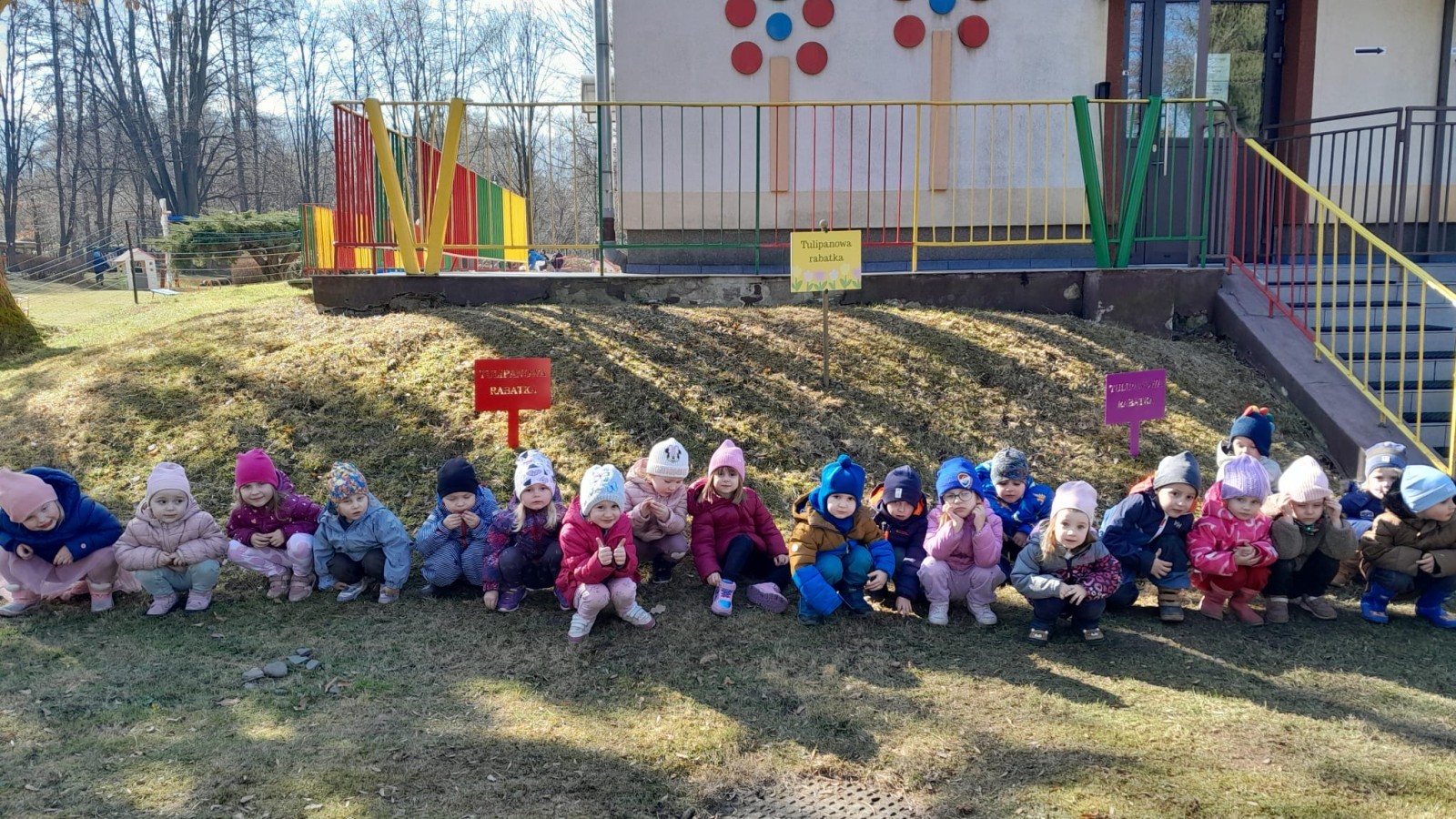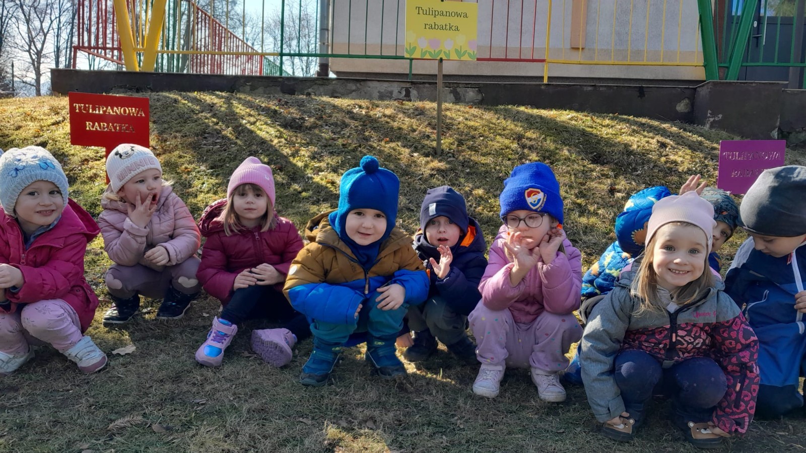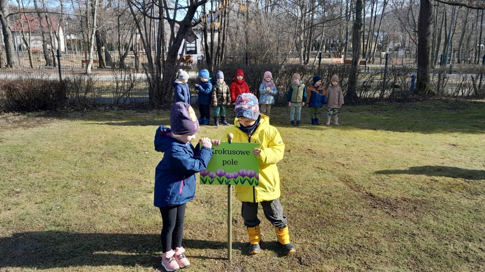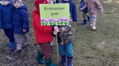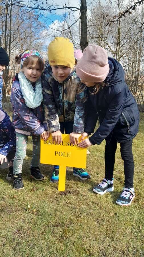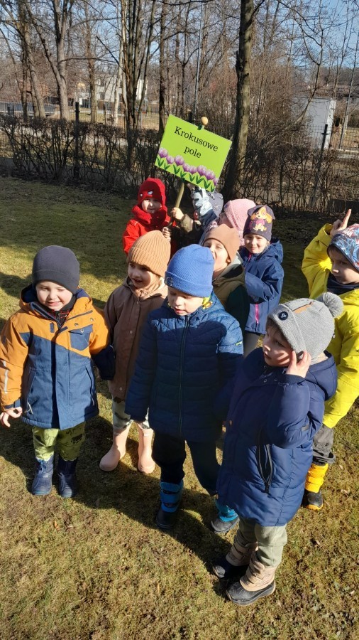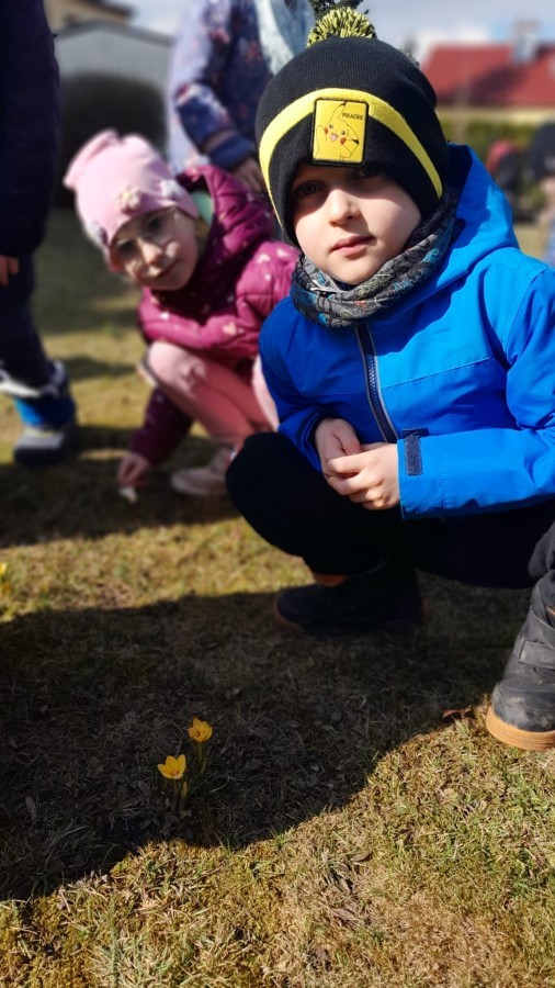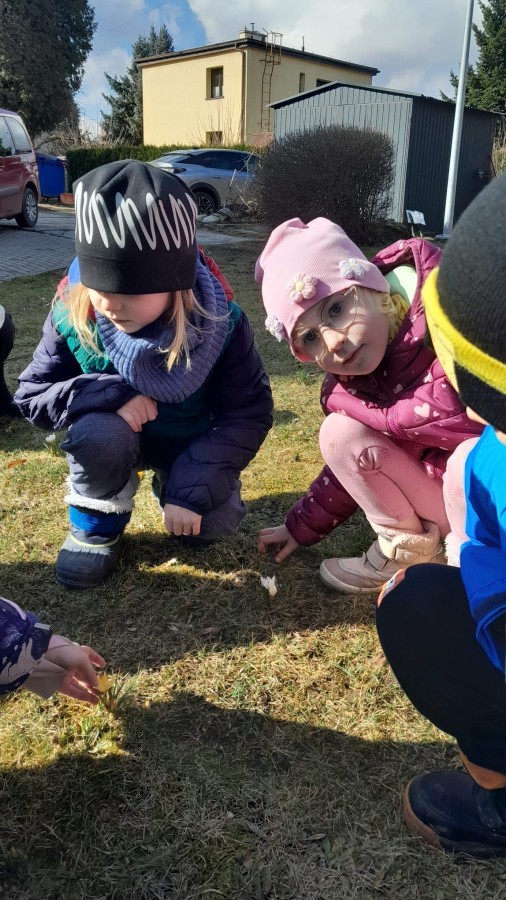 Wiosna zbliża się do naszego przedszkolnego ogrodu wielkimi krokami. Powolutku z ziemi wychylają się listki tulipanów, które posadziliśmy jesienią. Przed przedszkolem zaczynają też pięknie zakwitać krokusy, wprowadzając prawdziwie wiosenny nastrój.