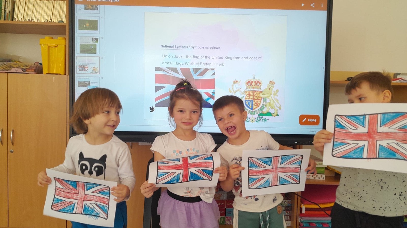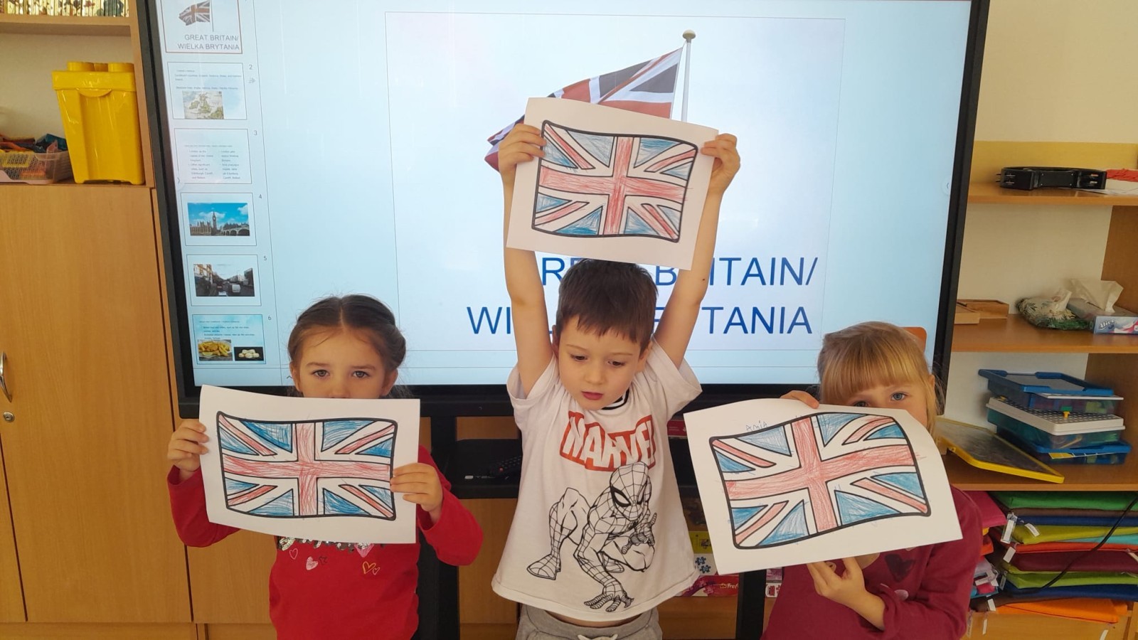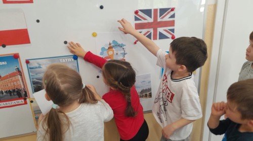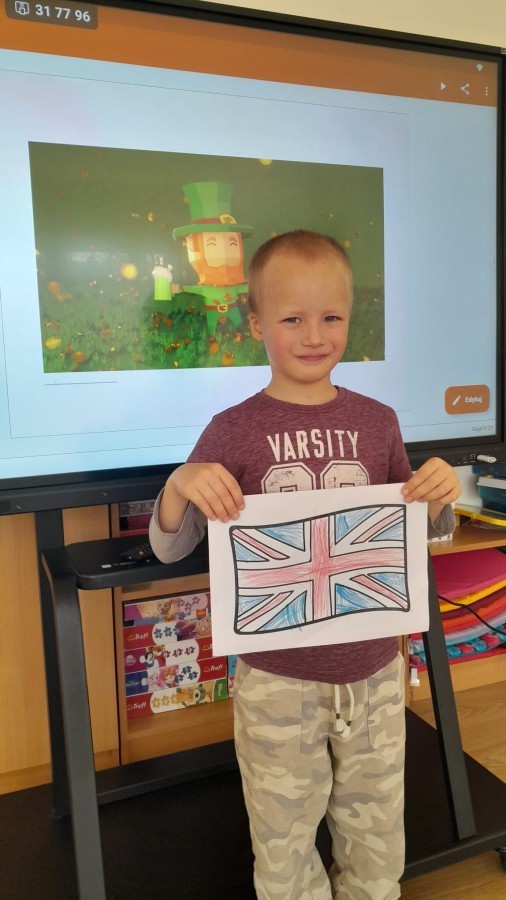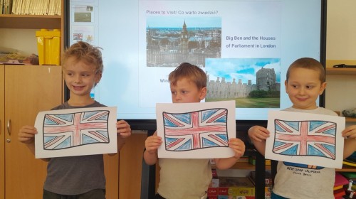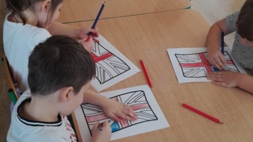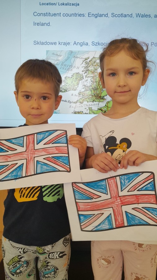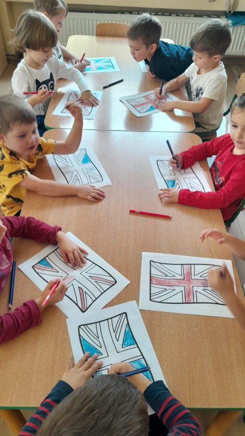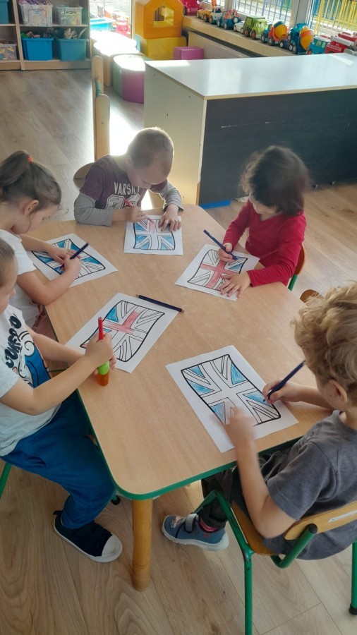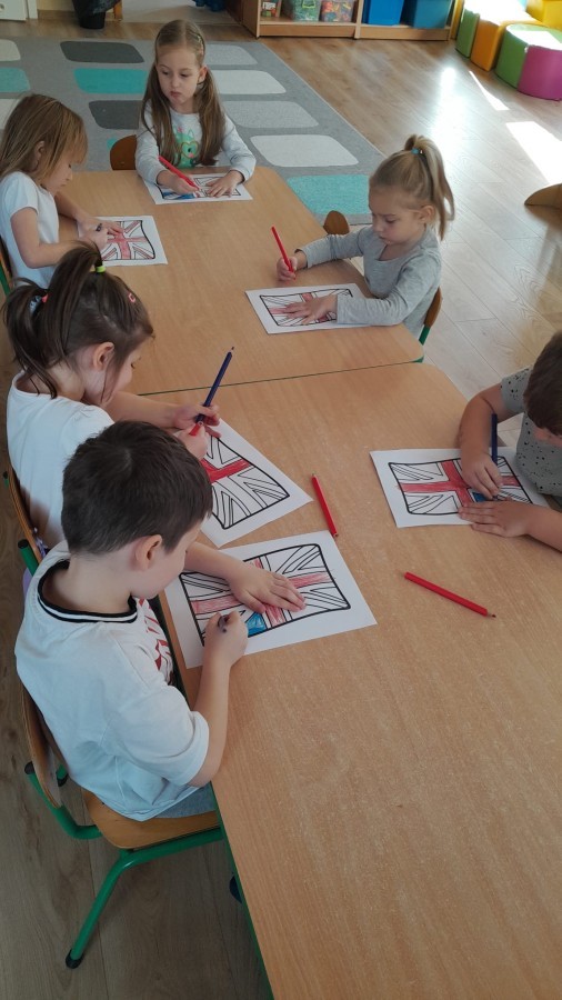 Dzieci z Grupy 2 wykonały kolejne zadania z Projektu "Angielski jest FUN-tastyczny". Najpierw obejrzały prezentację multimedialną o Wielkiej Brytanii, a następnie pokolorowały brytyjską flagę.
