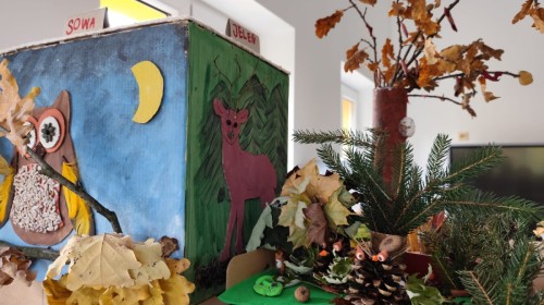 W październiku chętne dzieci wraz z rodzicami wzięły udział w przedszkolnym konkursie "Jesienne zwierzaki - mali mieszkańcy lasu i parku". Zarówno ilość, jak i pomysłowość wykonanych prac pozytywnie nas zaskoczyła - wszystkie są piękne!