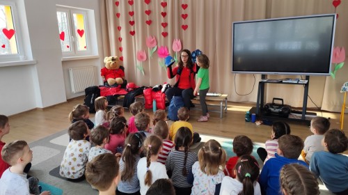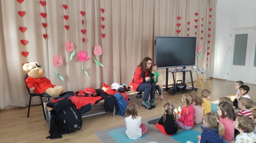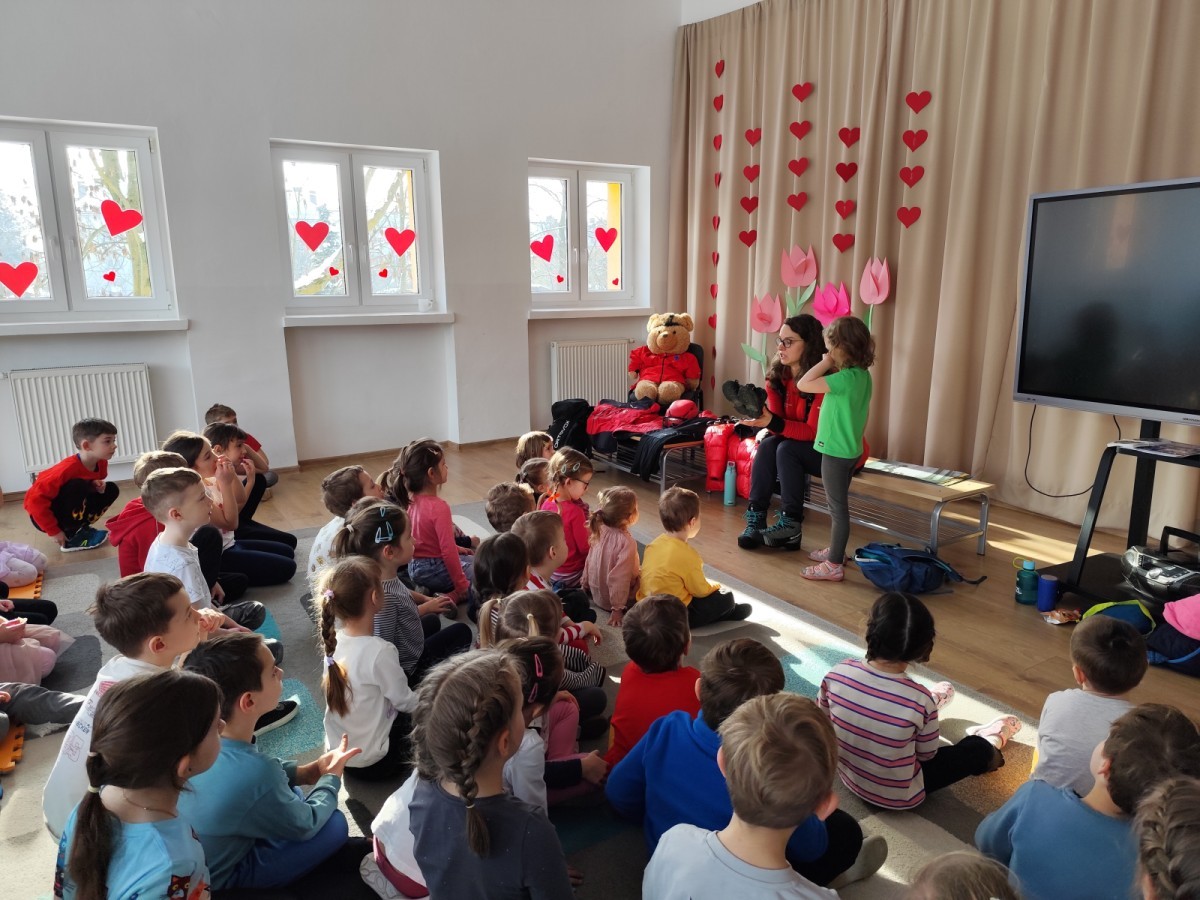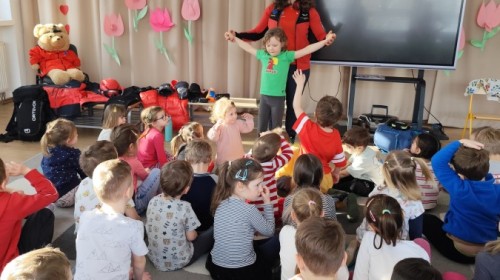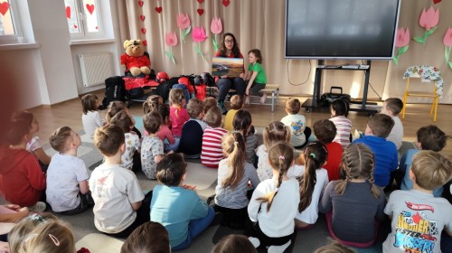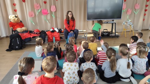 20 lutego, w ramach naszego przedszkolnego projektu „Jestem bezpieczny i znam zasady pierwszej pomocy”, odwiedziła nas mama Zosi z grupy III B, która pracuje jako górska ratowniczka.