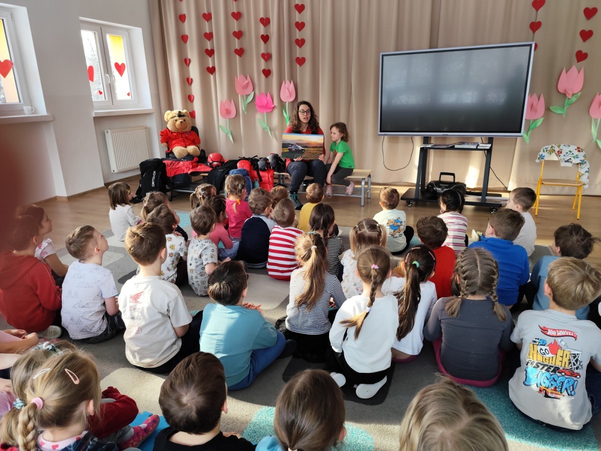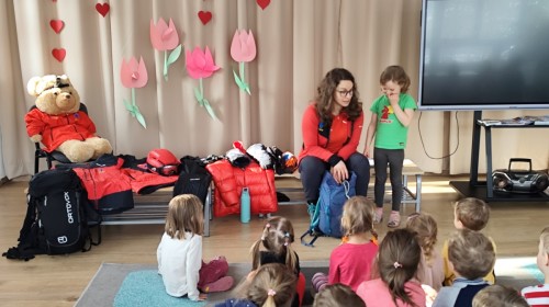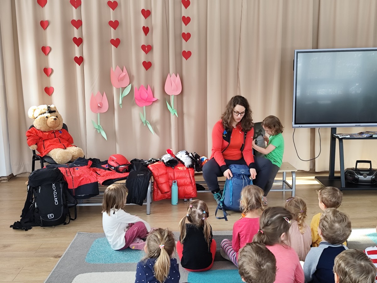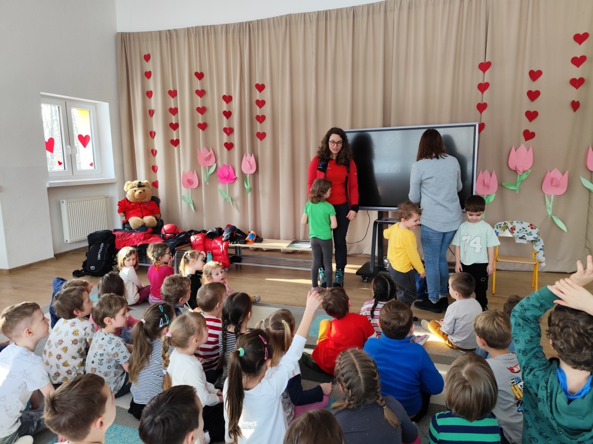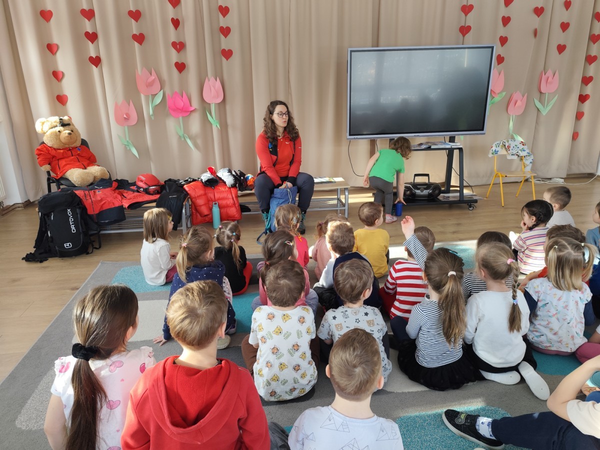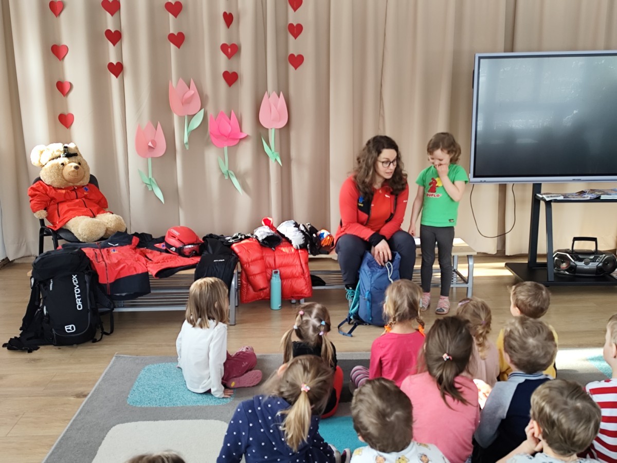 Opowiedziała dzieciom o swojej pracy oraz o tym, jak wygląda służba ratownika w górach. Pokazała także wyposażenie, które każdy ratownik zabiera ze sobą podczas akcji ratunkowych. Dzieci dowiedziały się, w jaki sposób prawidłowo wzywać pomoc w górach.