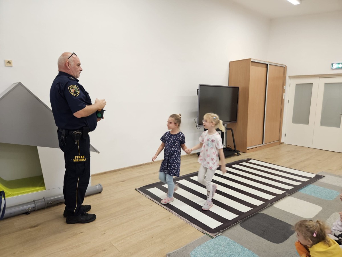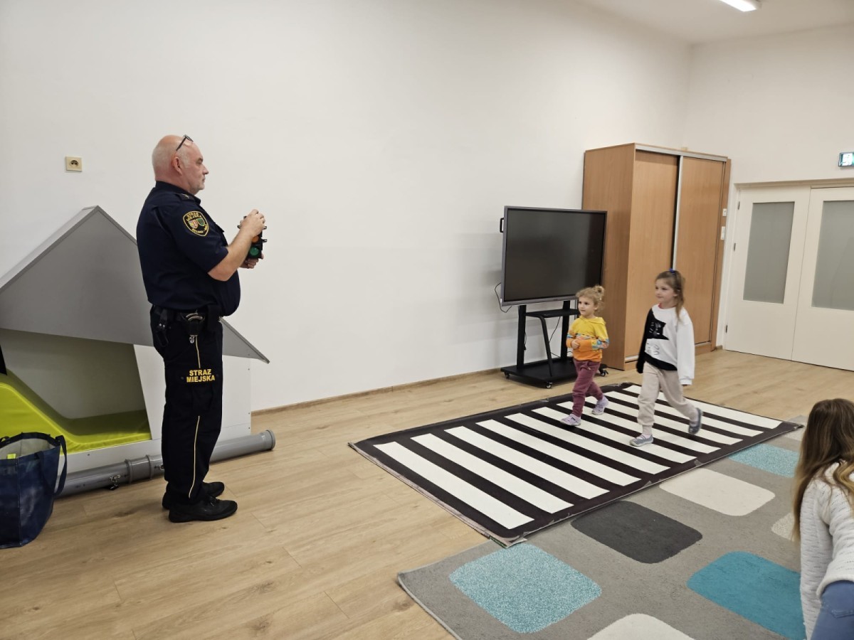 W piątek, 24 października, odwiedziła nas Straż Miejska. Przypomnieliśmy sobie zasady bezpiecznego poruszania się po drodze. Mogliśmy też sprawdzić swoje umiejętności w praktyce.