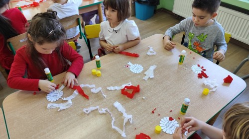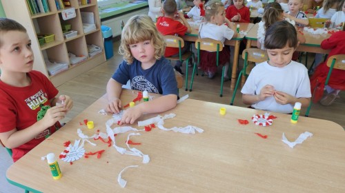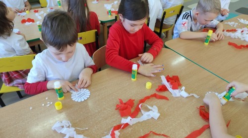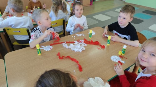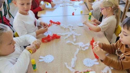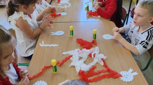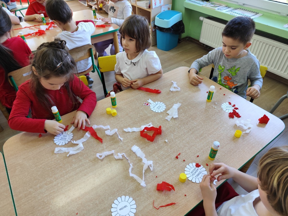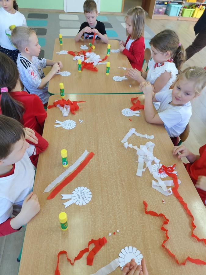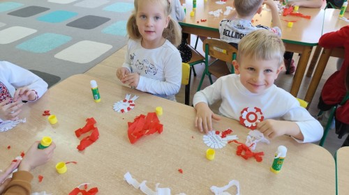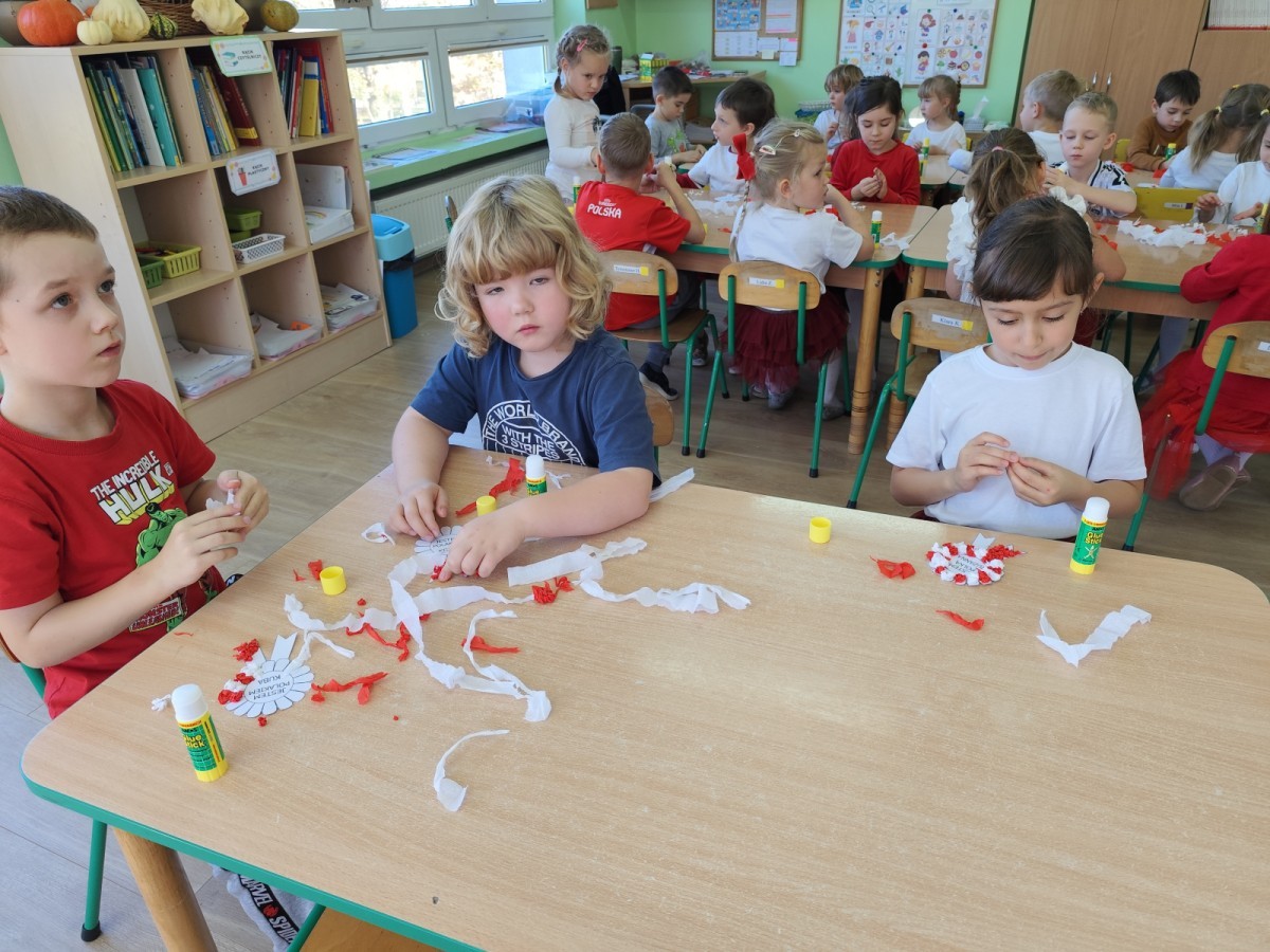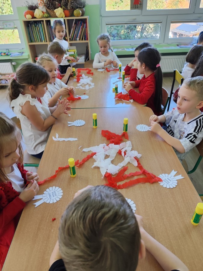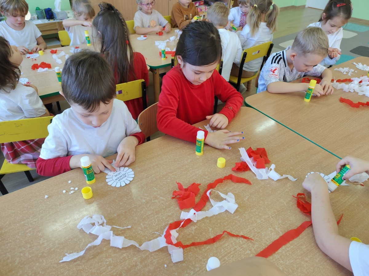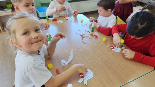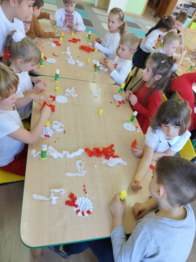 W piątek, 7 listopada, przygotowaliśmy kotyliony, które wykorzystaliśmy do przedszkolnych obchodów Święta Niepodległości.