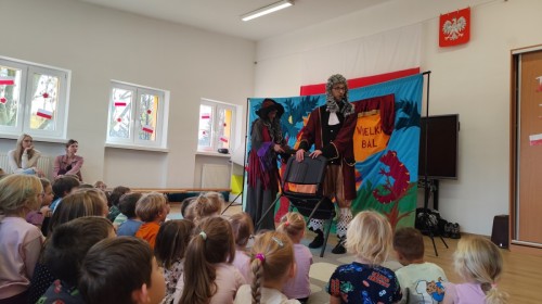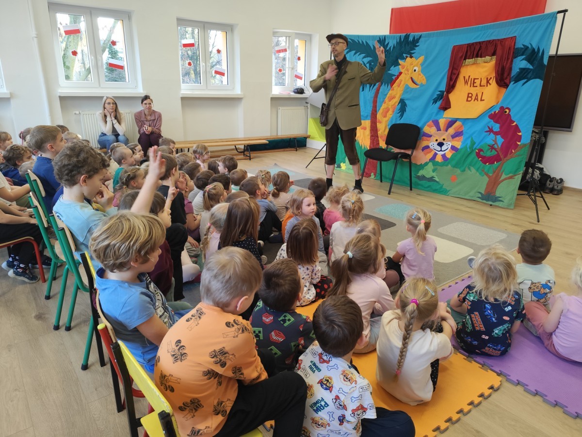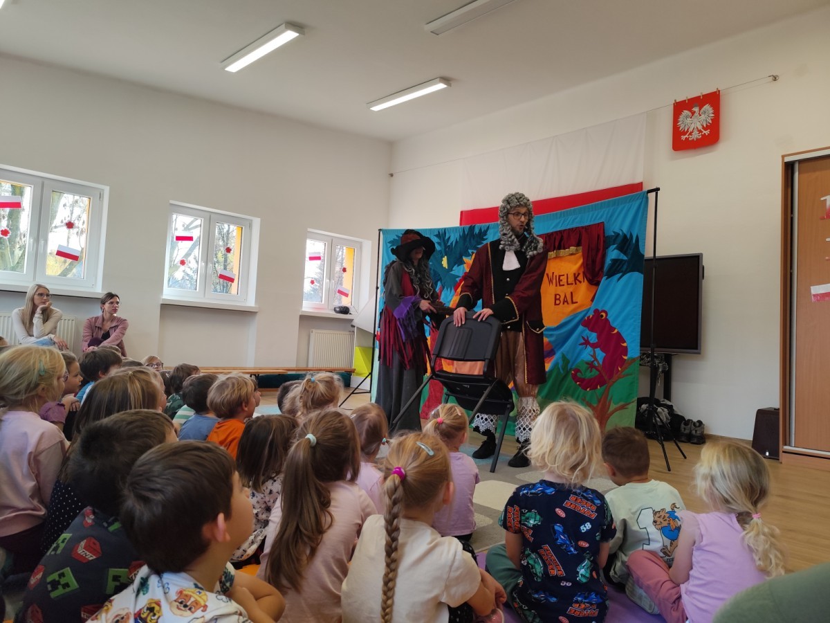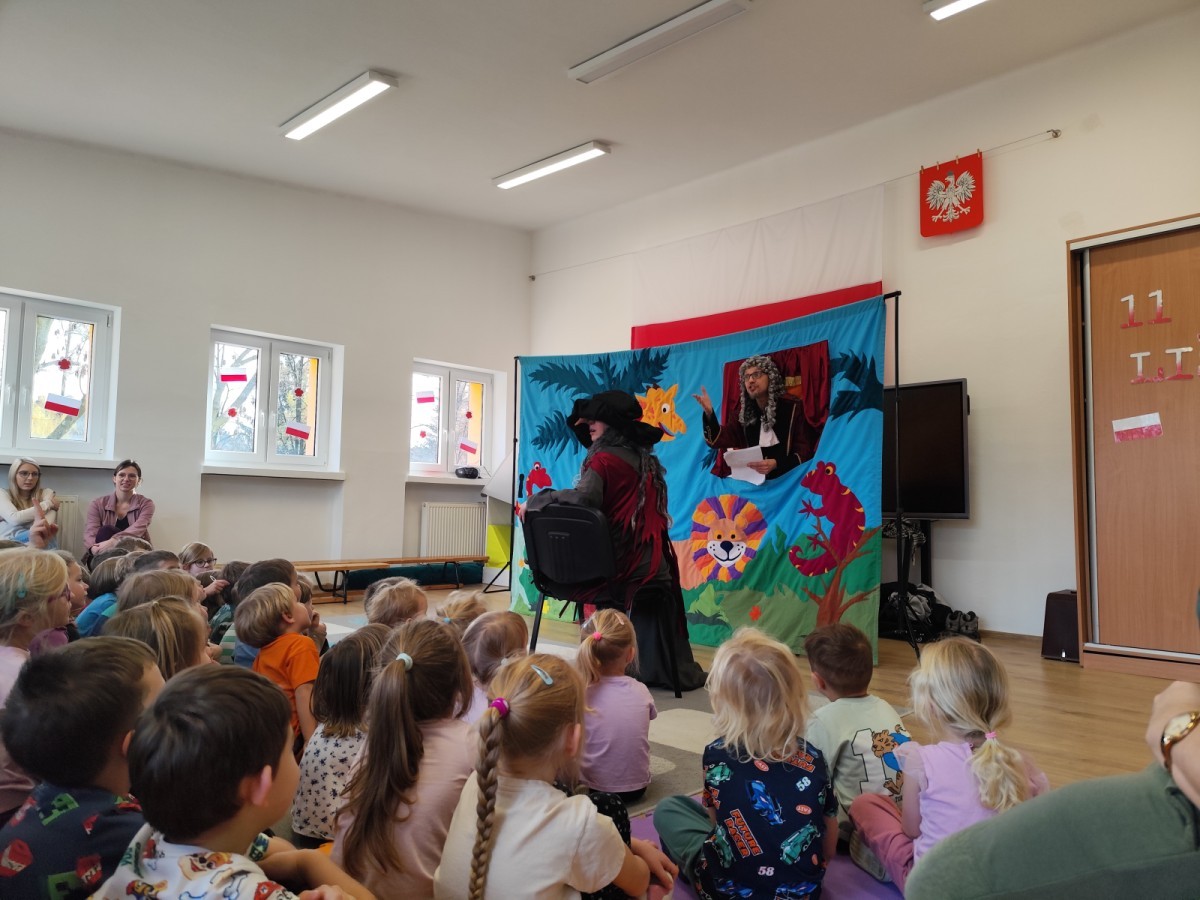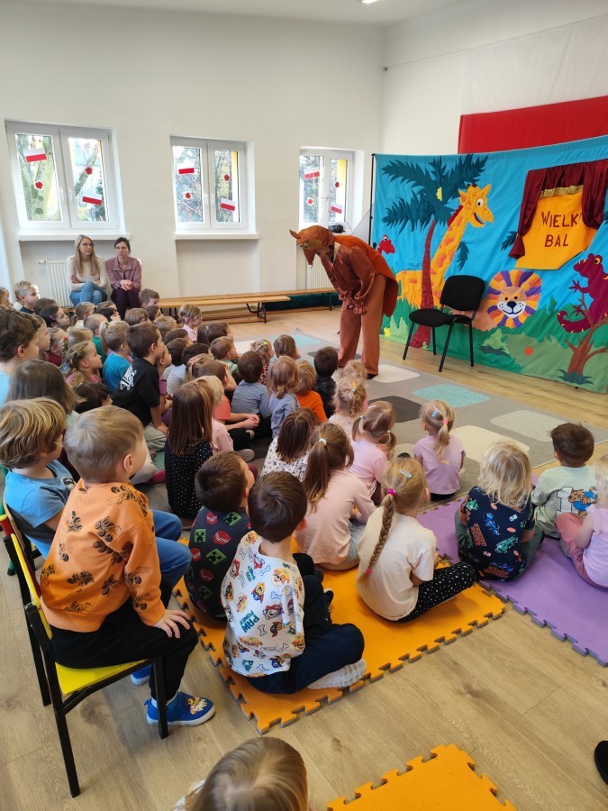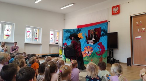 W środę, 12 listopada nasze przedszkole odwiedził teatrzyk z przedstawieniem, w którym leśniczy i czarownica przypomnieli dzieciom jak należy zachowywać się w teatrze.