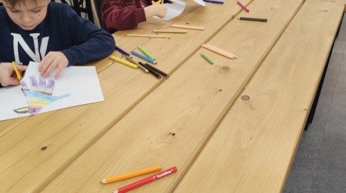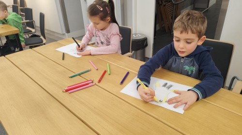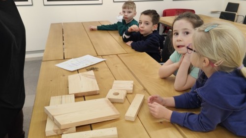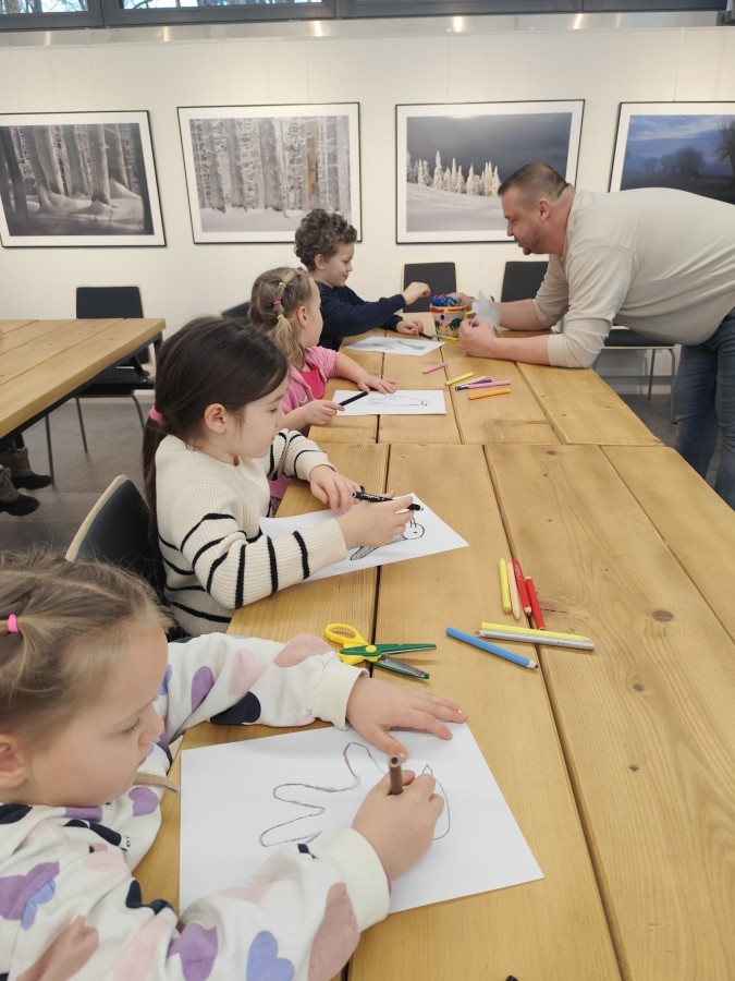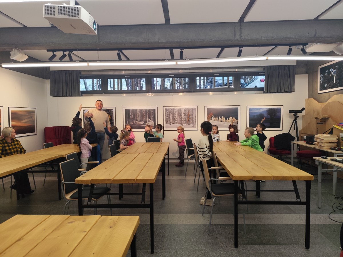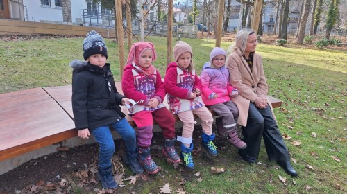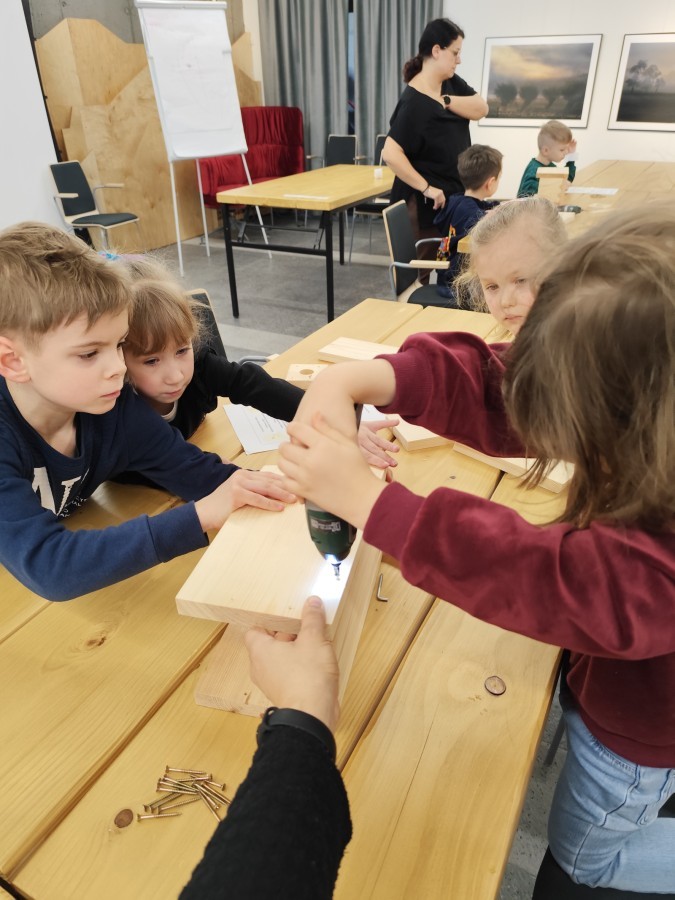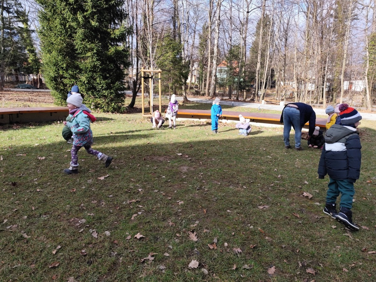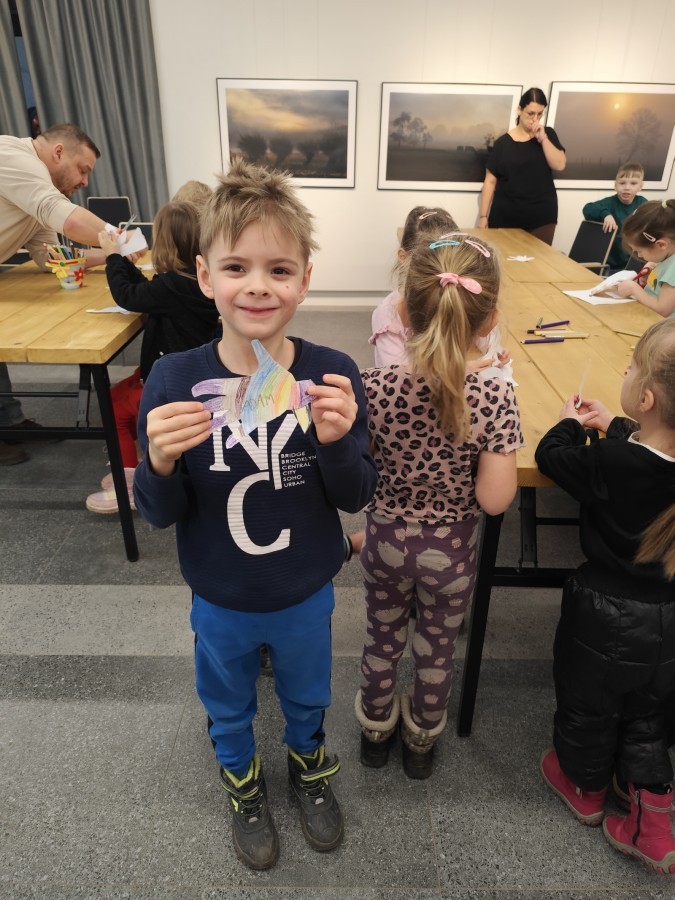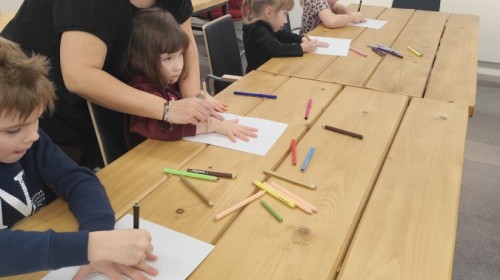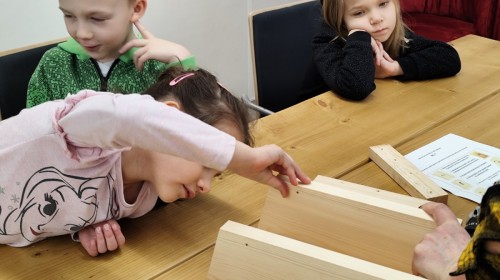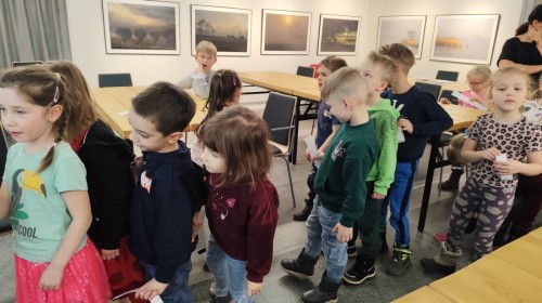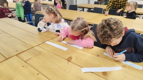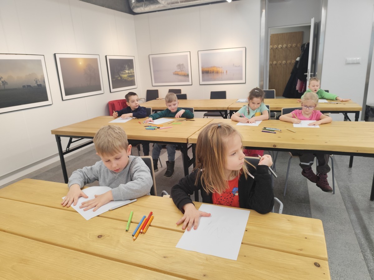 Podczas wizyty wyszliśmy również do ogrodu znajdującego się obok Centrum, gdzie dzieci — przy pomocy lornetek — mogły obserwować ptaki przelatujące między drzewami. Przedszkolaki wykonały papierowe ptaszki, dowiedziały się, na czym polega obrączkowanie ptaków, a także stworzyły własne „obrączki” na rękę lub nogę.