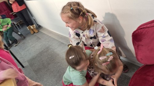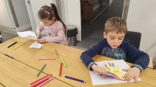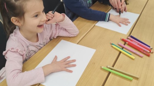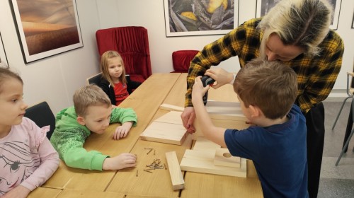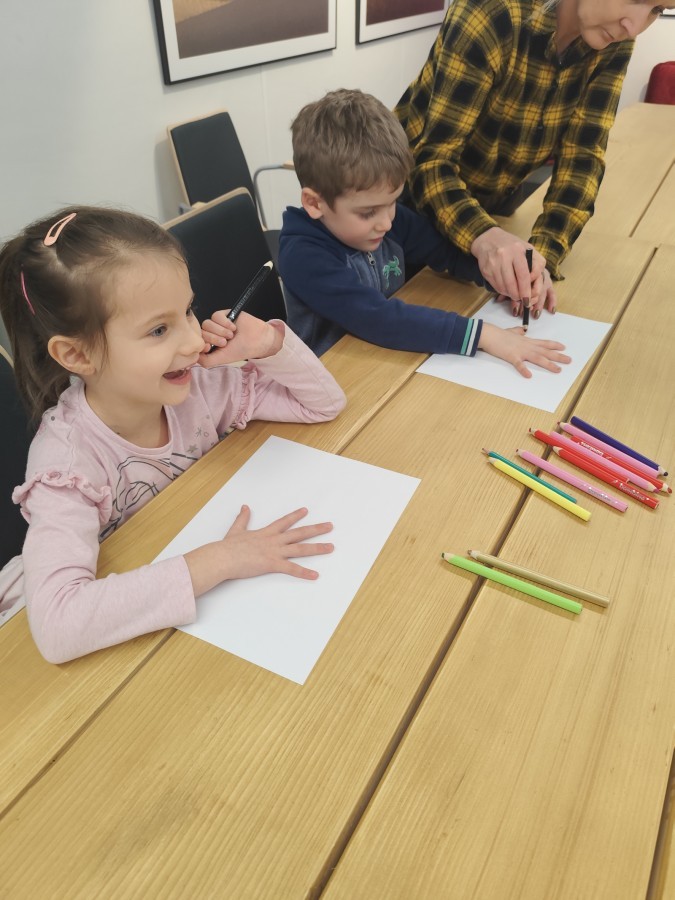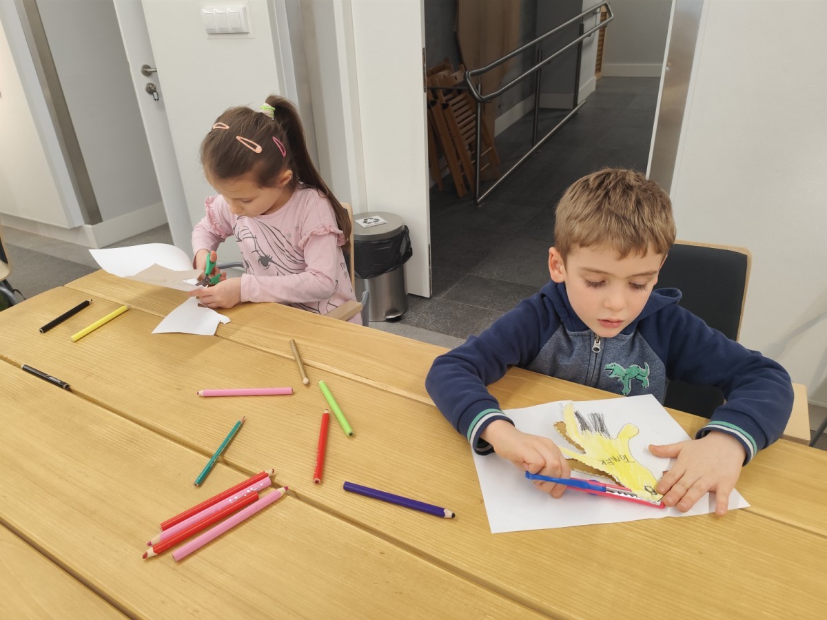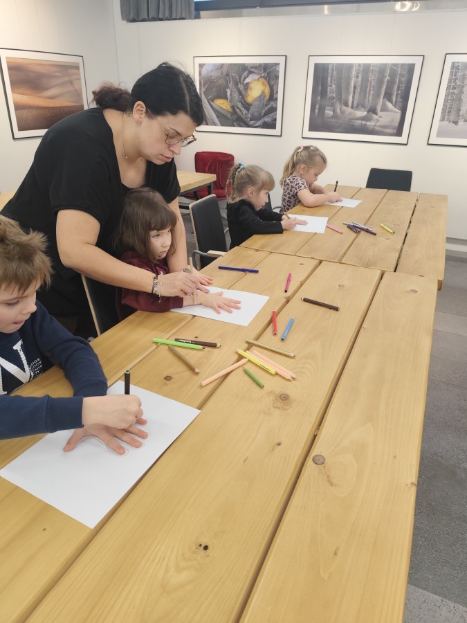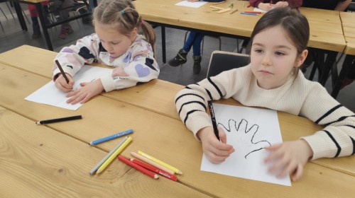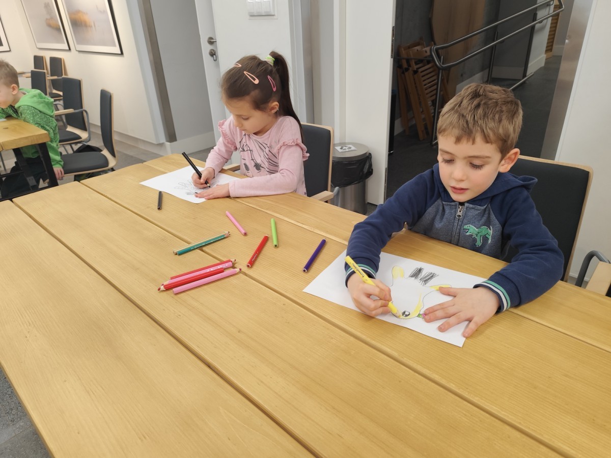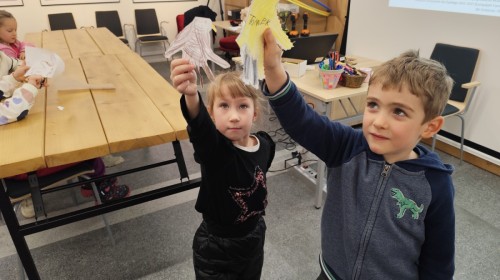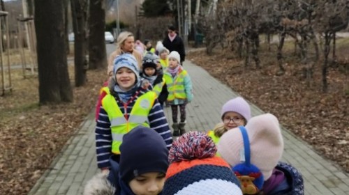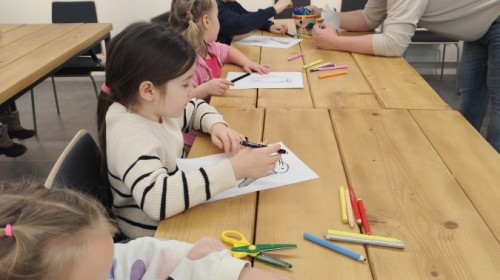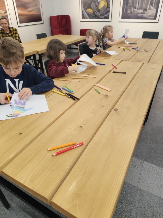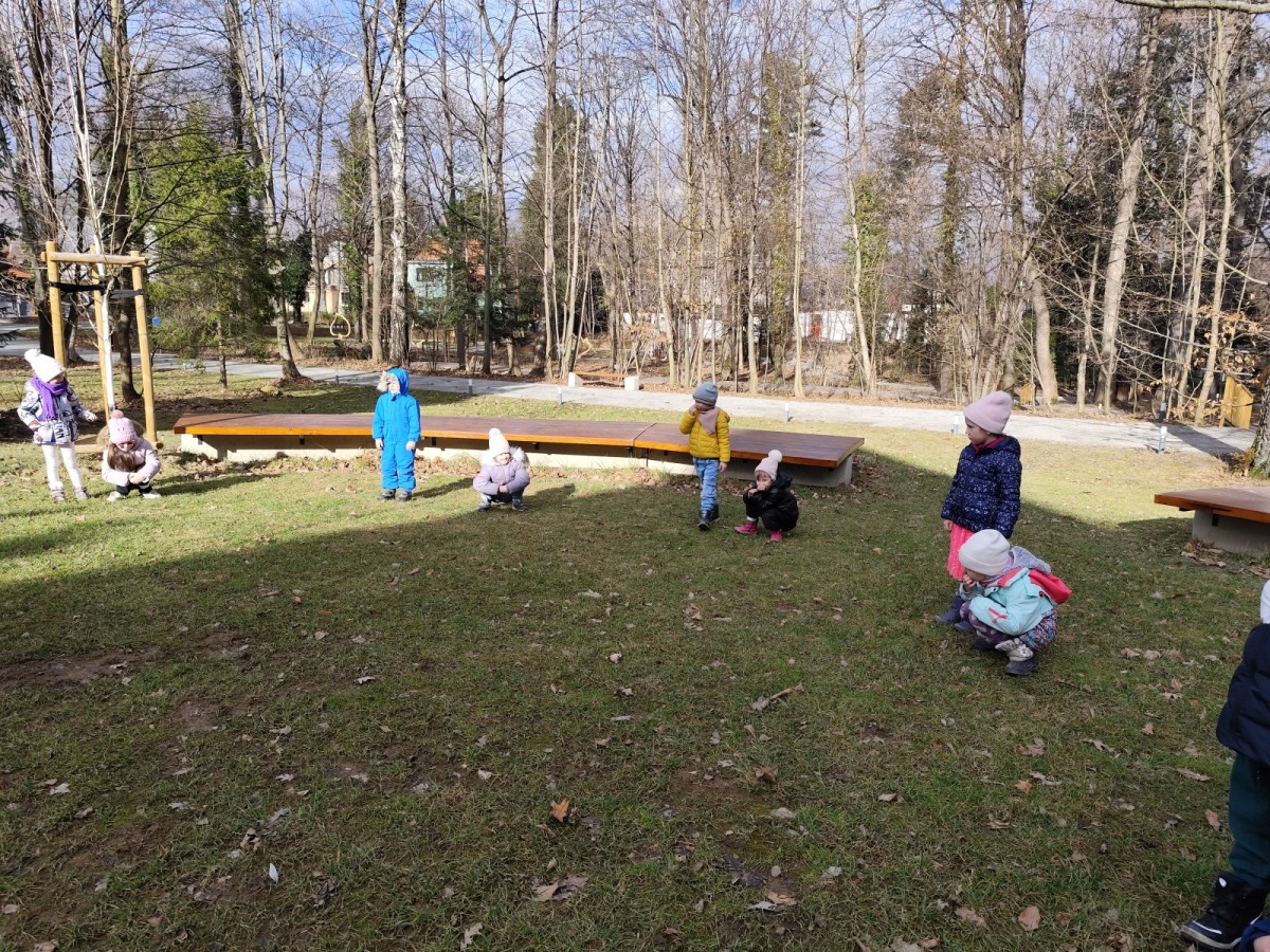 Podczas wizyty wyszliśmy również do ogrodu znajdującego się obok Centrum, gdzie dzieci — przy pomocy lornetek — mogły obserwować ptaki przelatujące między drzewami. Przedszkolaki wykonały papierowe ptaszki, dowiedziały się, na czym polega obrączkowanie ptaków, a także stworzyły własne „obrączki” na rękę lub nogę.