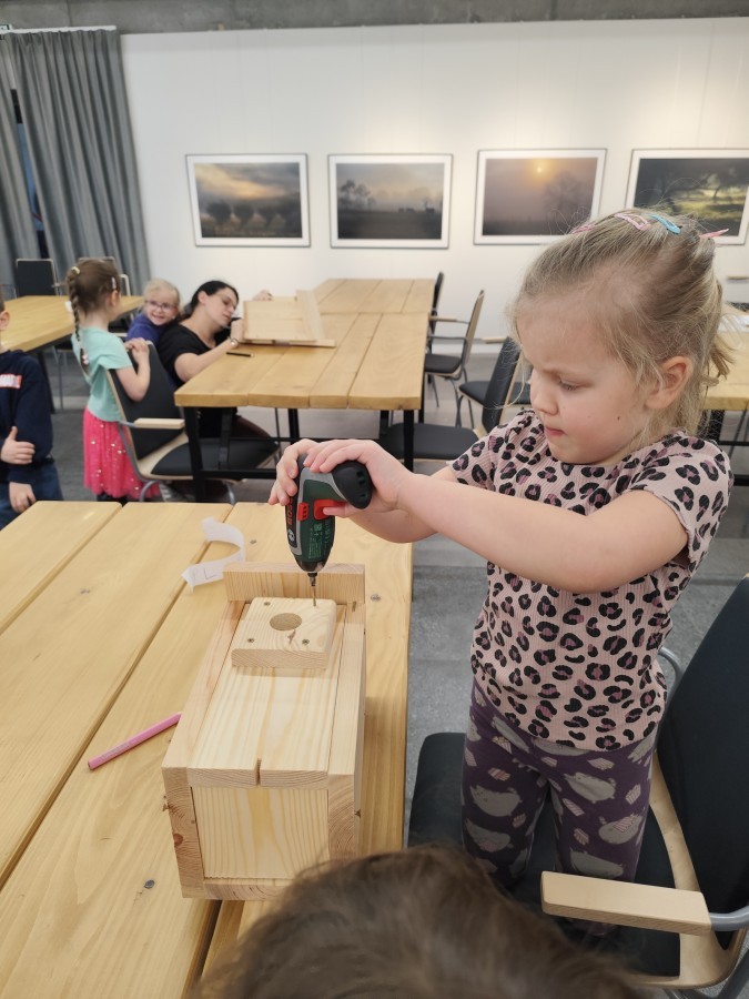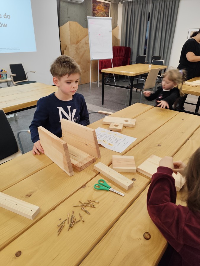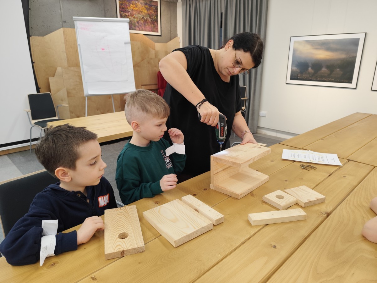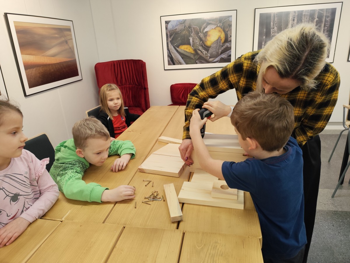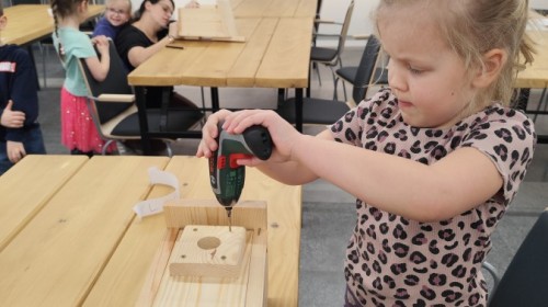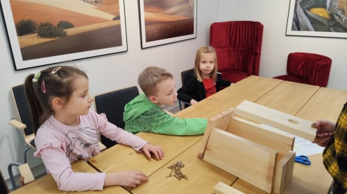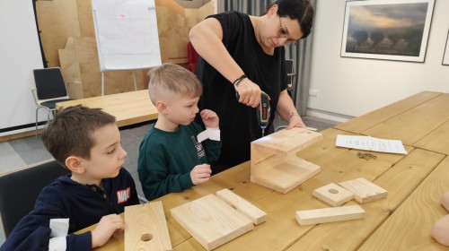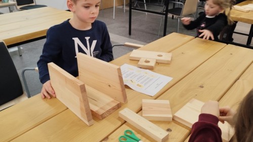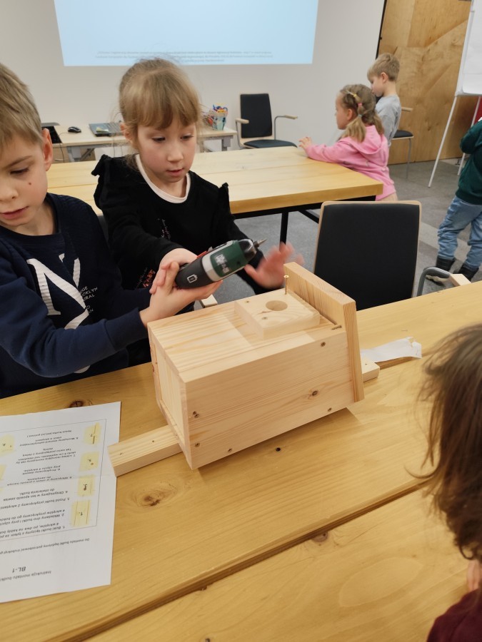Na zakończenie warsztatów dzieci w grupach przygotowały piękne budki dla ptaków. Zabraliśmy je do przedszkola i już wkrótce zawisną na drzewach w naszym ogrodzie.