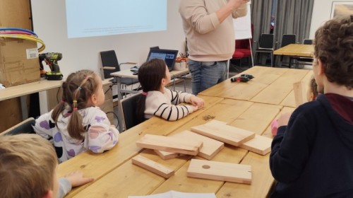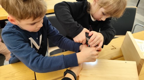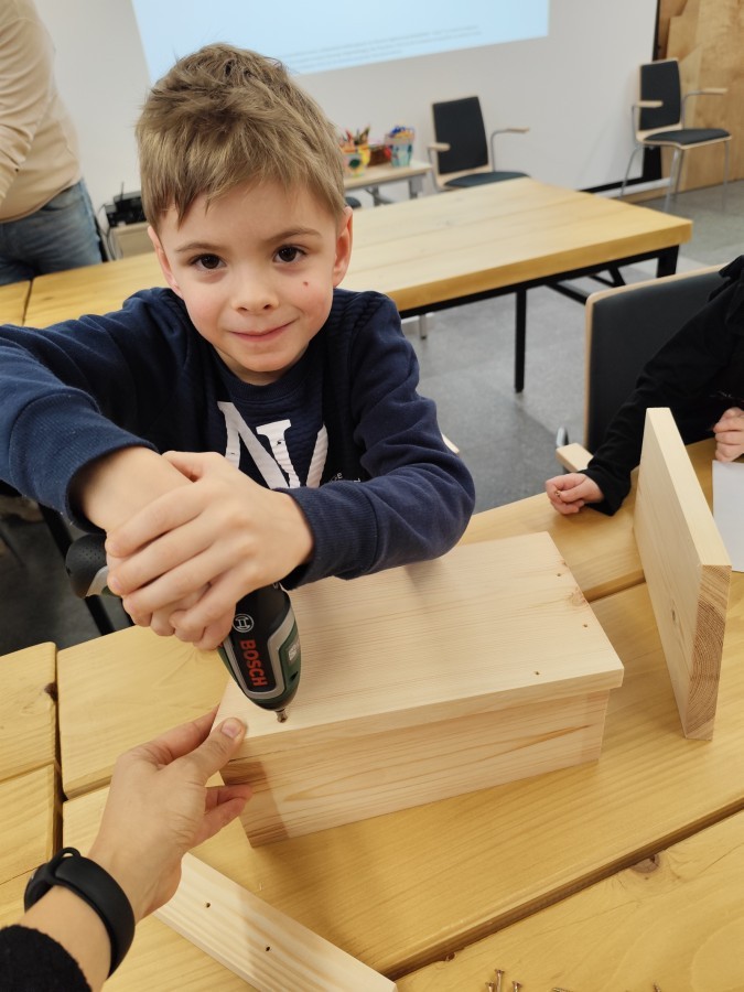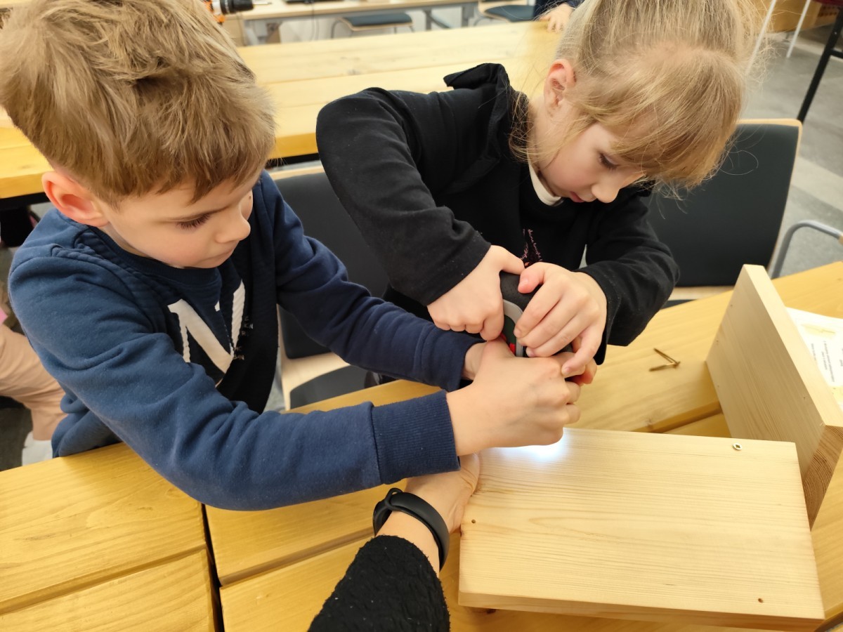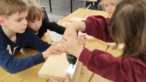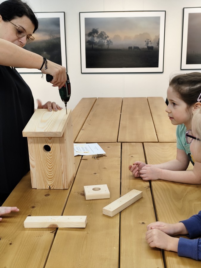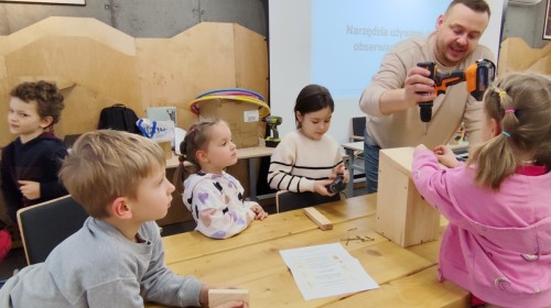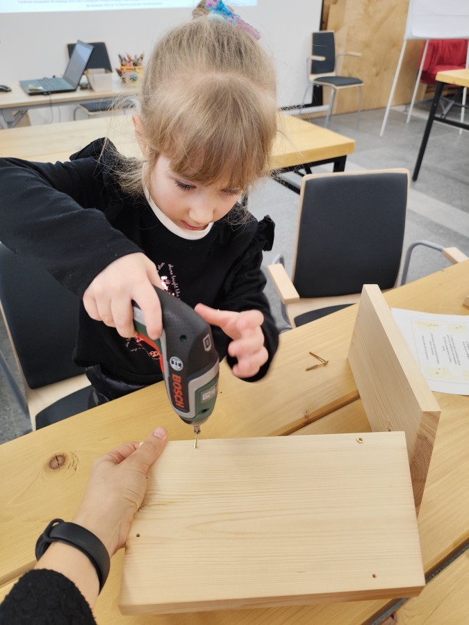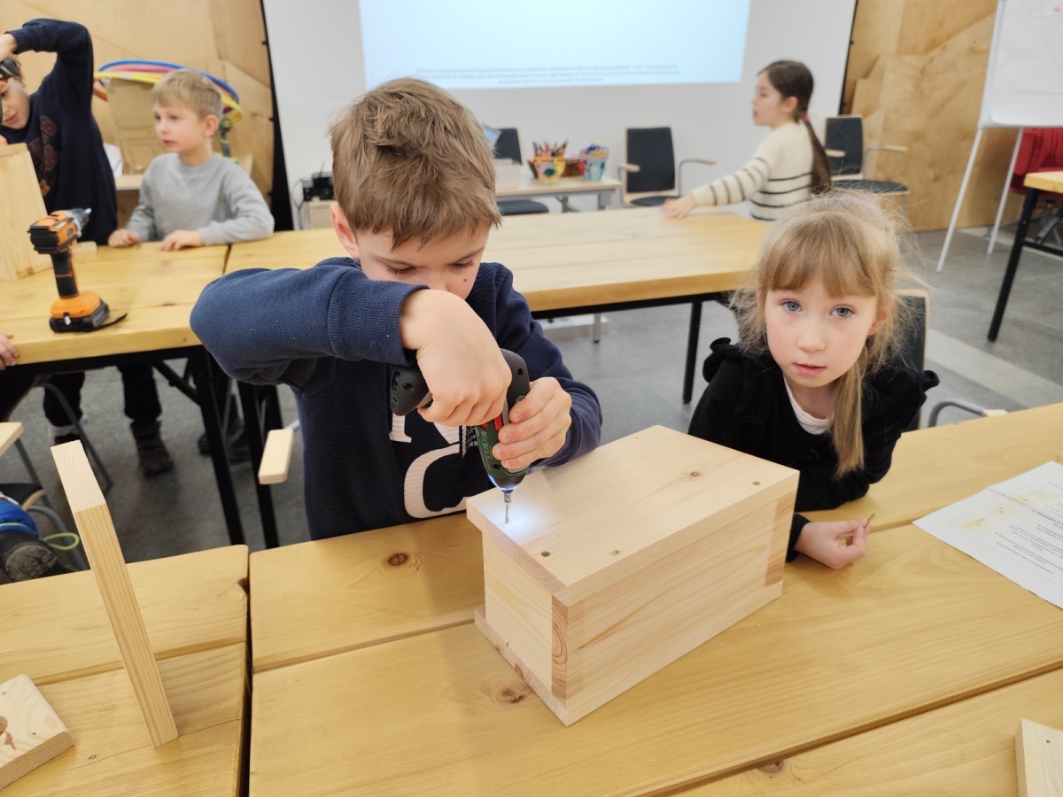 Na zakończenie warsztatów dzieci w grupach przygotowały piękne budki dla ptaków. Zabraliśmy je do przedszkola i już wkrótce zawisną na drzewach w naszym ogrodzie.