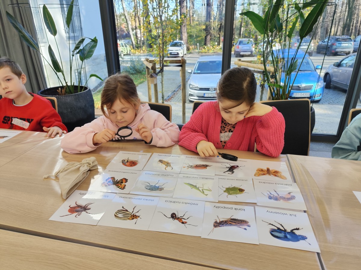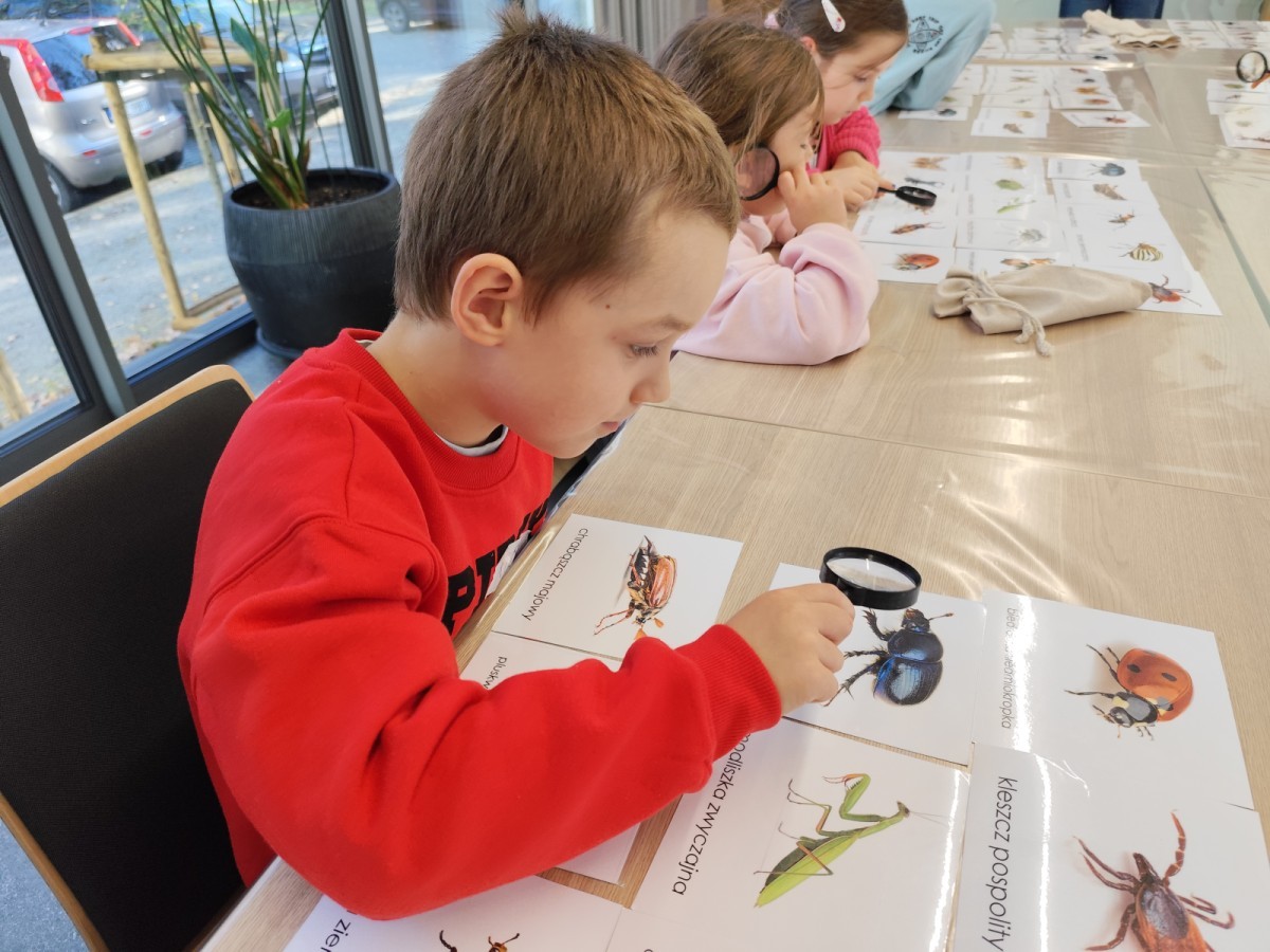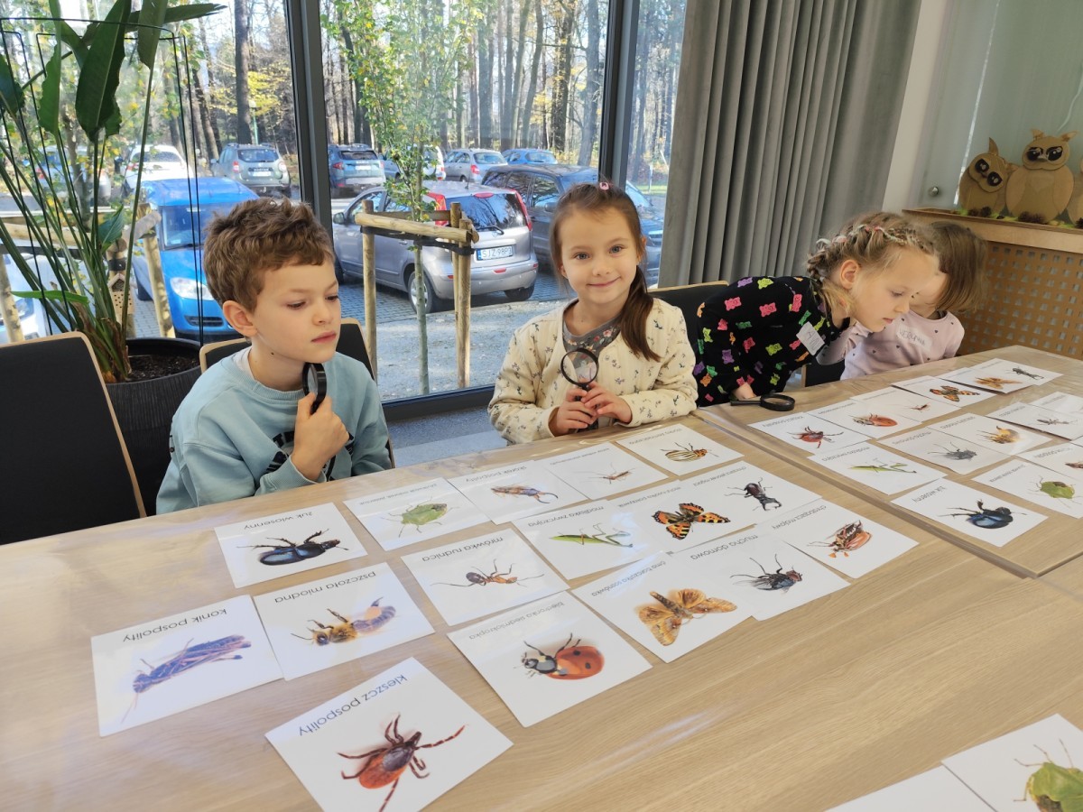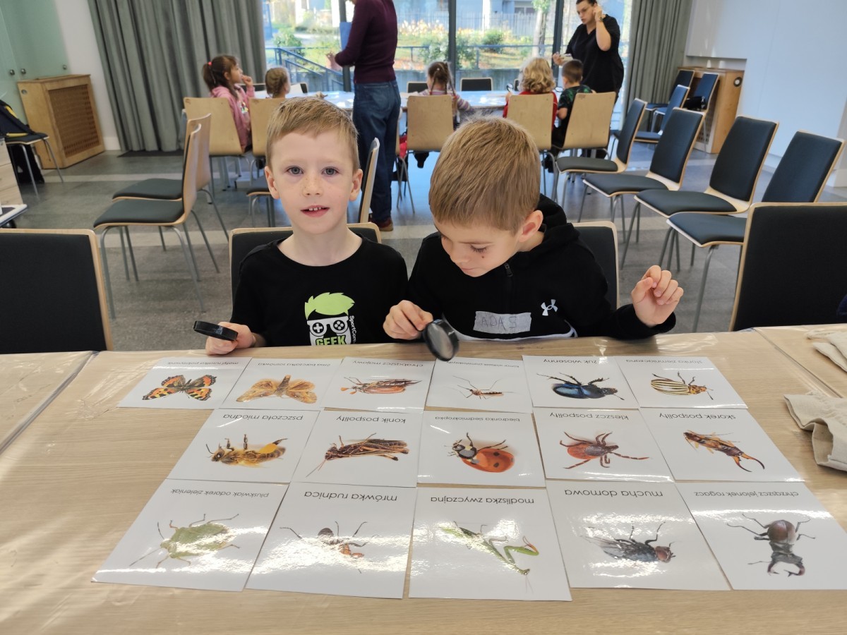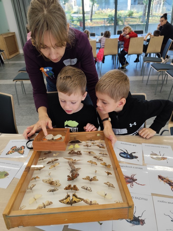 Na warsztatach poznaliśmy owady, które żyją wśród nas, oglądaliśmy eksponaty przez szkła powiększające, poznaliśmy cykl życiowy motyla a także wykonaliśmy swoje owady z piankoliny.