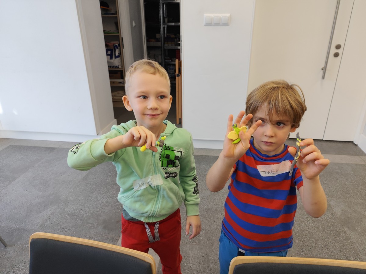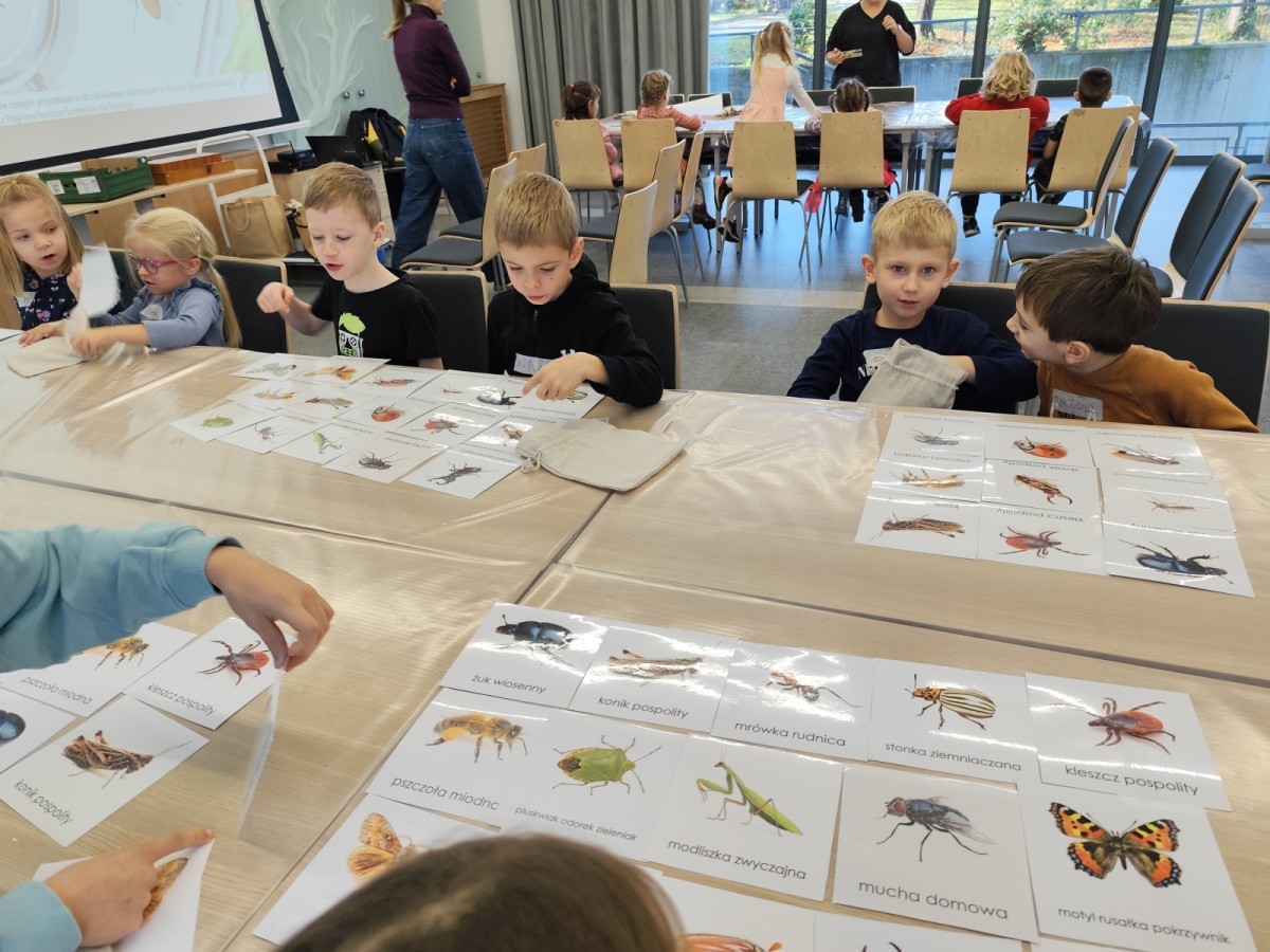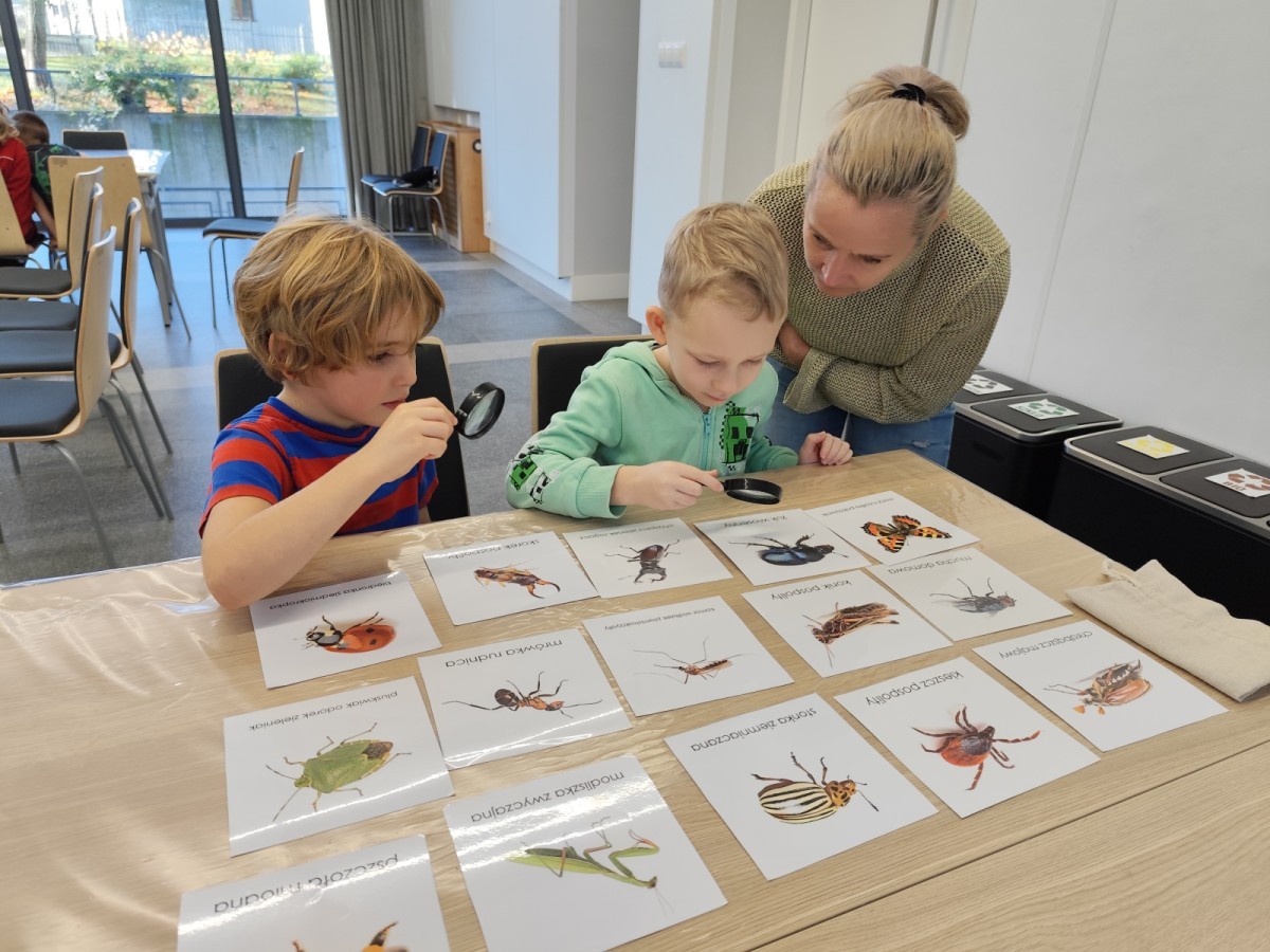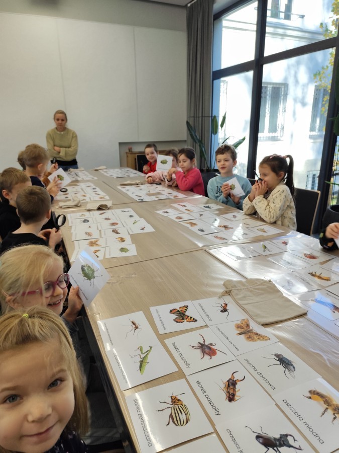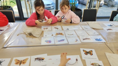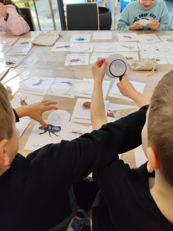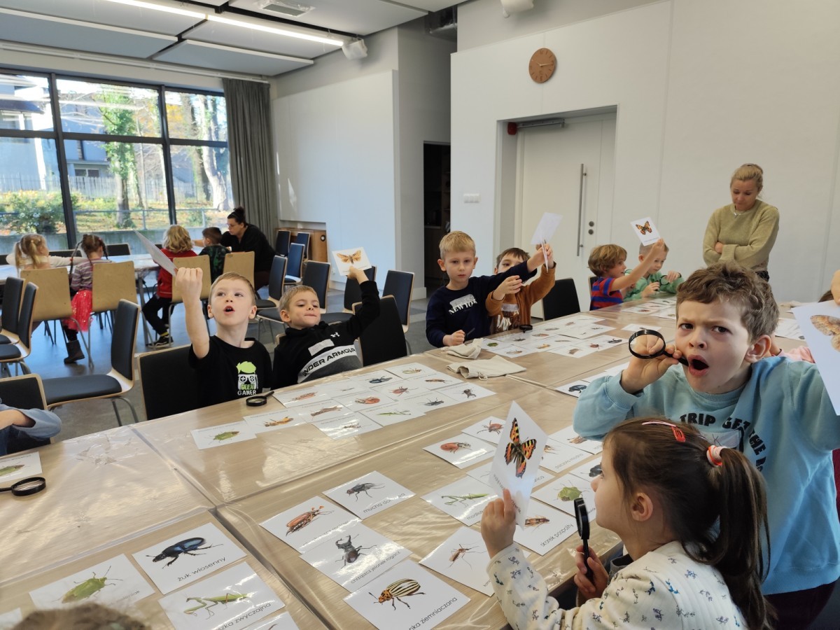 Na warsztatach poznaliśmy owady, które żyją wśród nas, oglądaliśmy eksponaty przez szkła powiększające, poznaliśmy cykl życiowy motyla a także wykonaliśmy swoje owady z piankoliny.