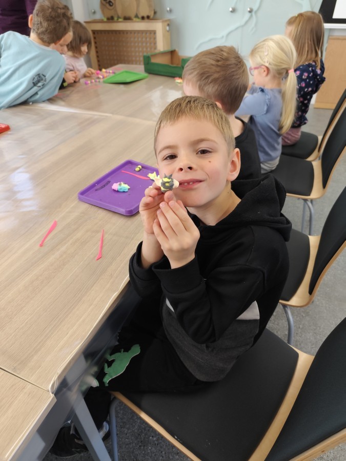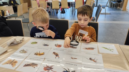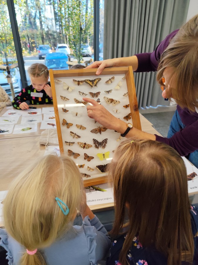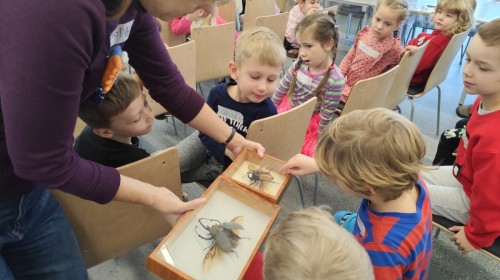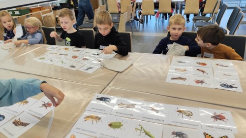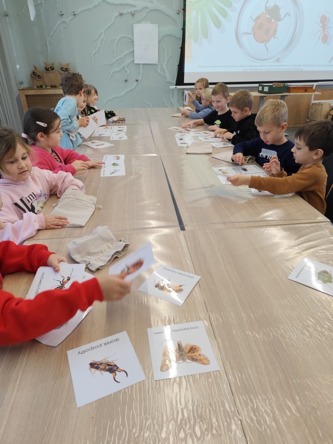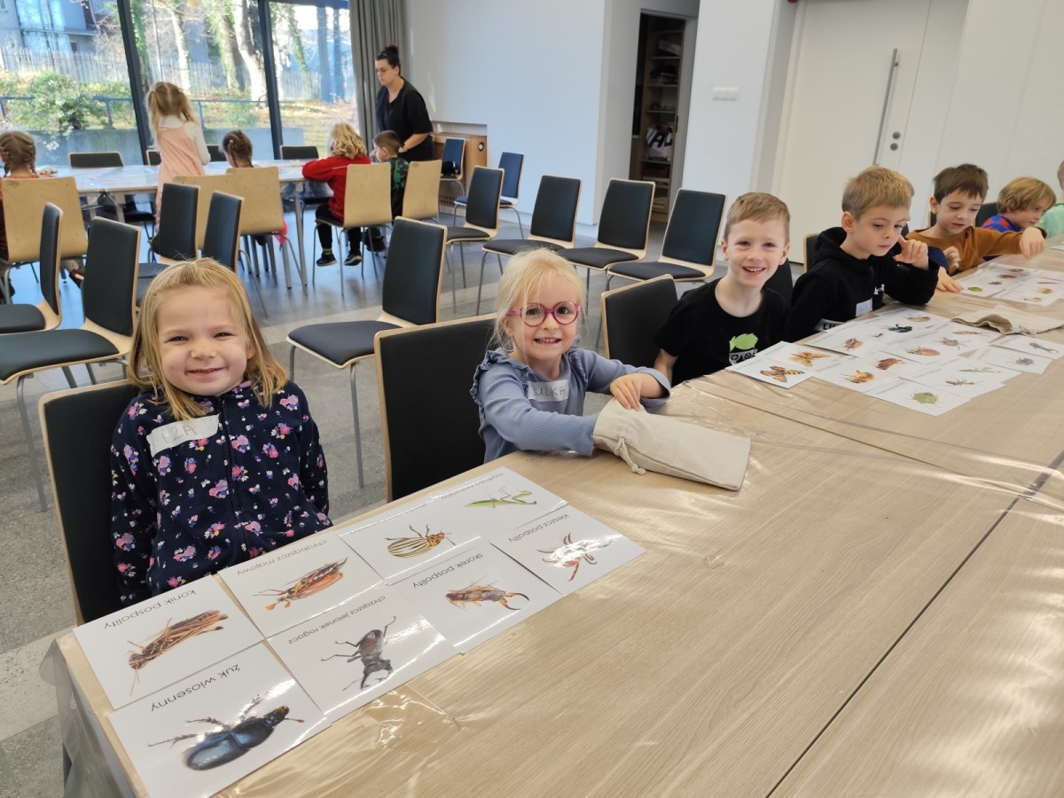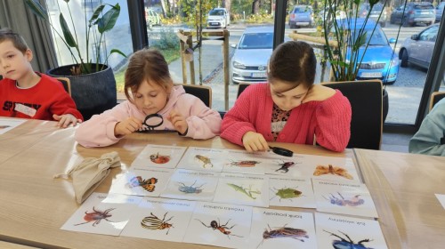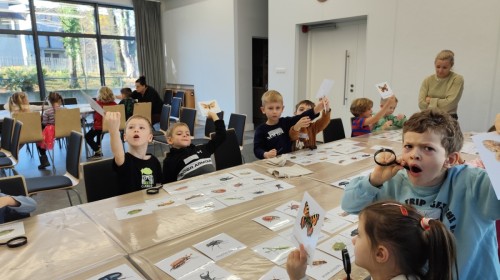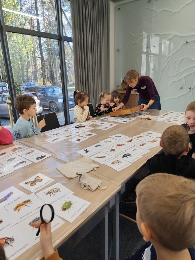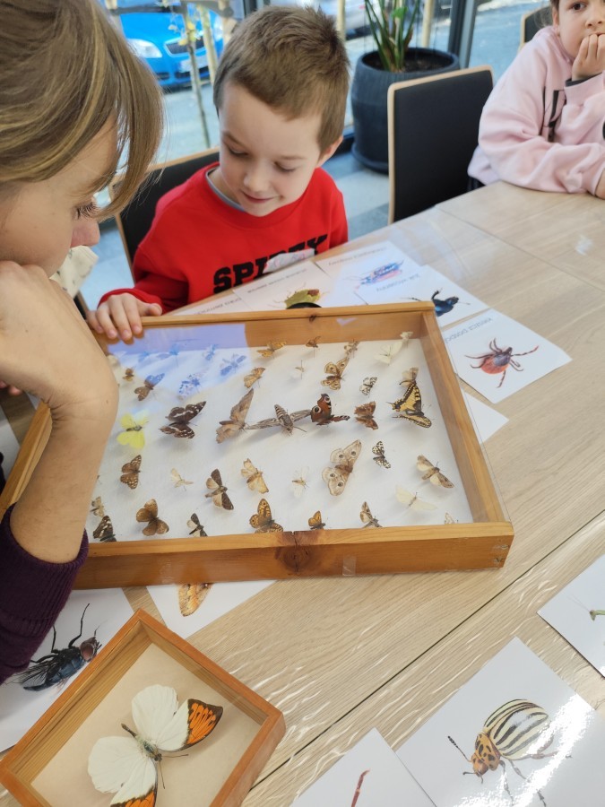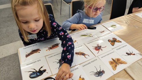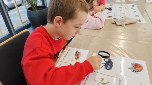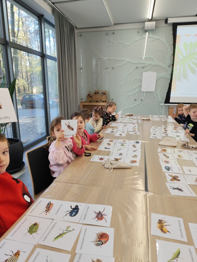 Na warsztatach poznaliśmy owady, które żyją wśród nas, oglądaliśmy eksponaty przez szkła powiększające, poznaliśmy cykl życiowy motyla a także wykonaliśmy swoje owady z piankoliny.