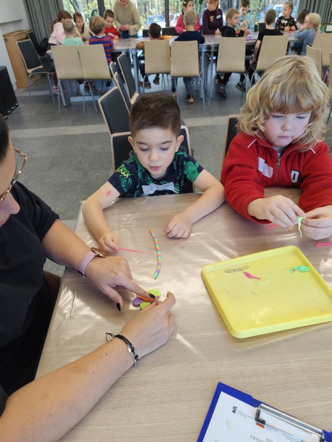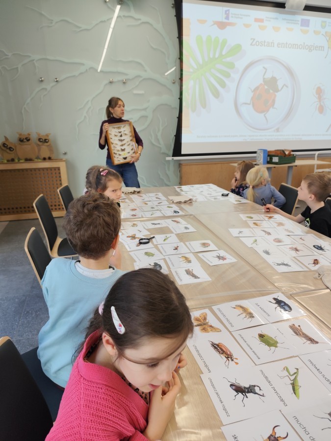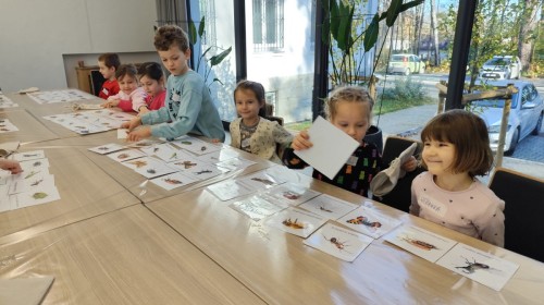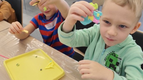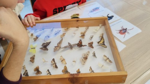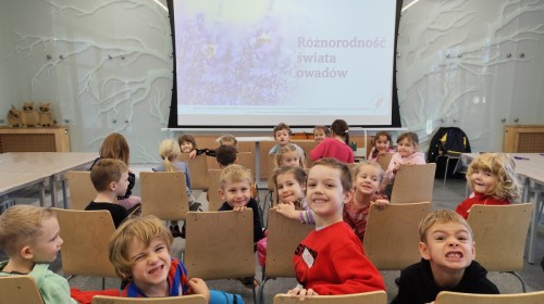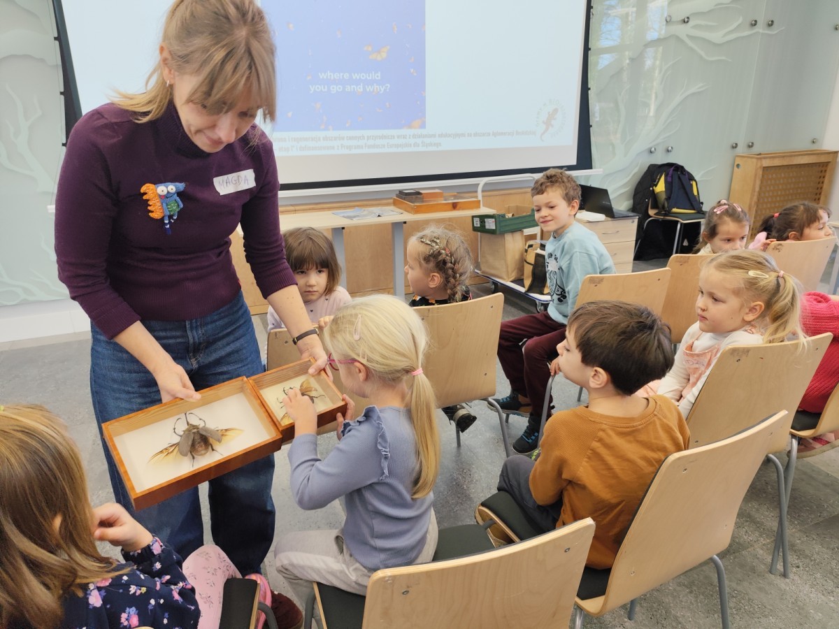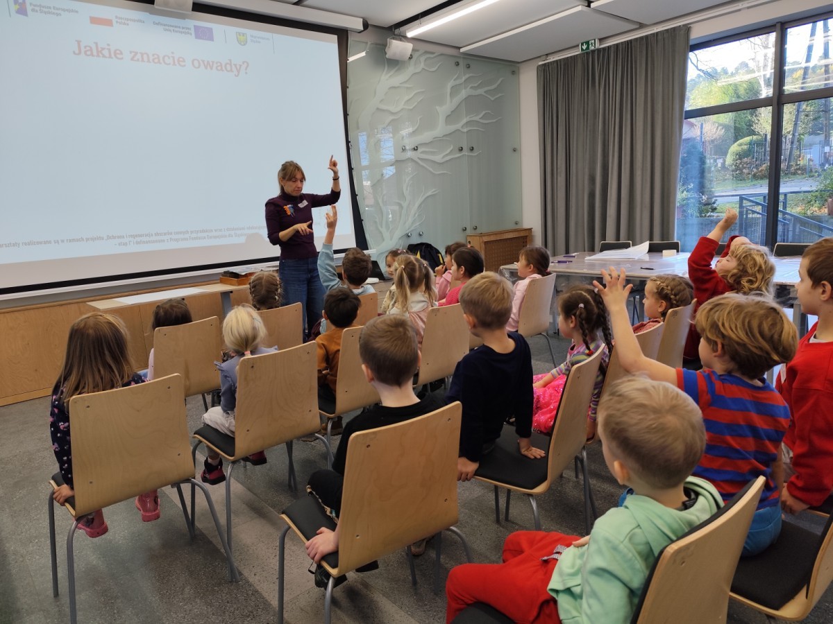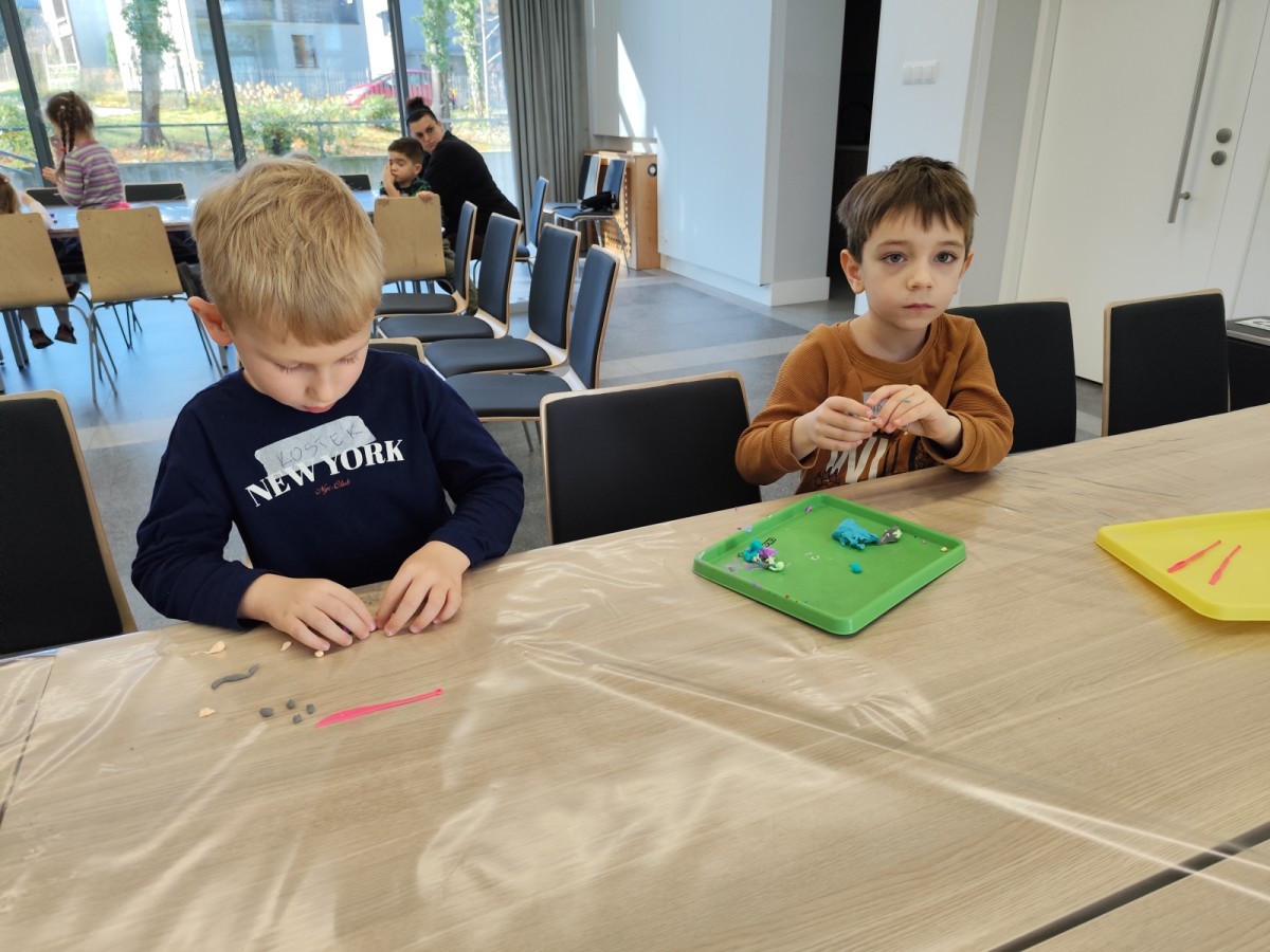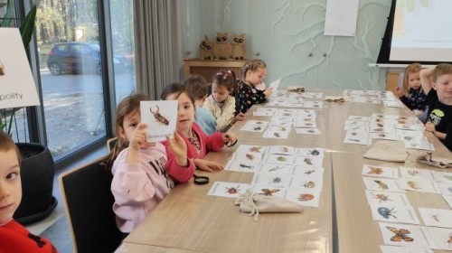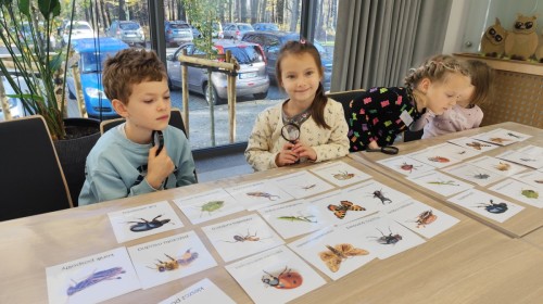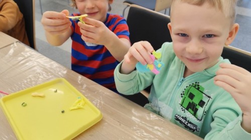Na warsztatach poznaliśmy owady, które żyją wśród nas, oglądaliśmy eksponaty przez szkła powiększające, poznaliśmy cykl życiowy motyla a także wykonaliśmy swoje owady z piankoliny.