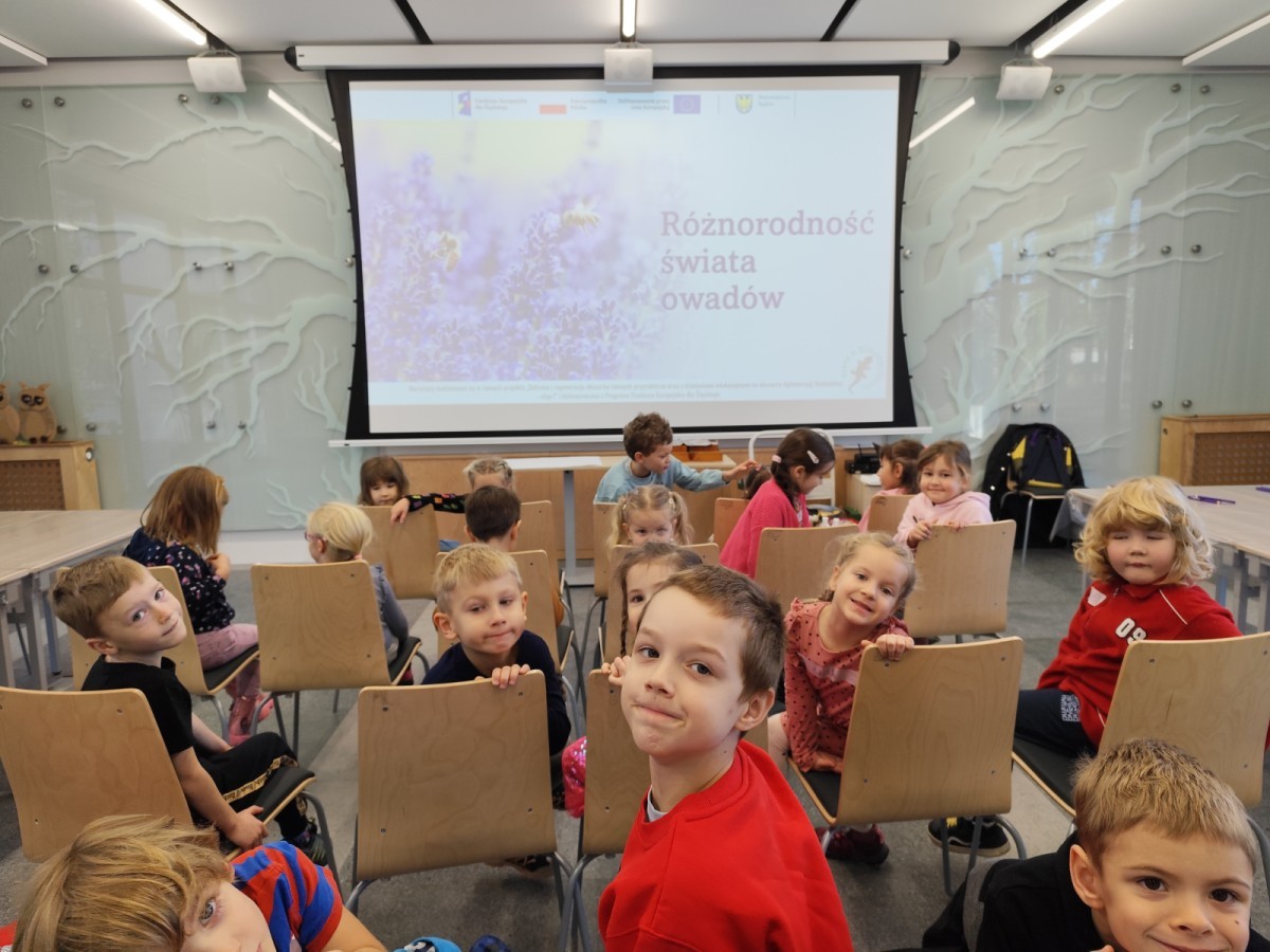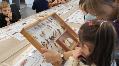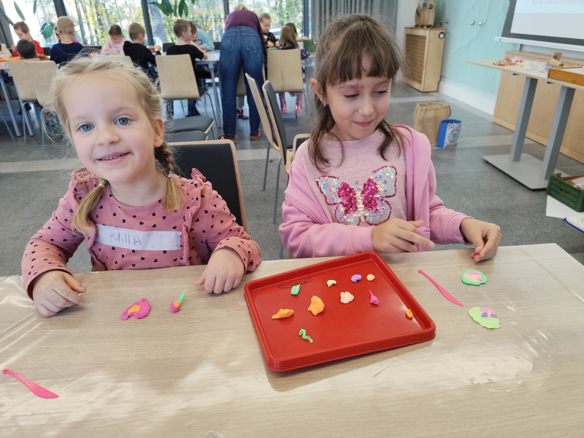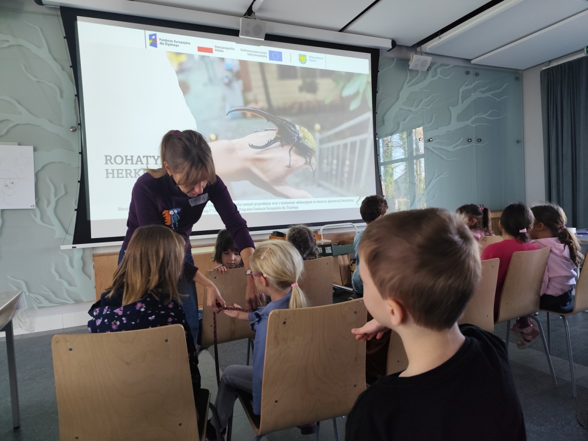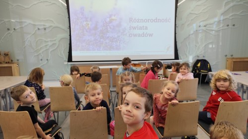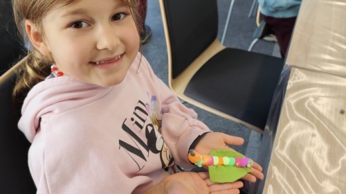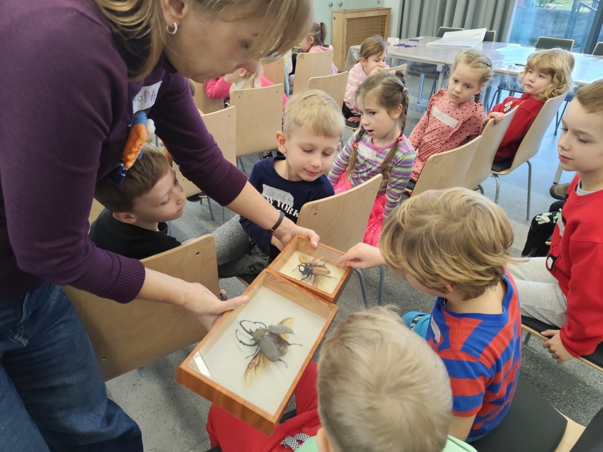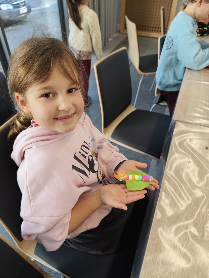Na warsztatach poznaliśmy owady, które żyją wśród nas, oglądaliśmy eksponaty przez szkła powiększające, poznaliśmy cykl życiowy motyla a także wykonaliśmy swoje owady z piankoliny.