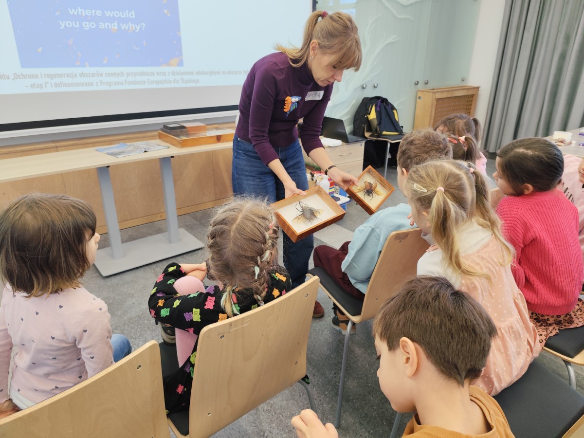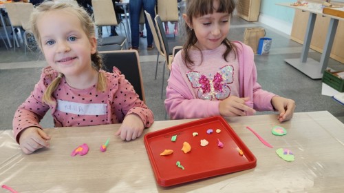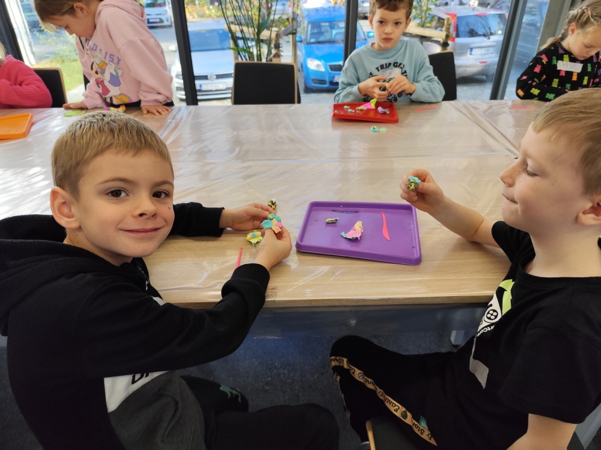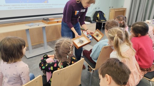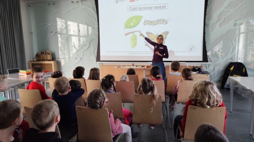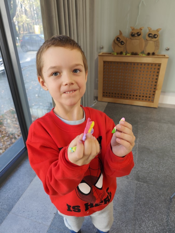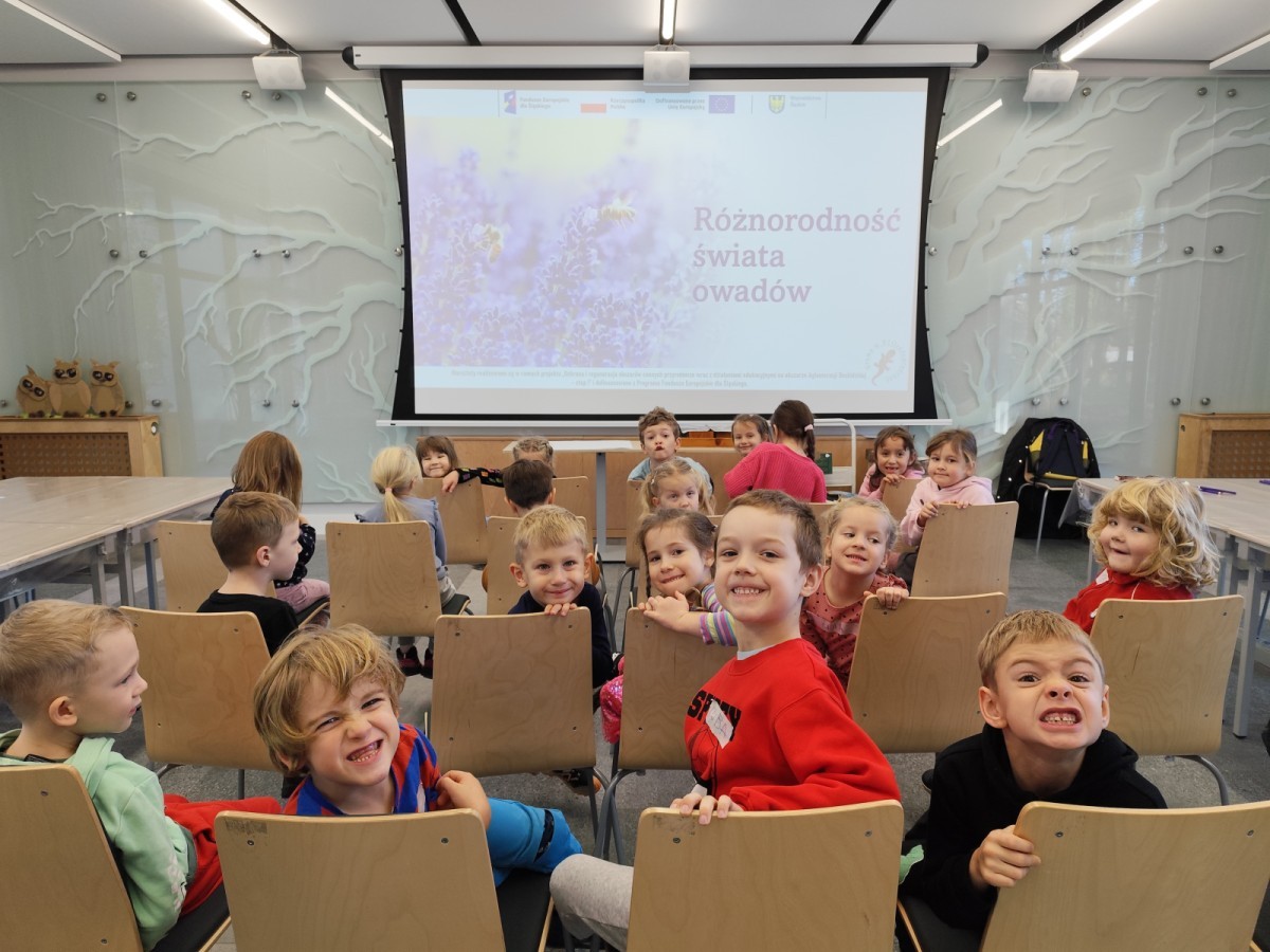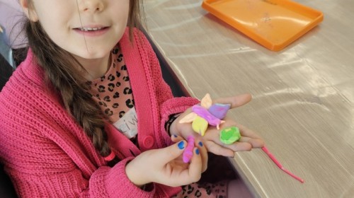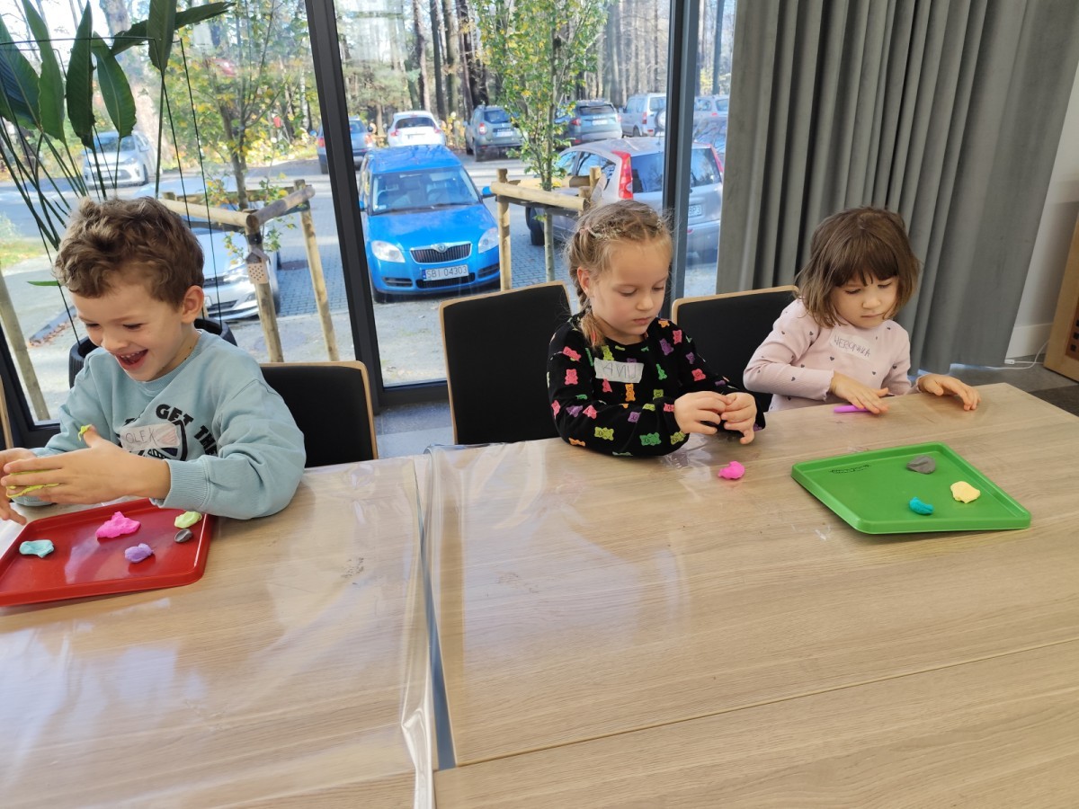 Na warsztatach poznaliśmy owady, które żyją wśród nas, oglądaliśmy eksponaty przez szkła powiększające, poznaliśmy cykl życiowy motyla a także wykonaliśmy swoje owady z piankoliny.