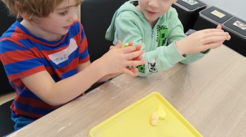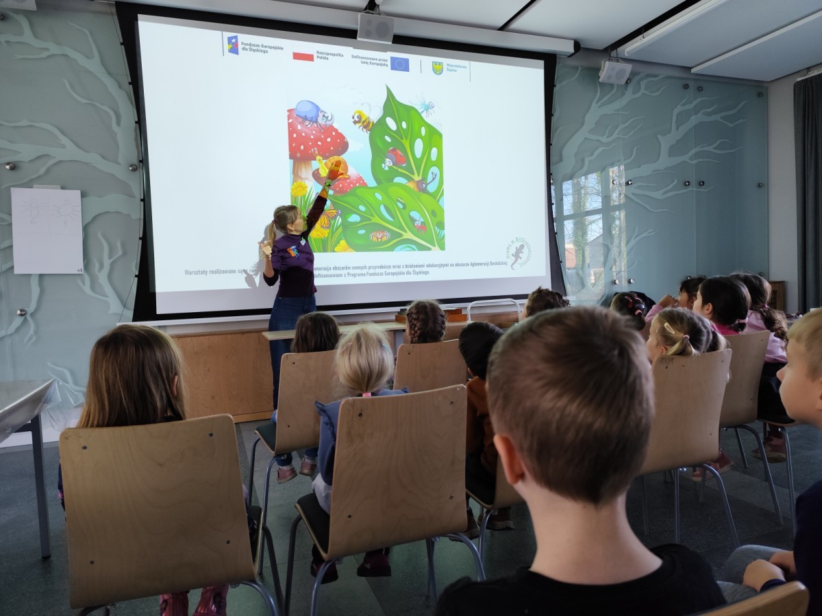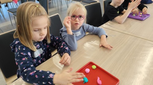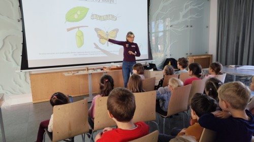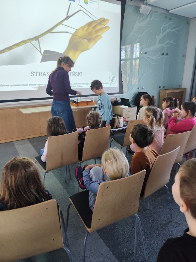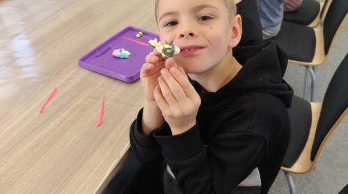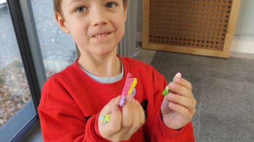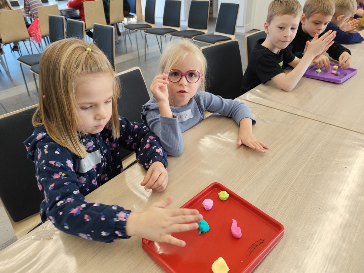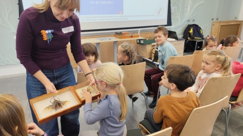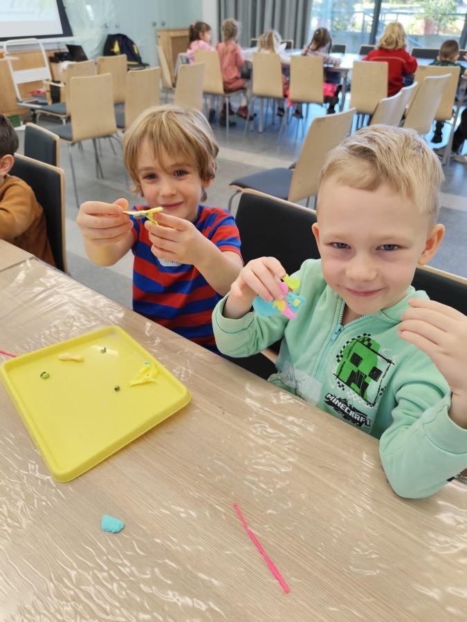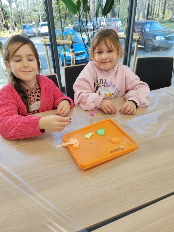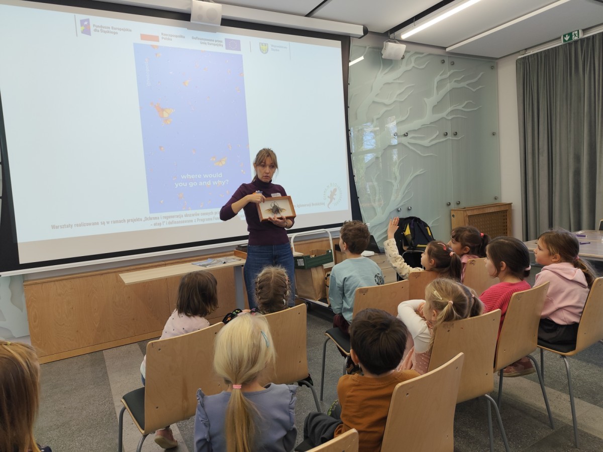 Na warsztatach poznaliśmy owady, które żyją wśród nas, oglądaliśmy eksponaty przez szkła powiększające, poznaliśmy cykl życiowy motyla a także wykonaliśmy swoje owady z piankoliny.