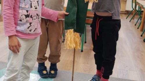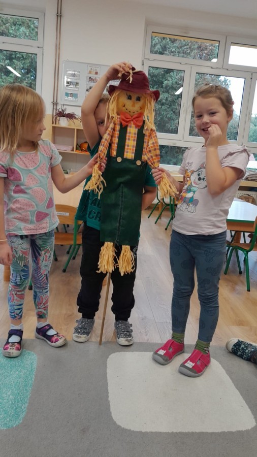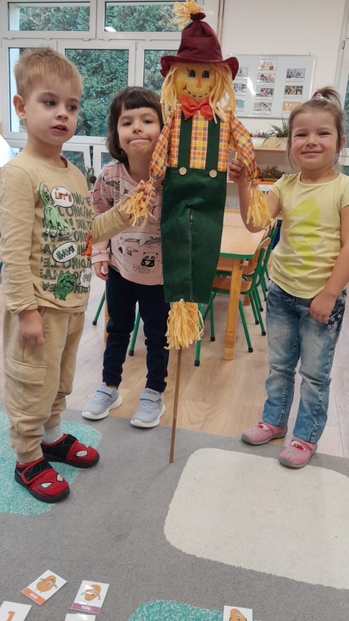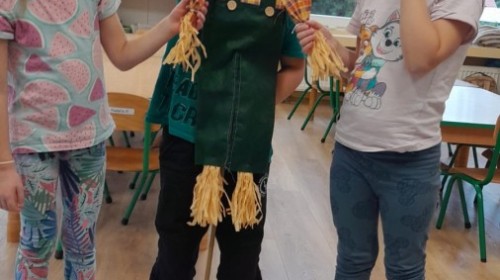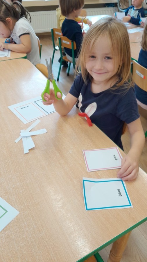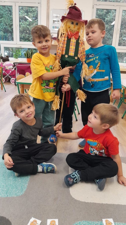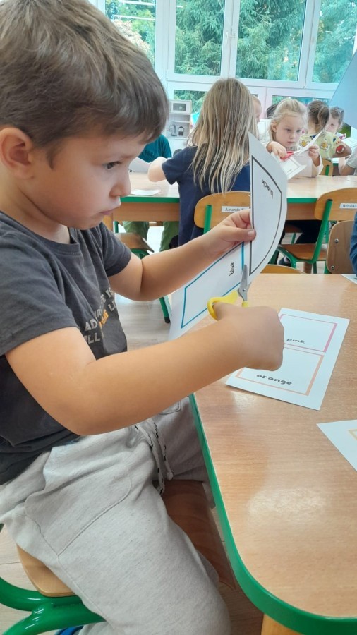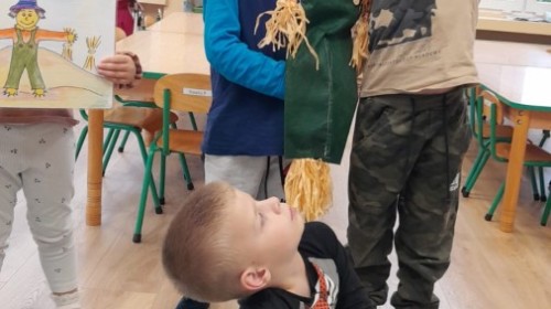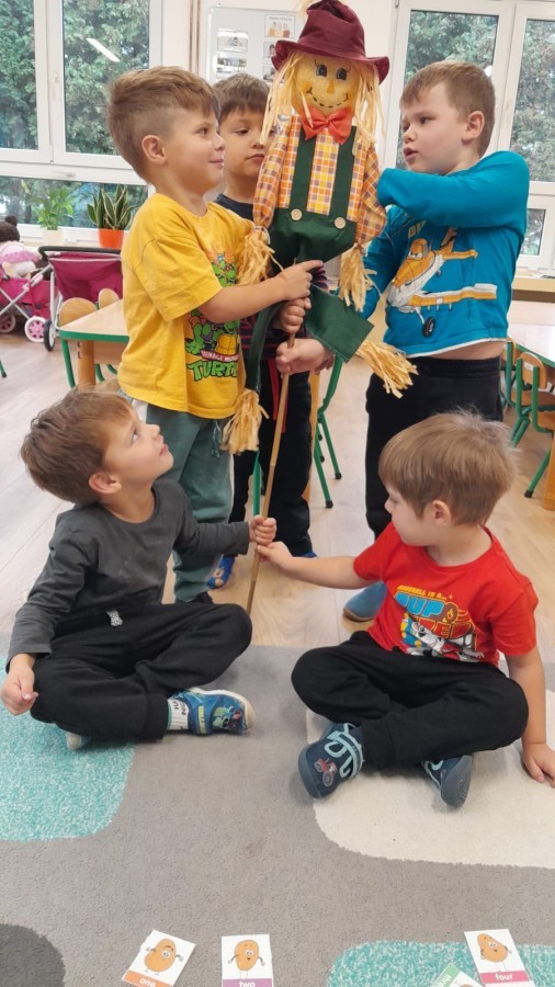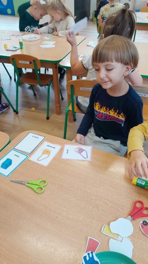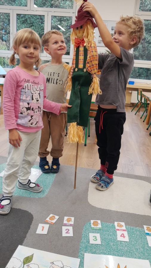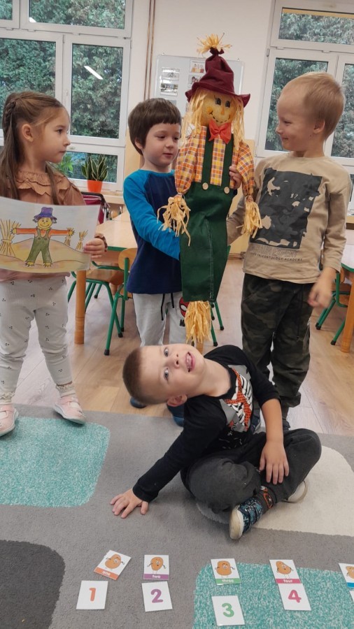 Dzieci z Grupy II wykonały zadanie z Projektu Edukacyjnego "Angielski jest FUN-tastyczny" - wykonały karty obrazkowe z kolorami, następnie bawiły się z kukiełką stracha na wróble.