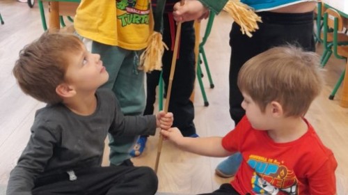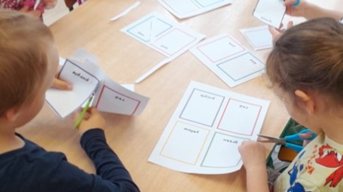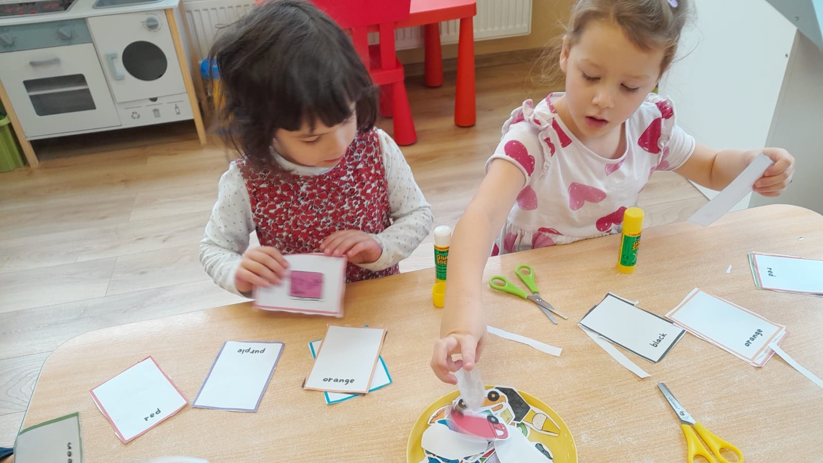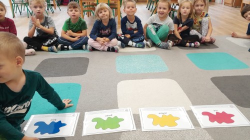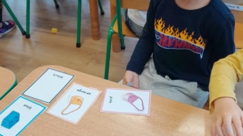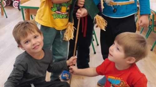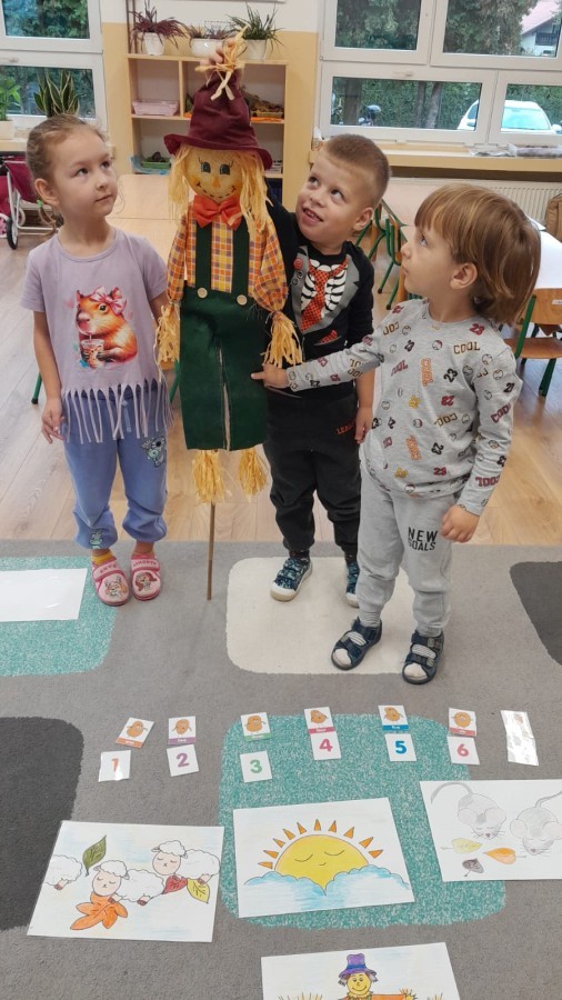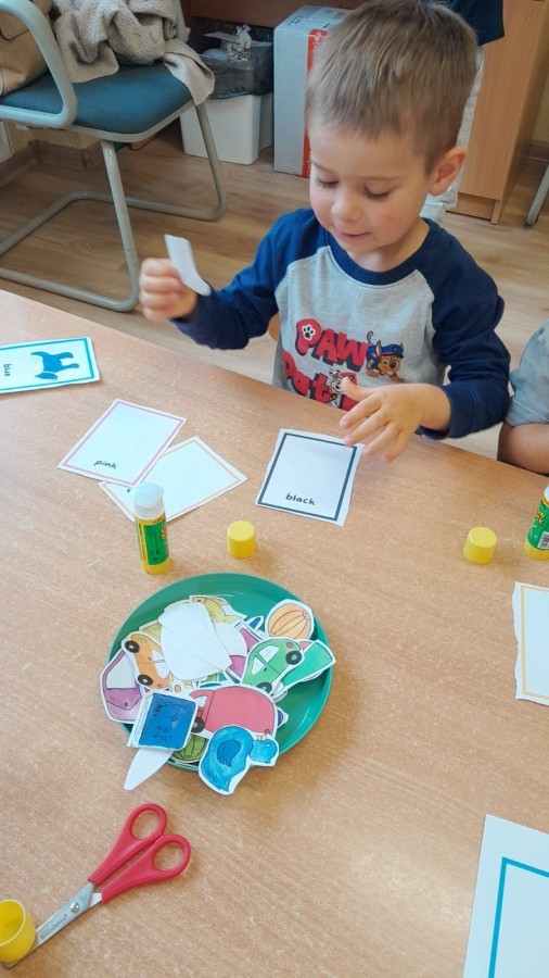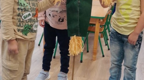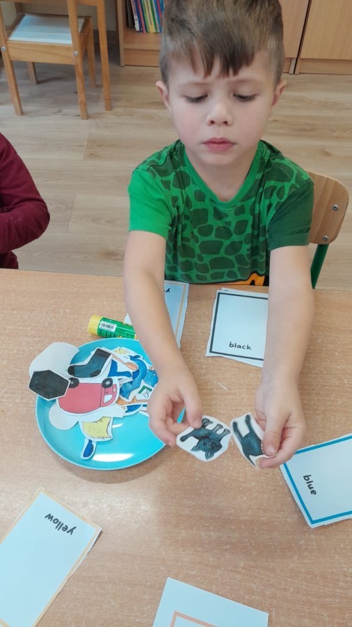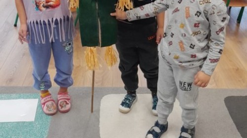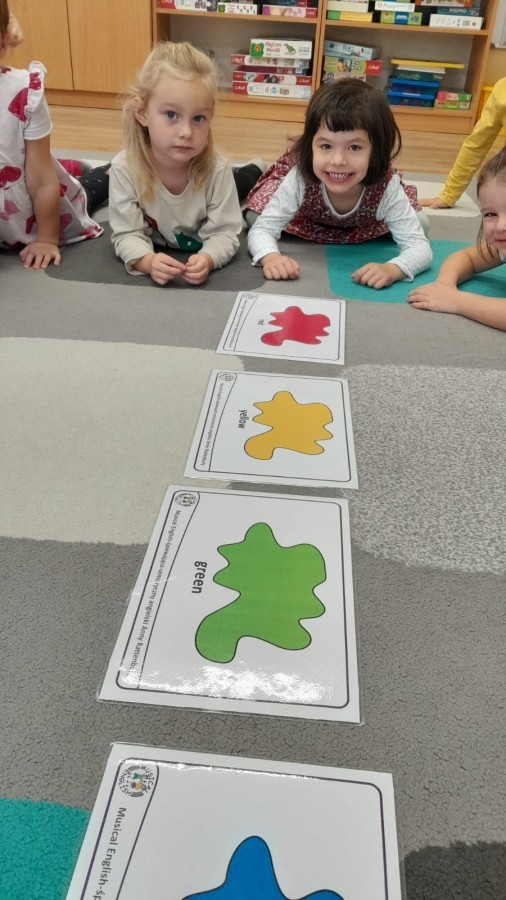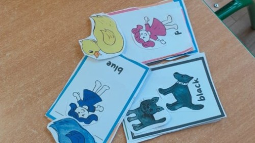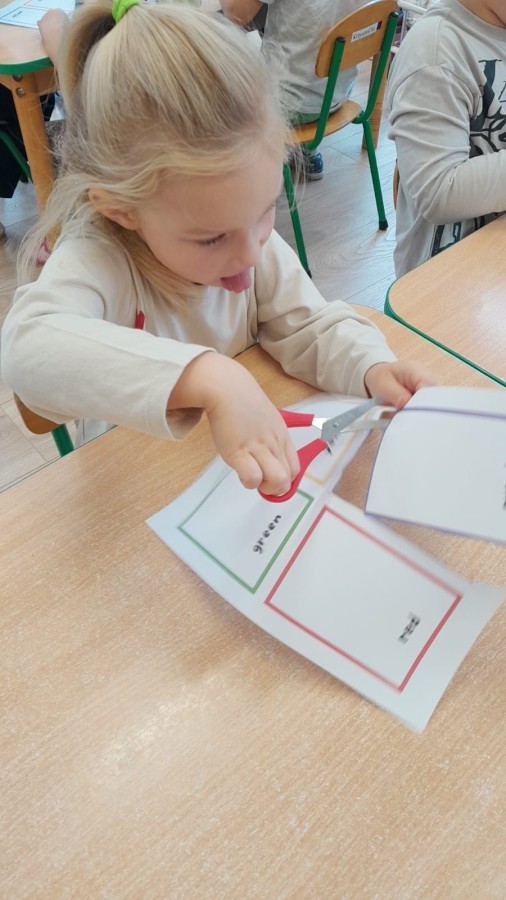 Dzieci z Grupy II wykonały zadanie z Projektu Edukacyjnego "Angielski jest FUN-tastyczny" - wykonały karty obrazkowe z kolorami, następnie bawiły się z kukiełką stracha na wróble.