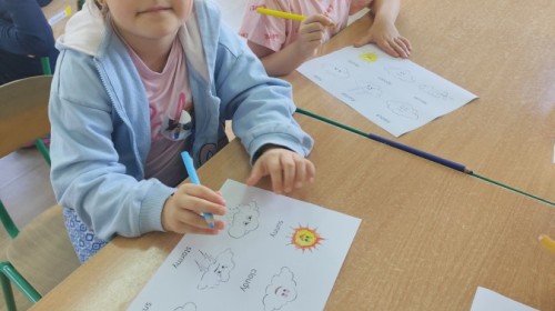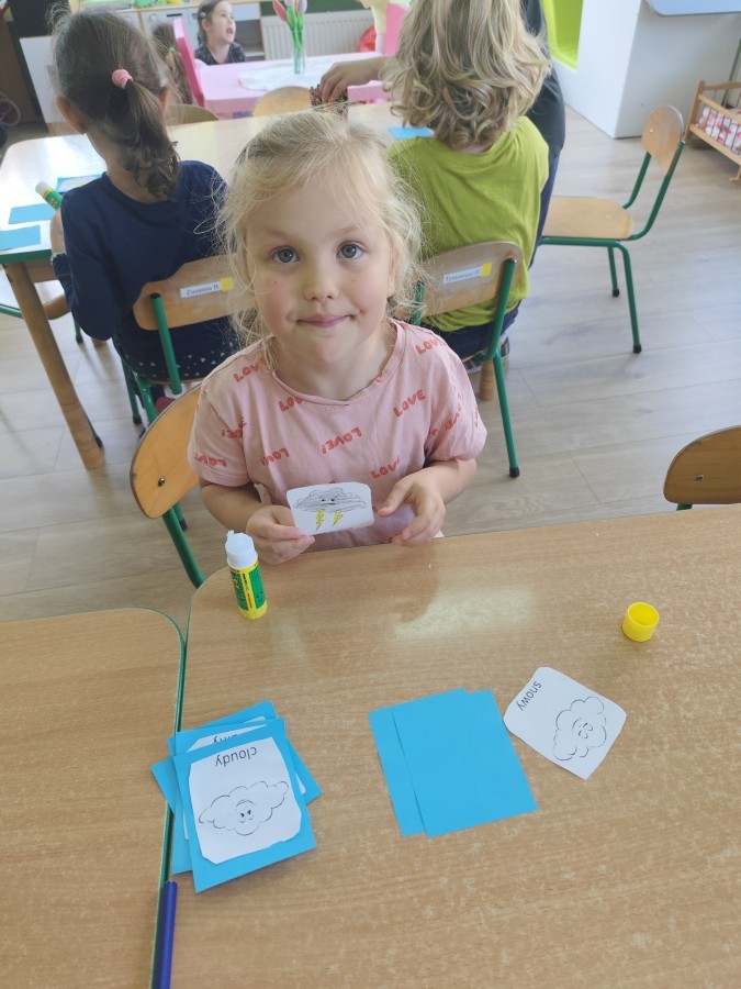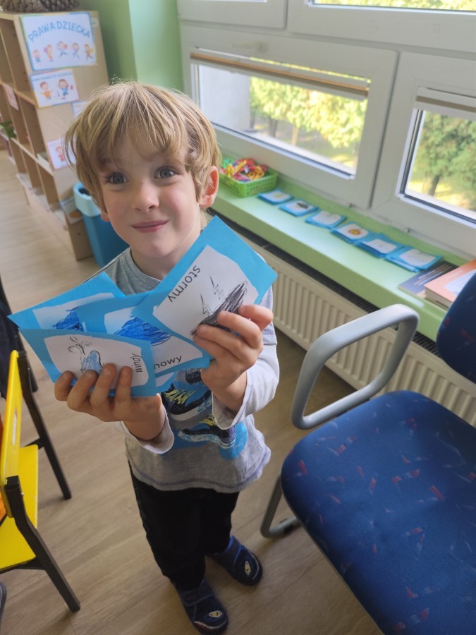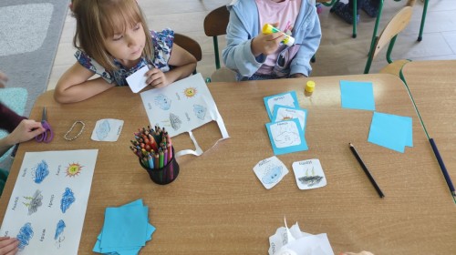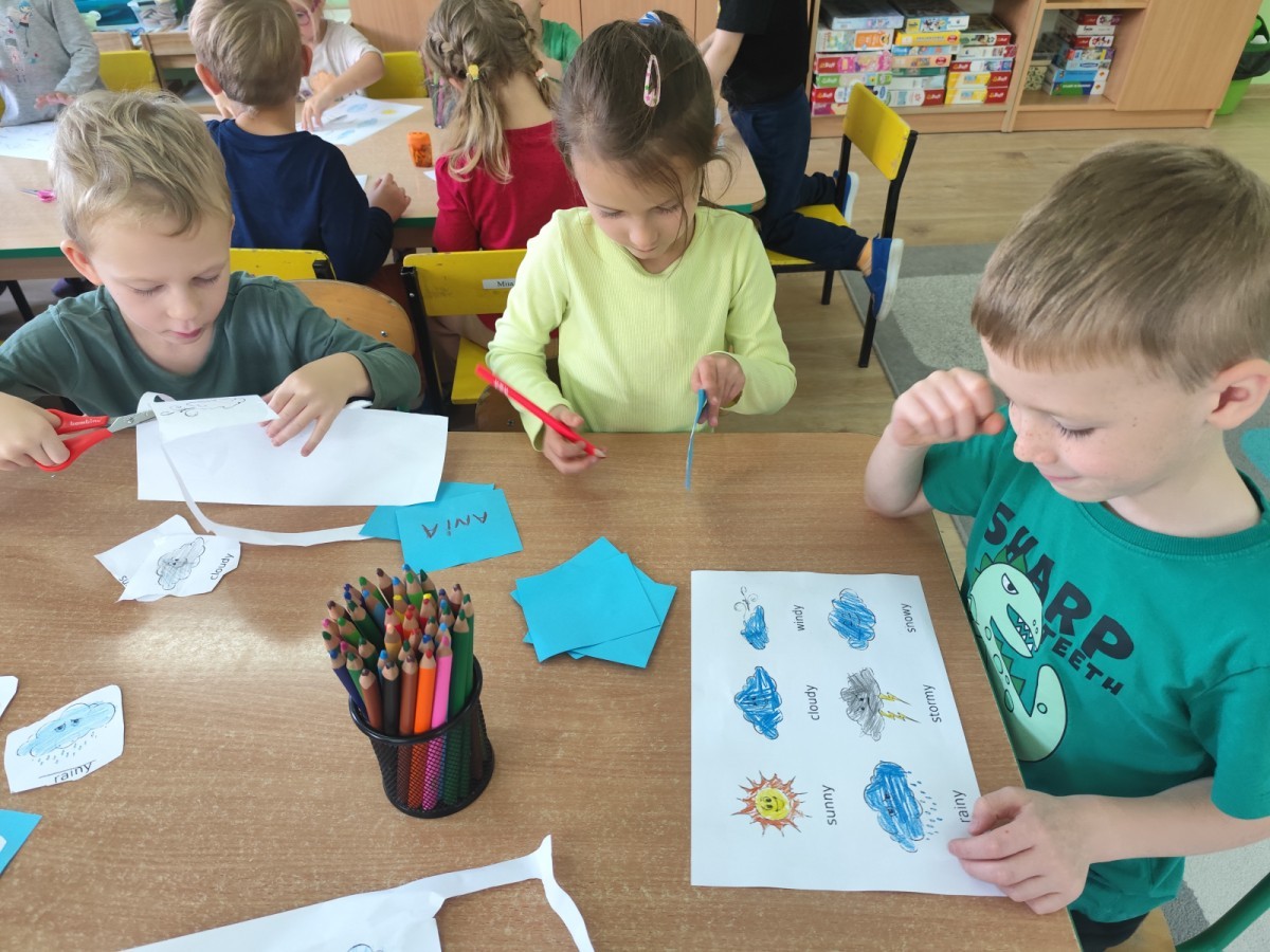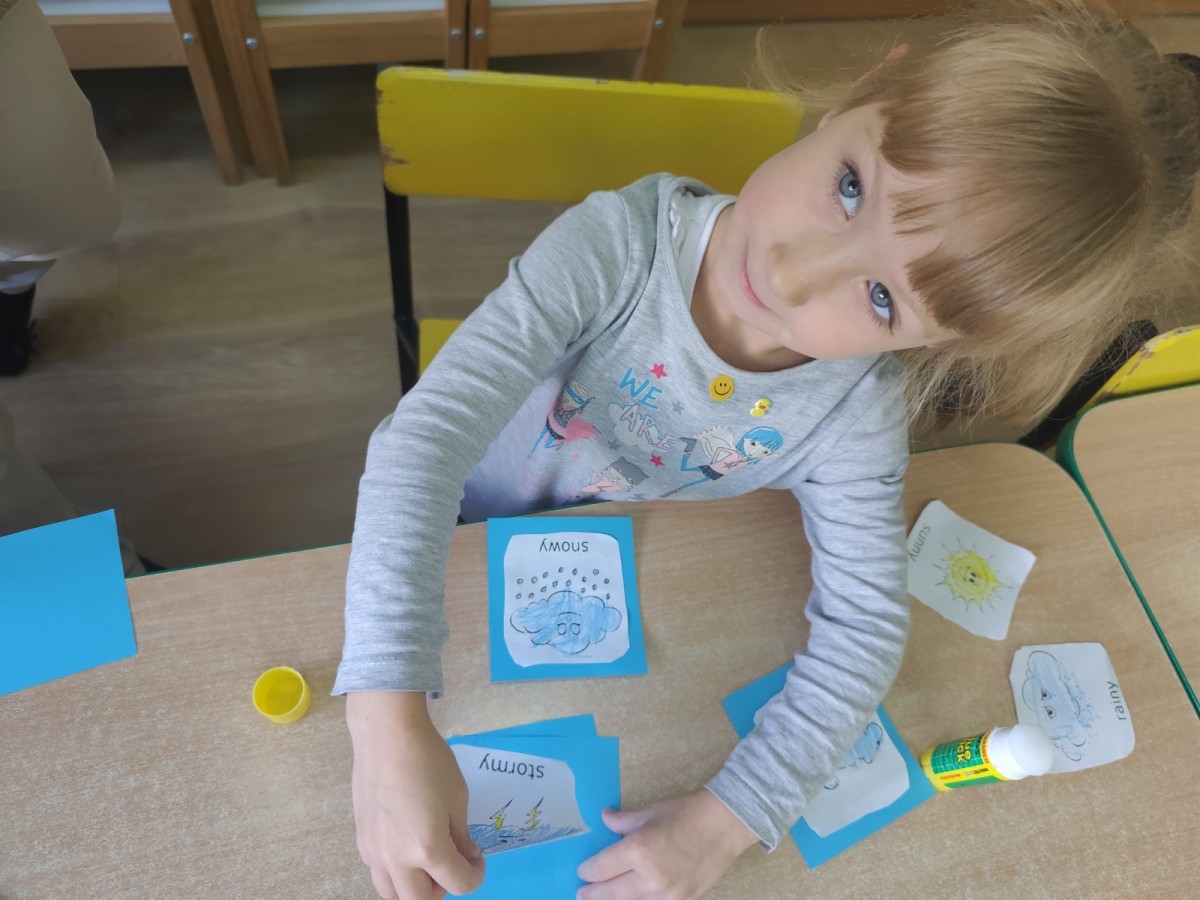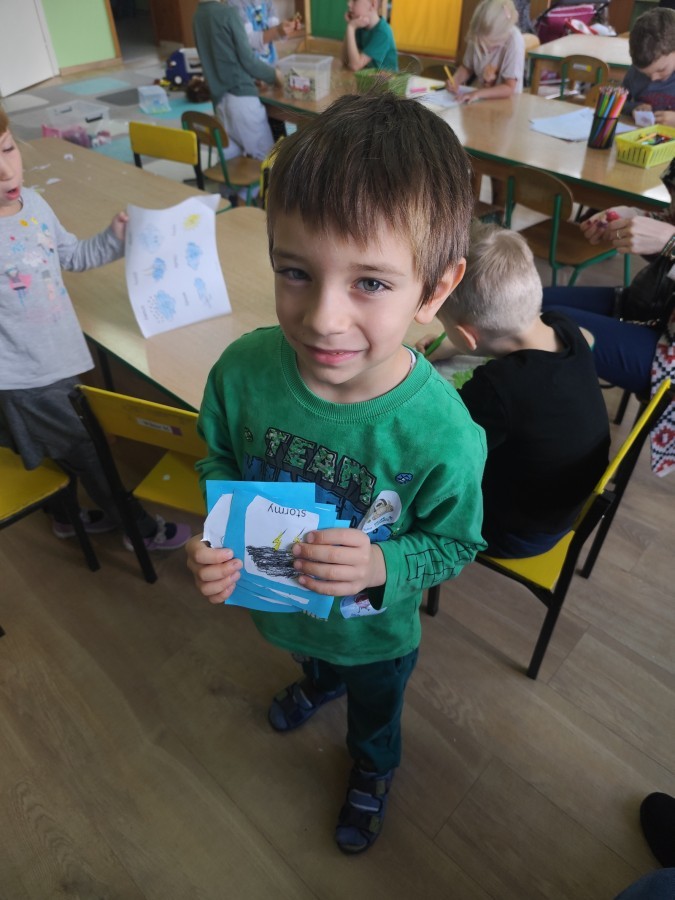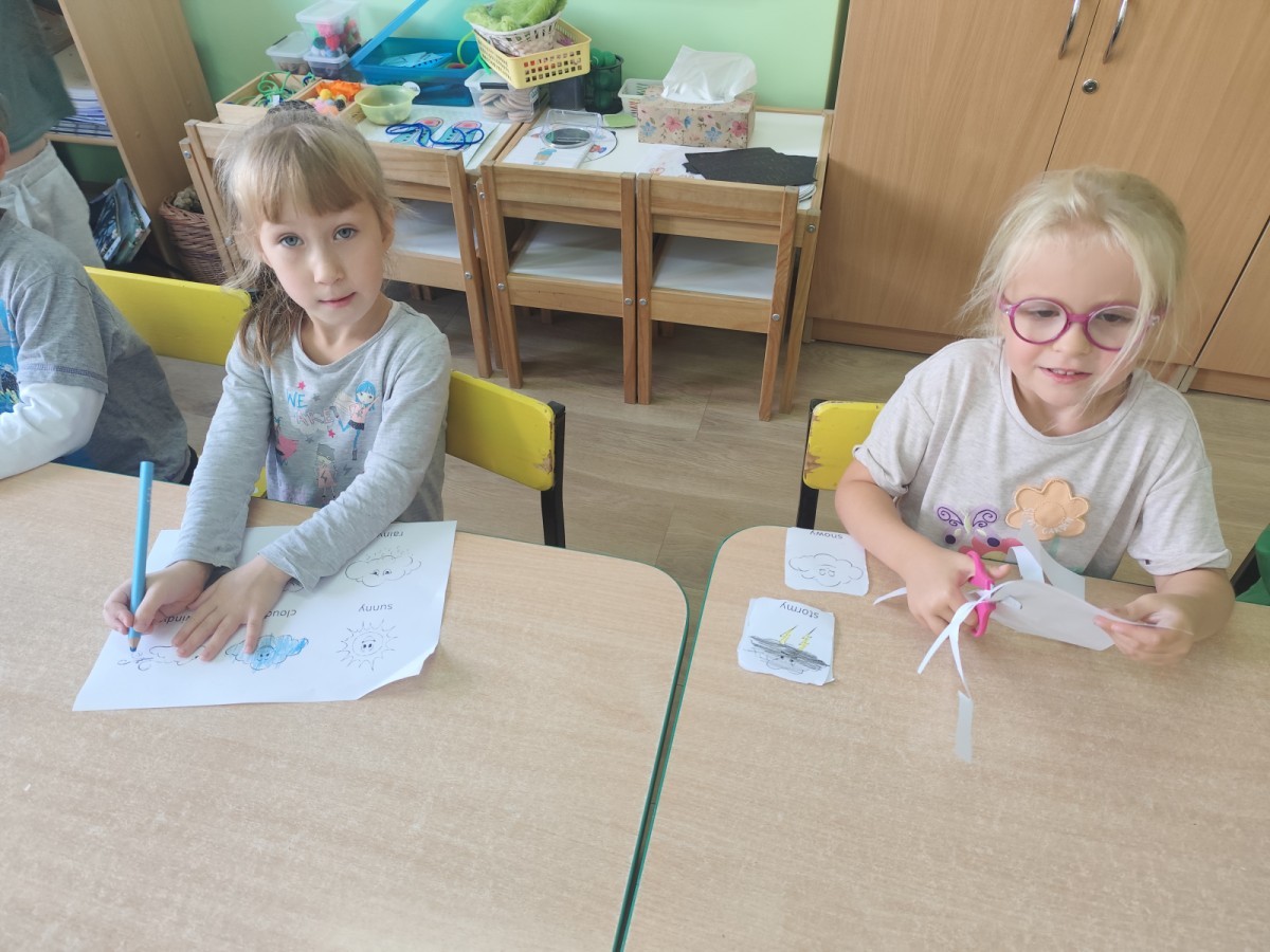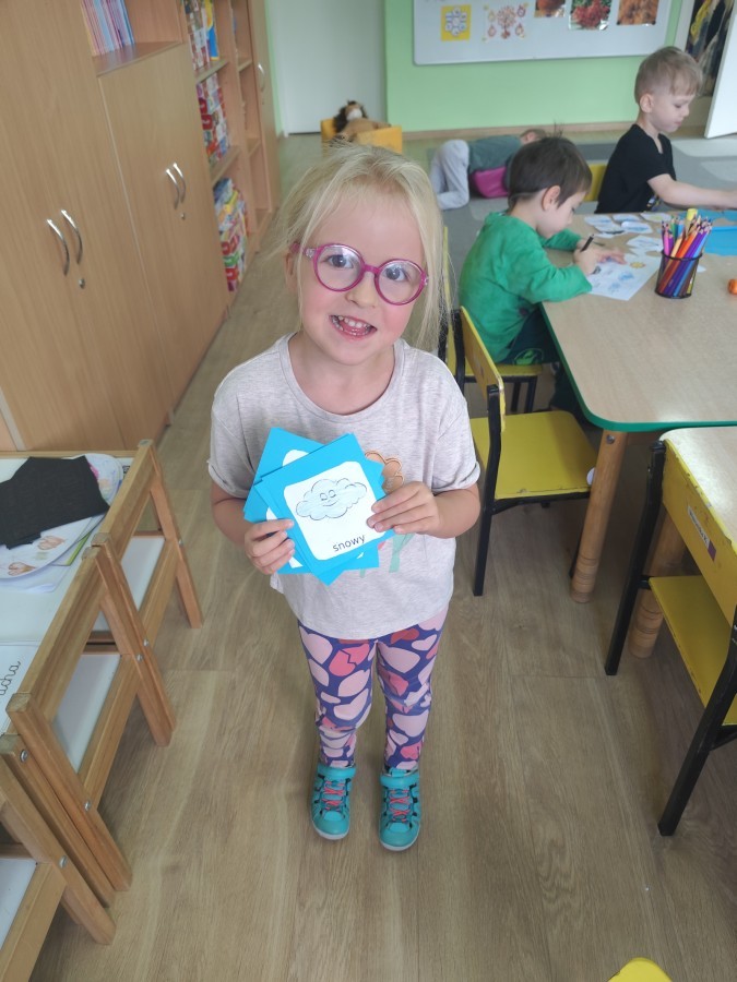 Dzieci stworzyły karty obrazkowe z tematyki związanej z pogodą.