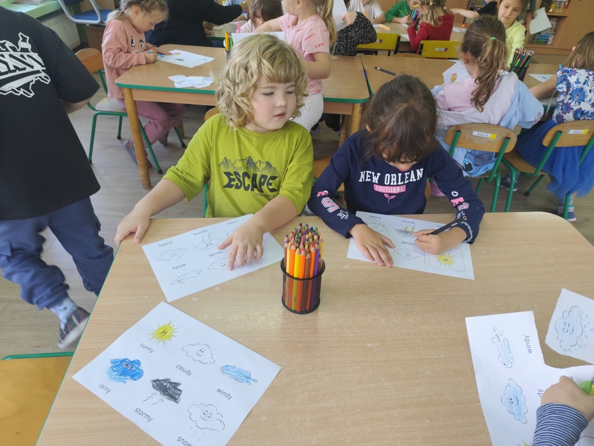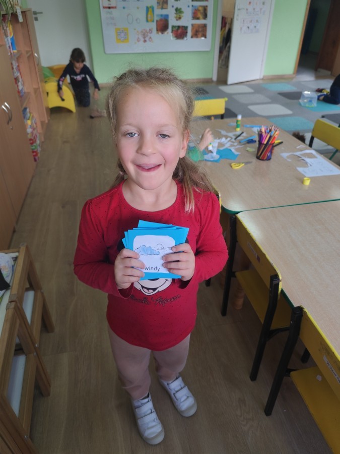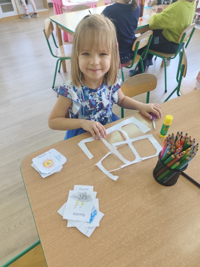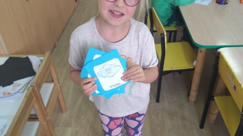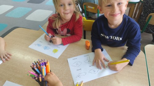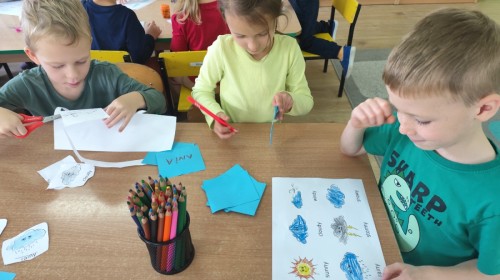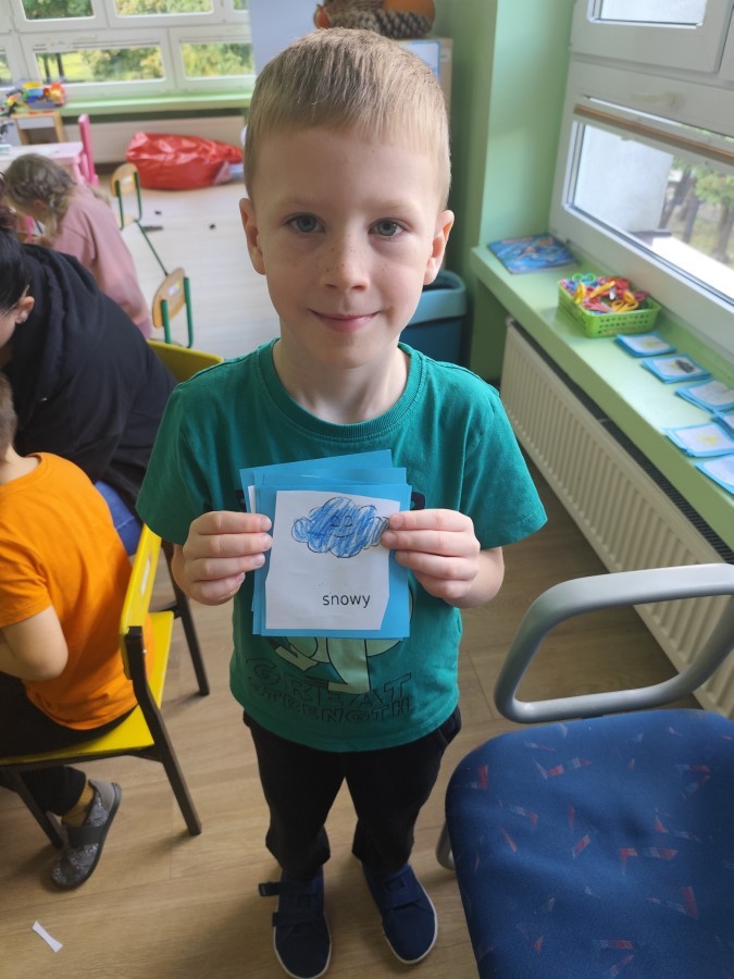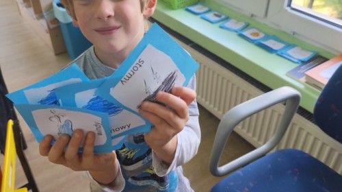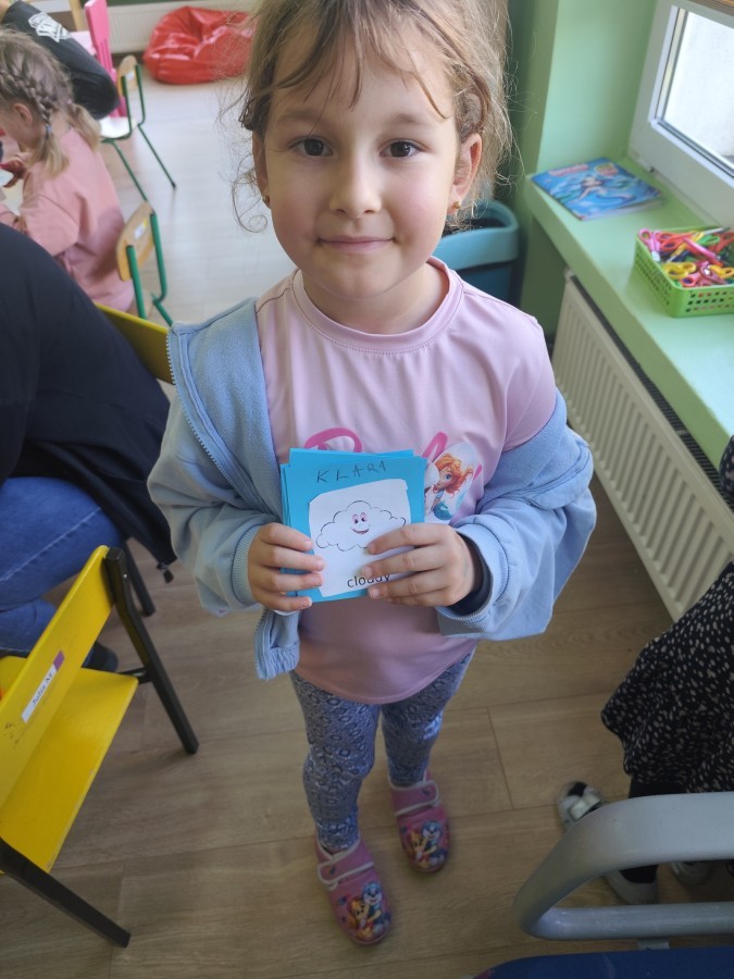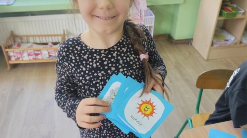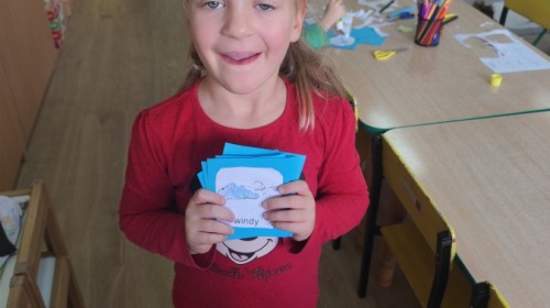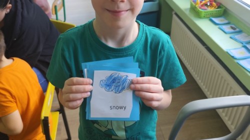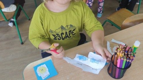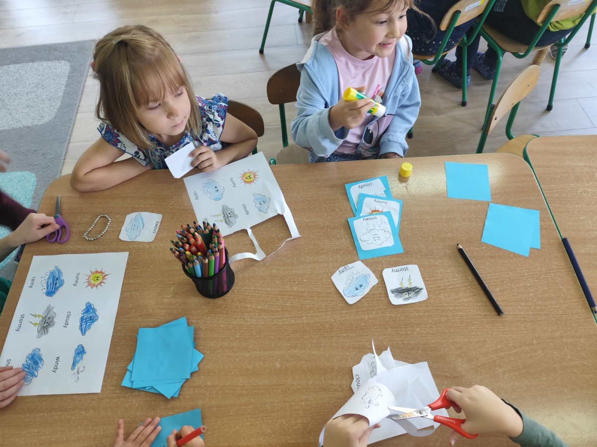 Dzieci stworzyły karty obrazkowe z tematyki związanej z pogodą.