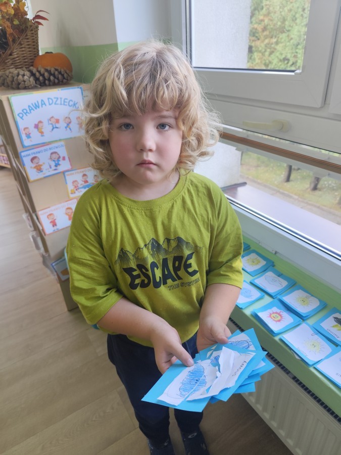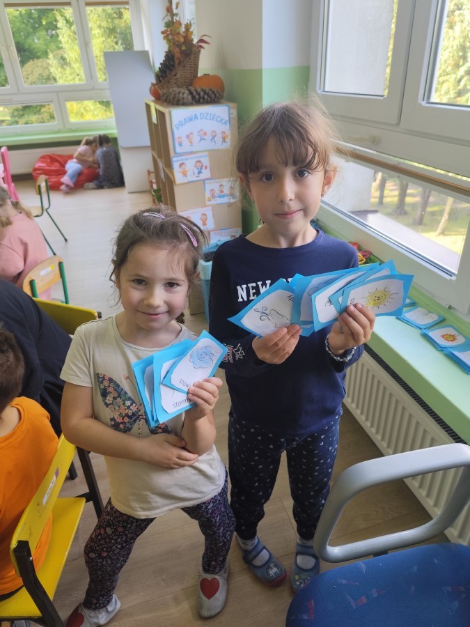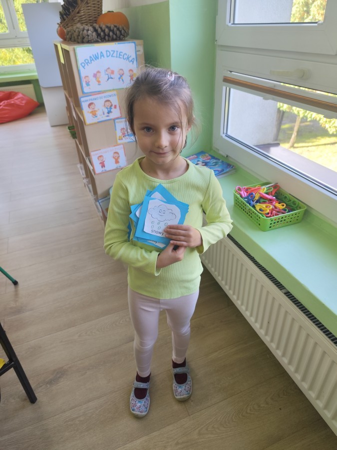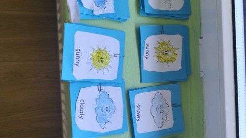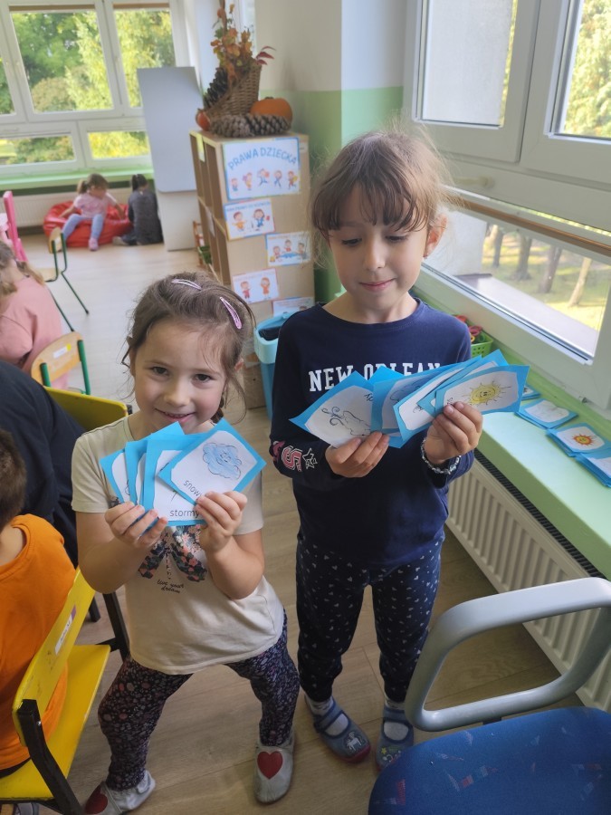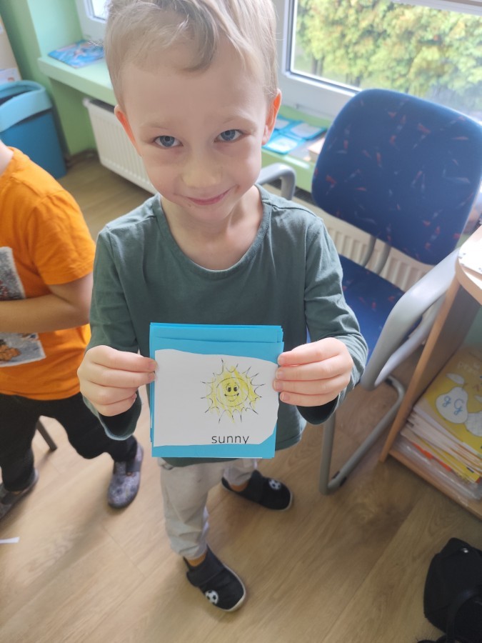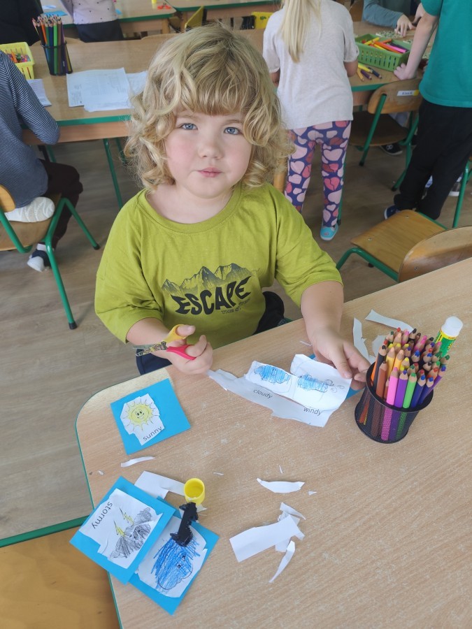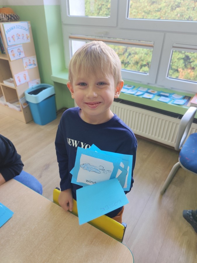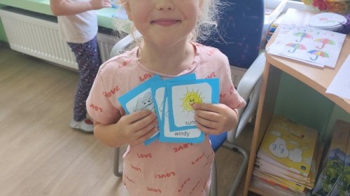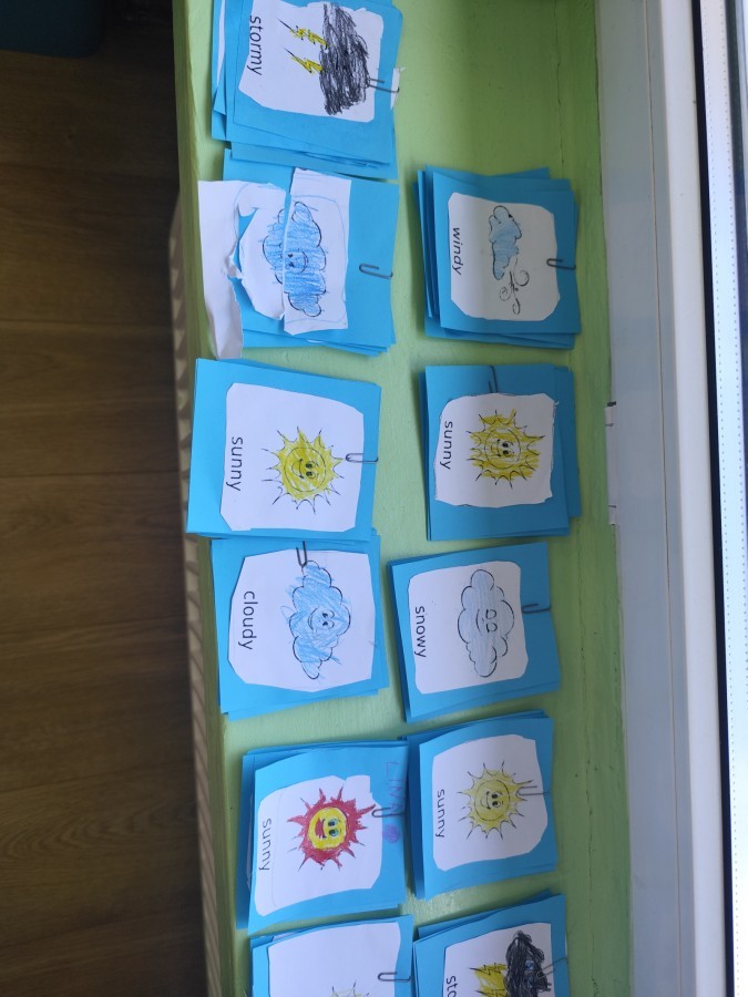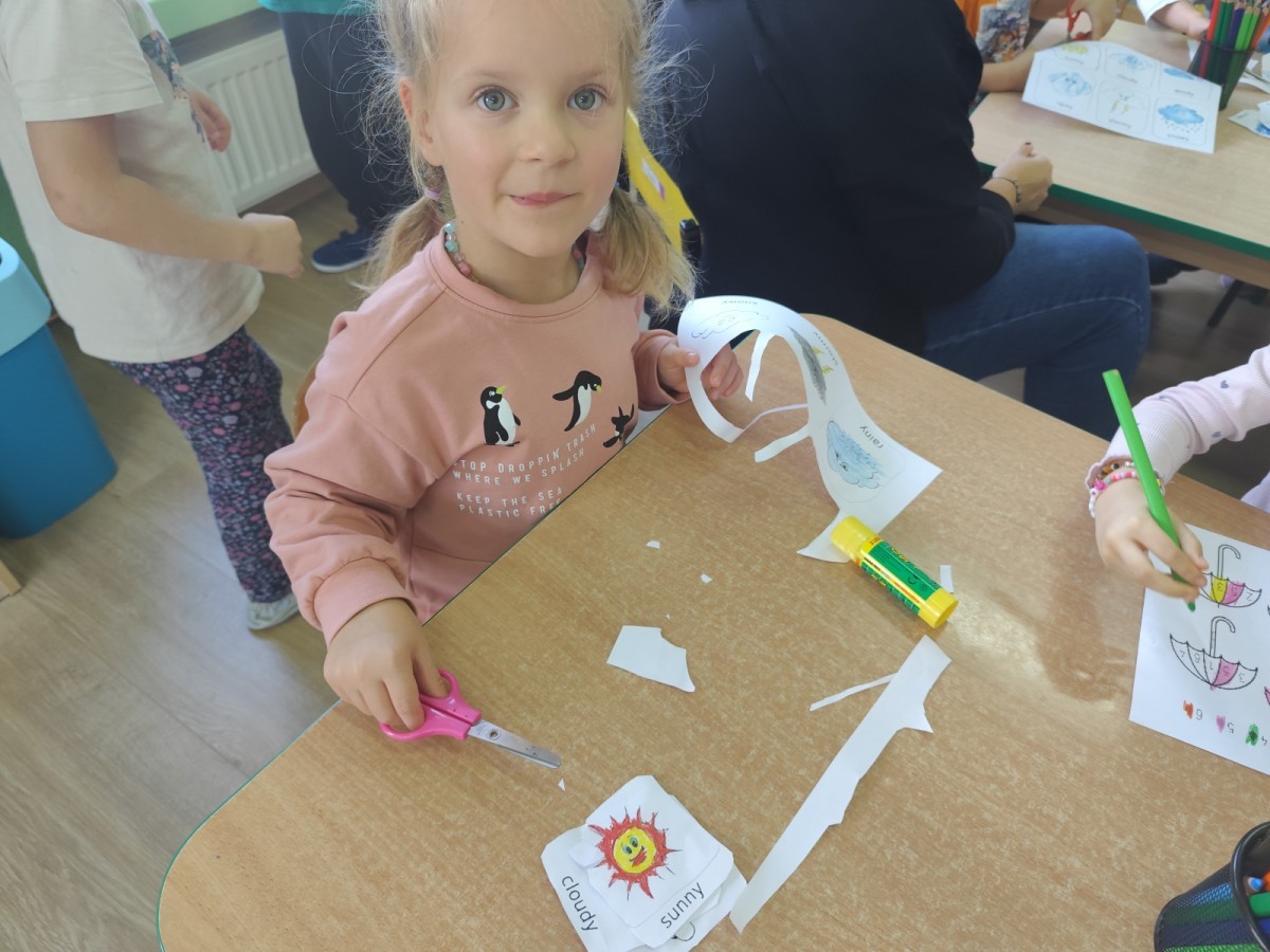 Dzieci stworzyły karty obrazkowe z tematyki związanej z pogodą.