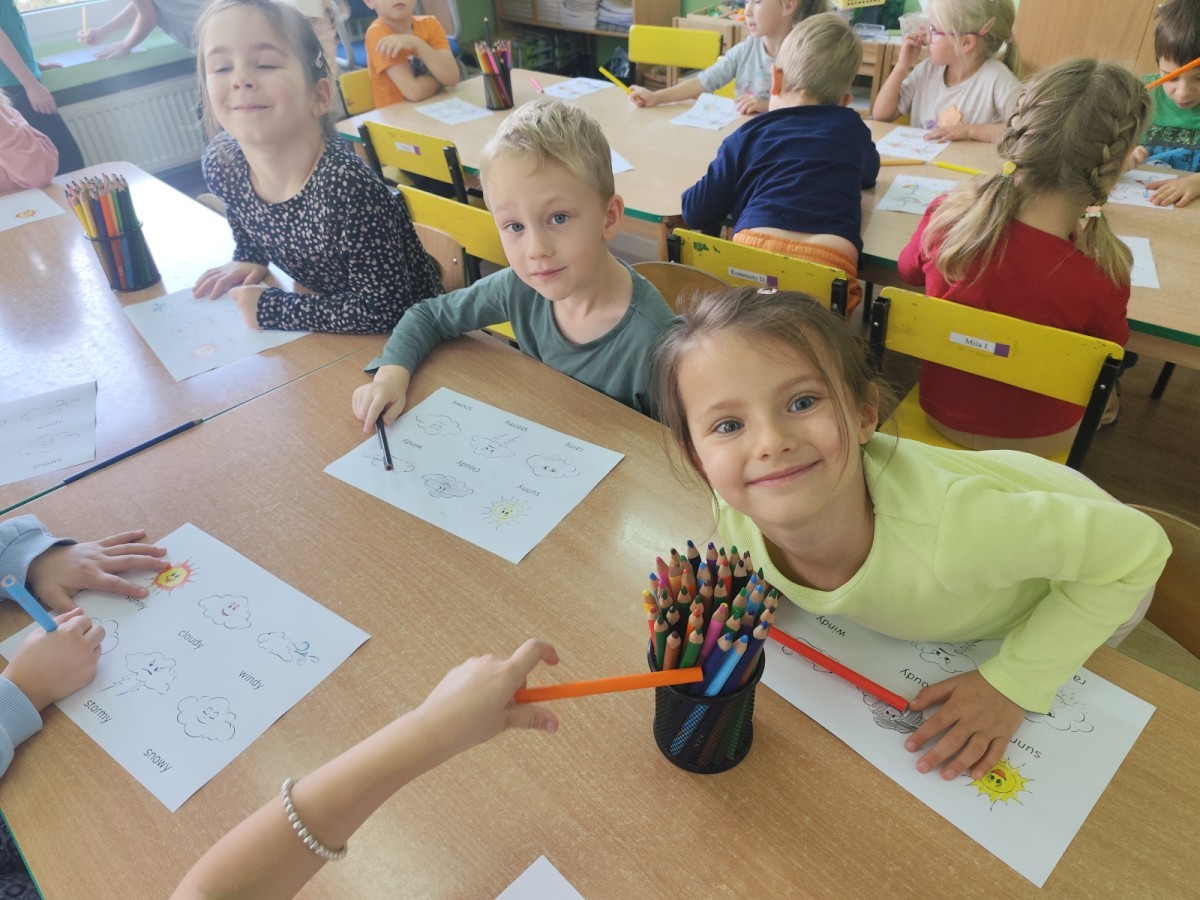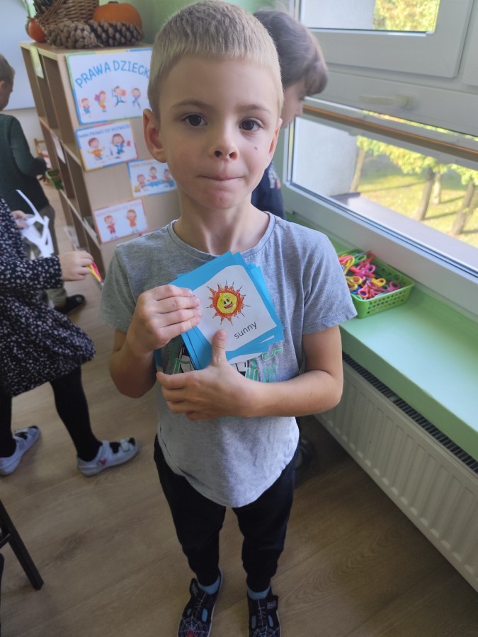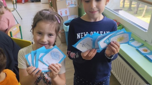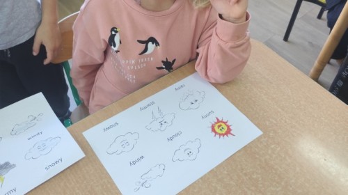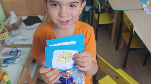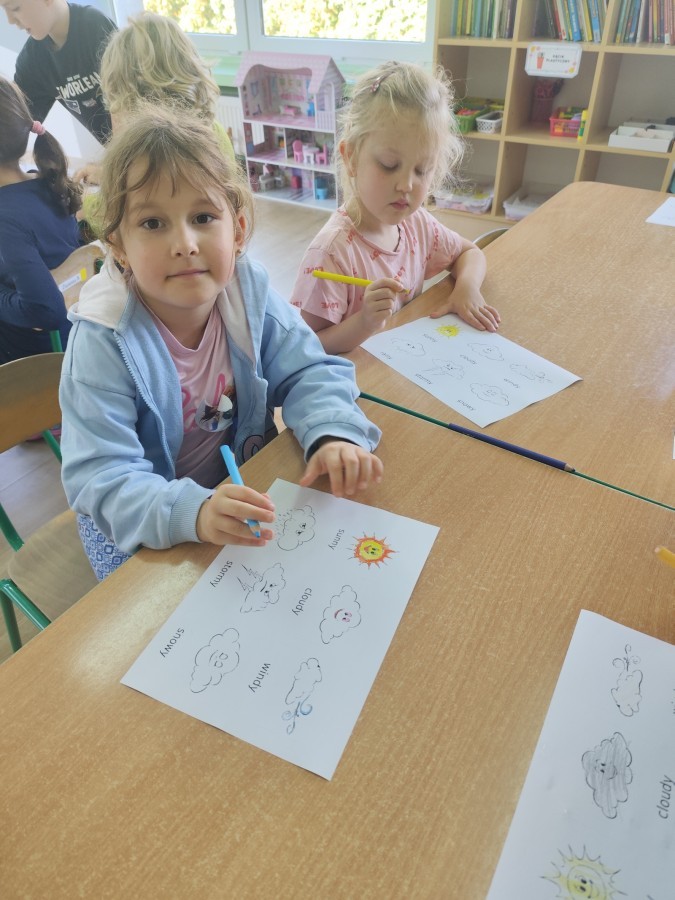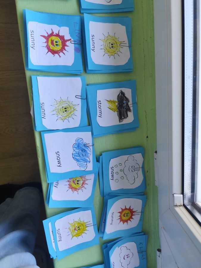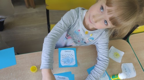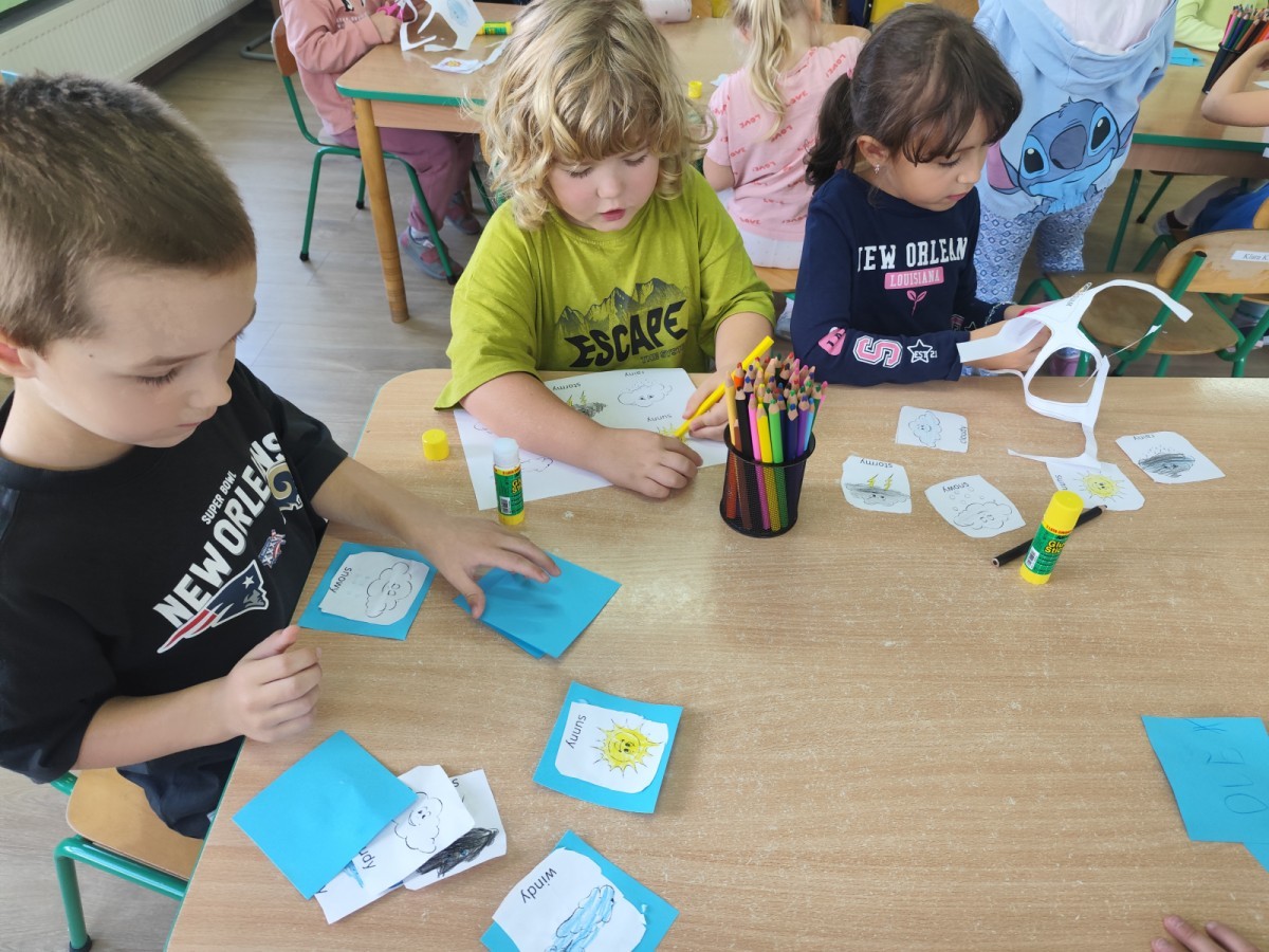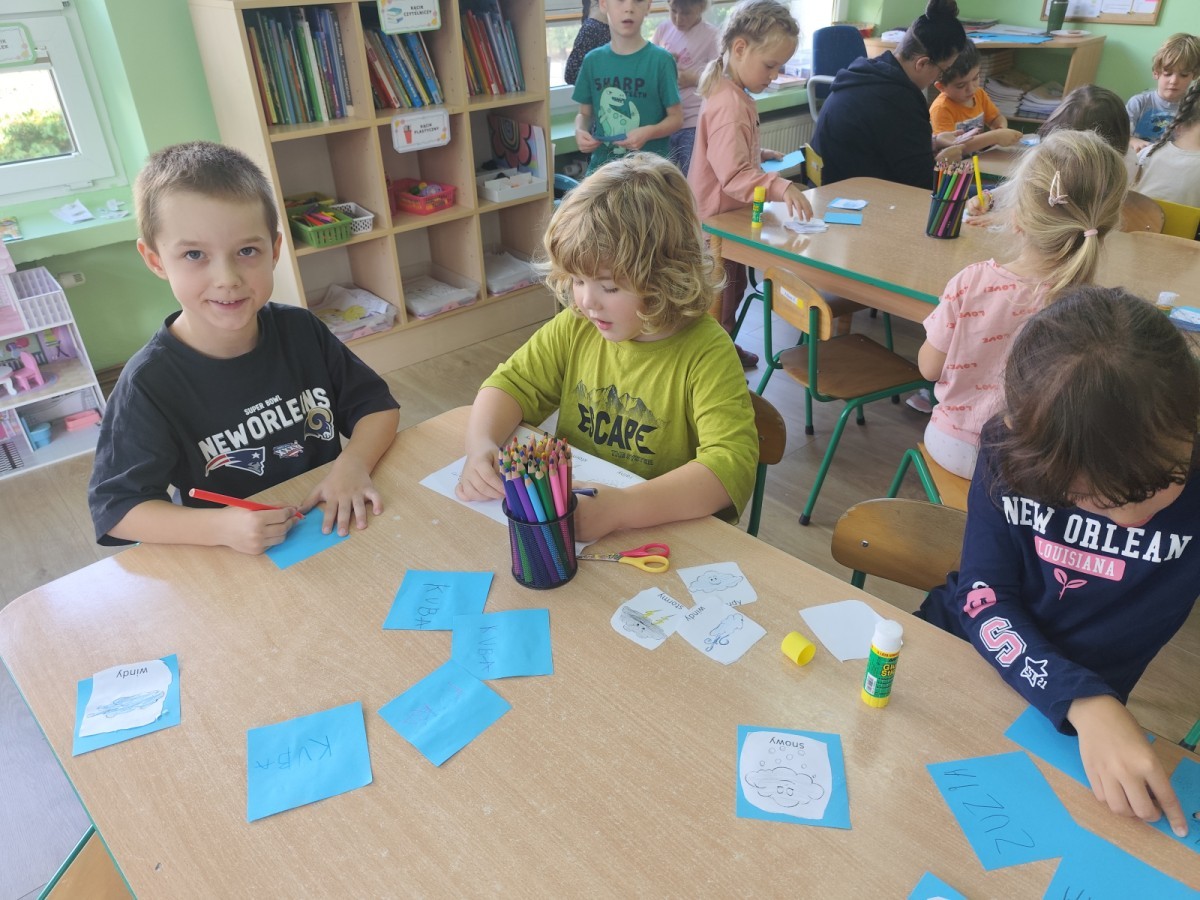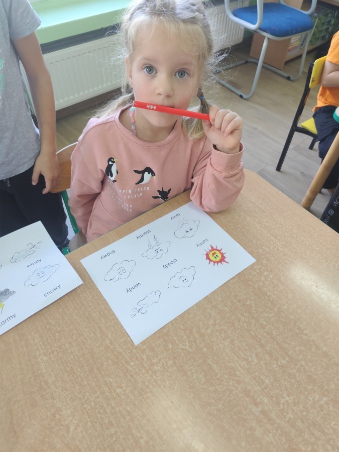 Dzieci stworzyły karty obrazkowe z tematyki związanej z pogodą.