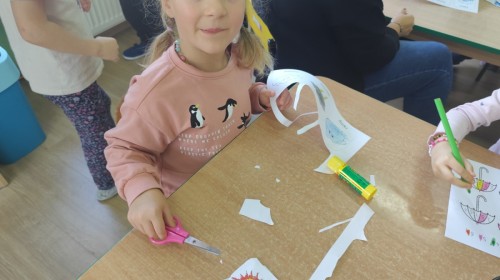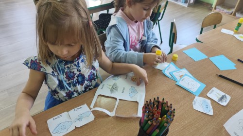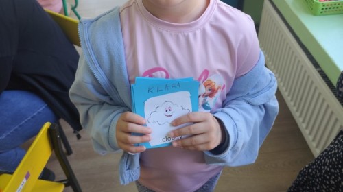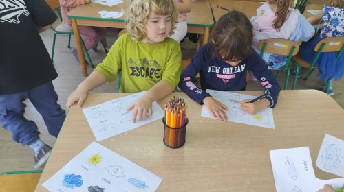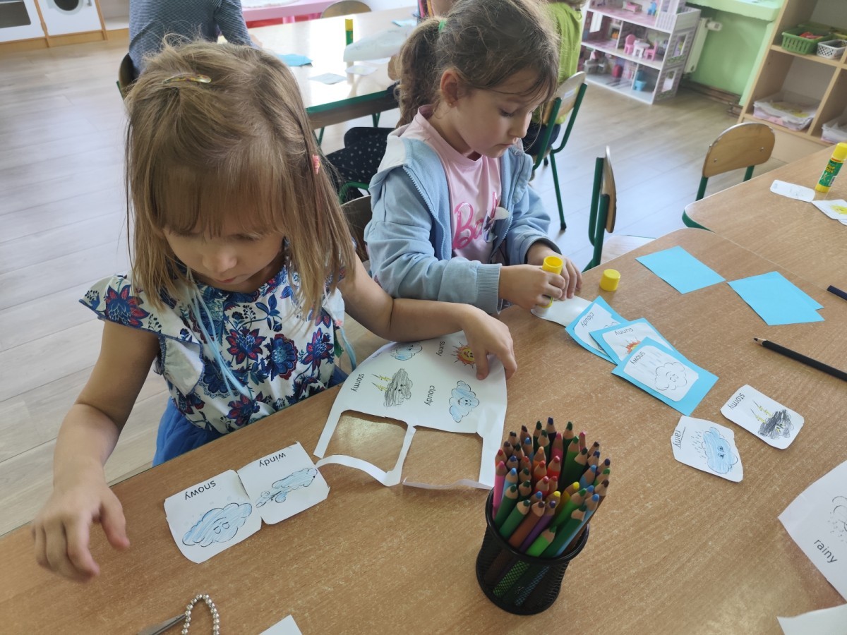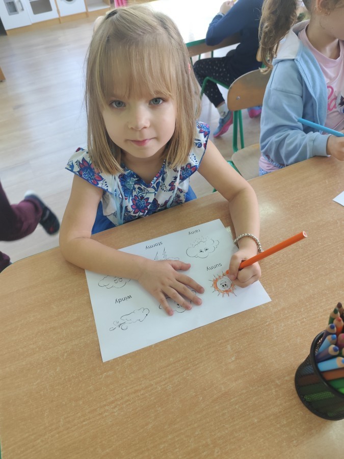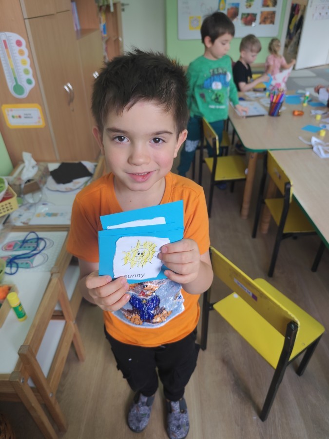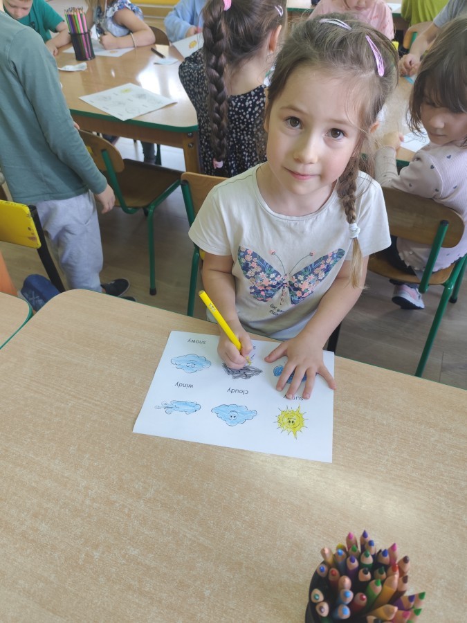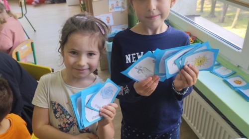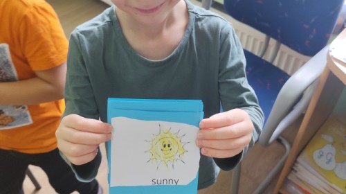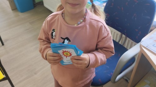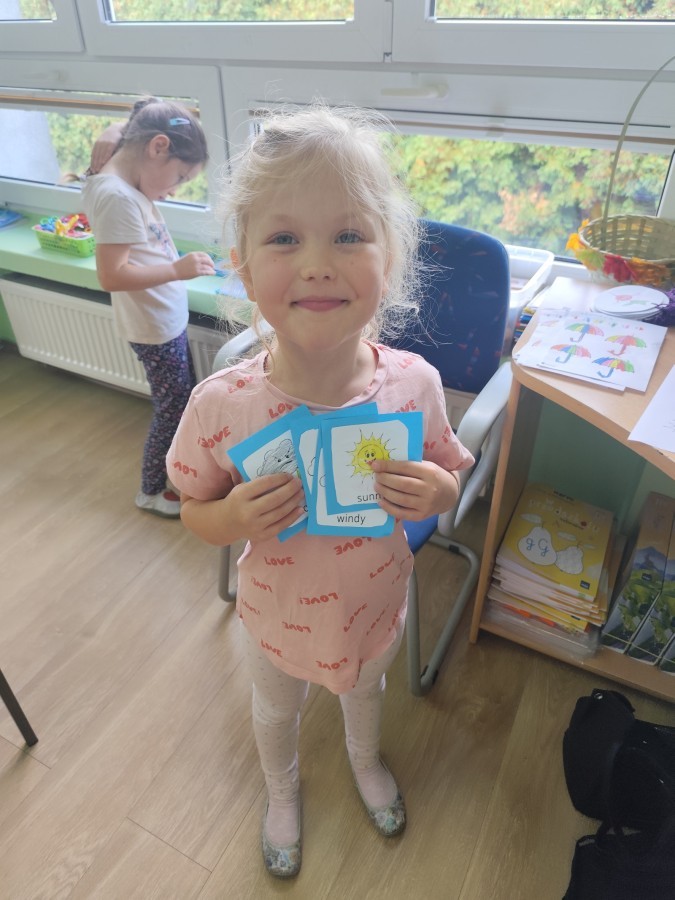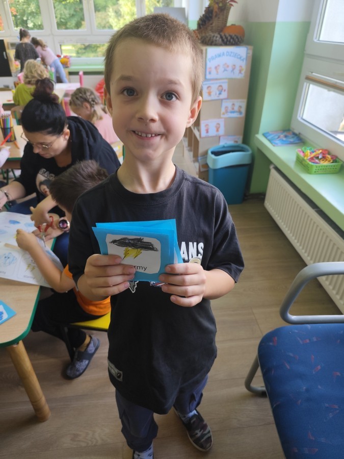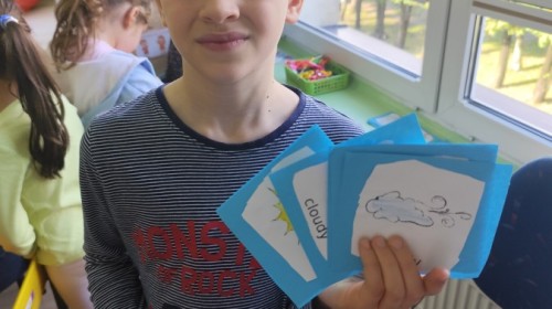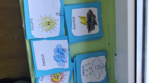 Dzieci stworzyły karty obrazkowe z tematyki związanej z pogodą.