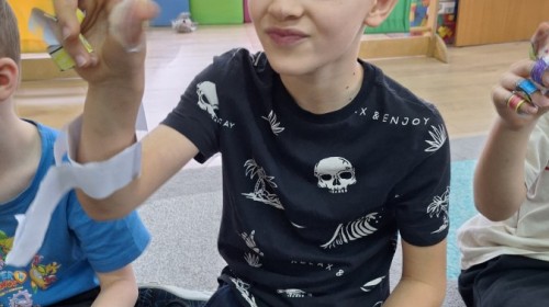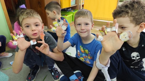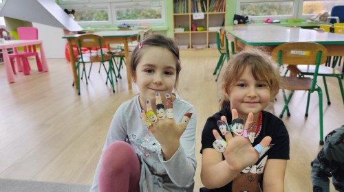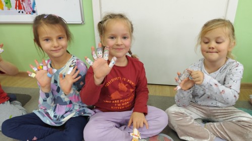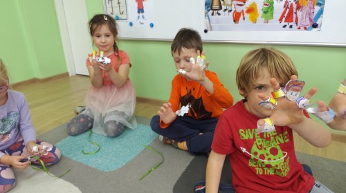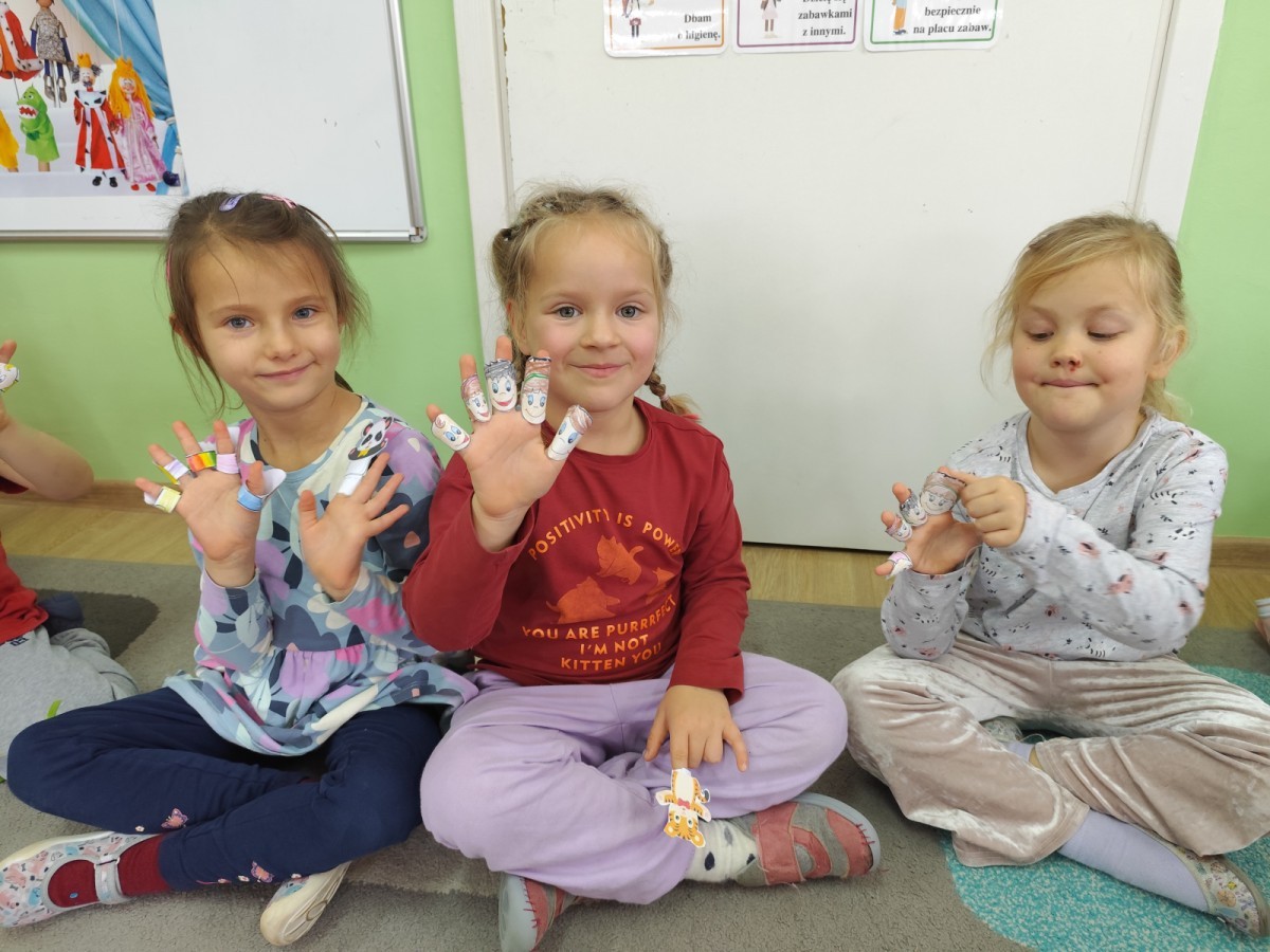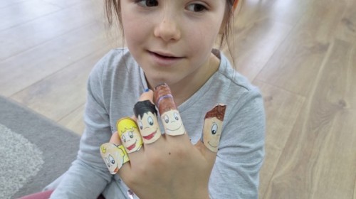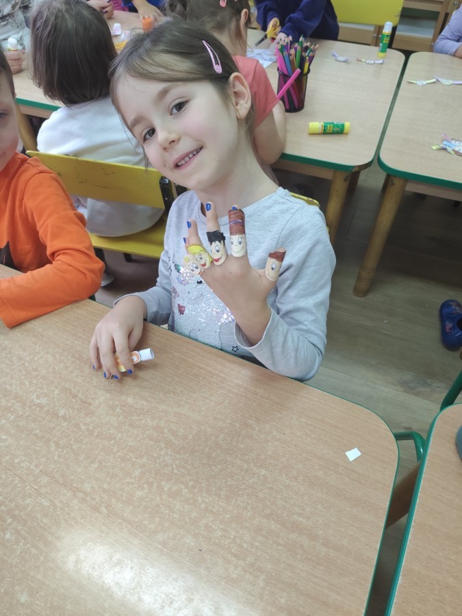 Dzieci z Grupy IIIA wykonały kolejne zadanie z Projektu Edukacyjnego "Angielski jest FUN-tastyczny" - "One little finger" i "Fingers family". Najpierw powstały piękne pacynki na palce a następnie wspólnie zaśpiewaliśmy piosenki z użyciem naszych paluszkowych ludzików :)
